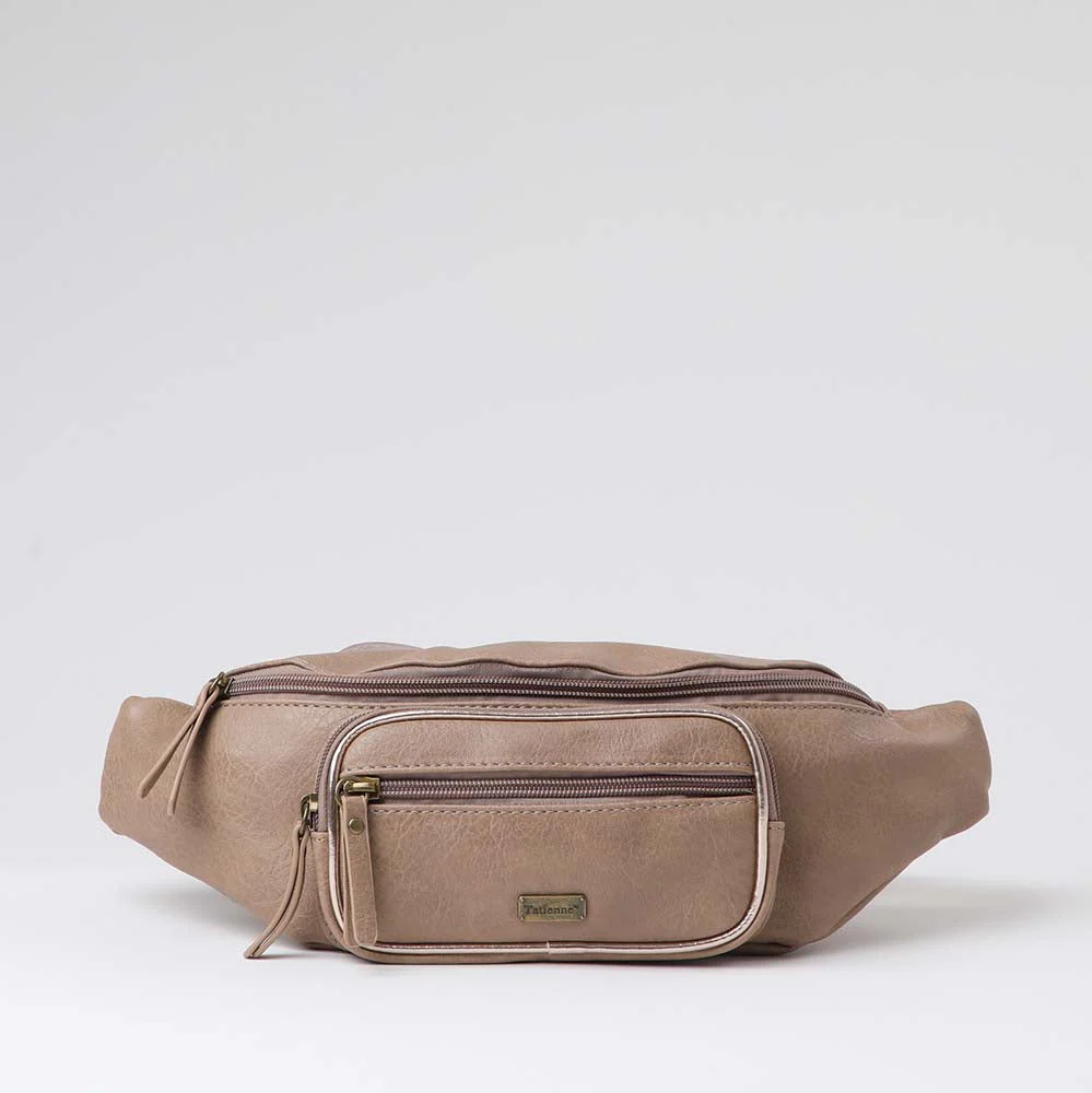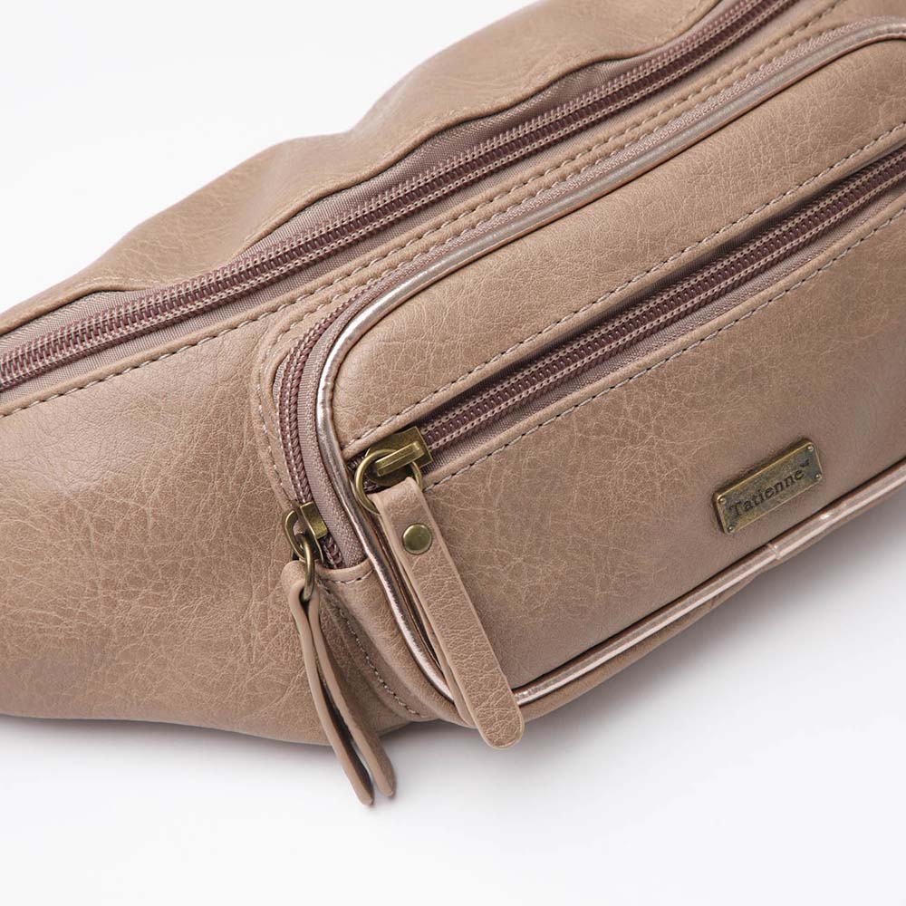 Banano Tatienne Peaky beige. Banano de ecocuero con bolsillos y correa ajustable.