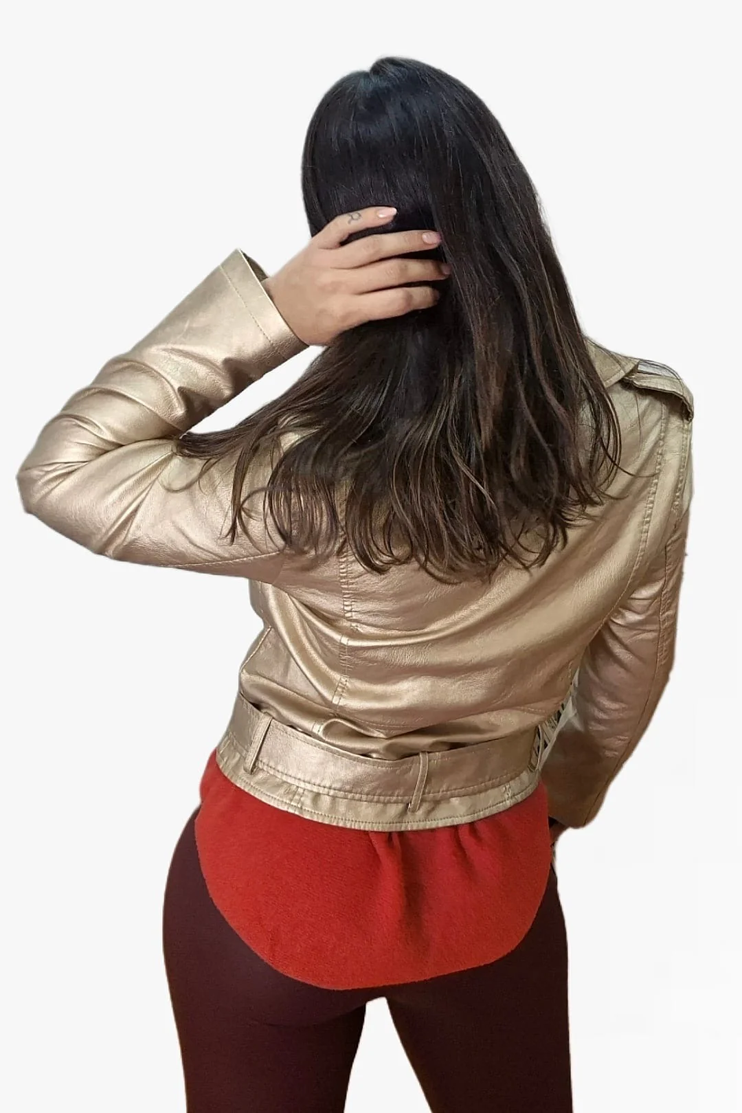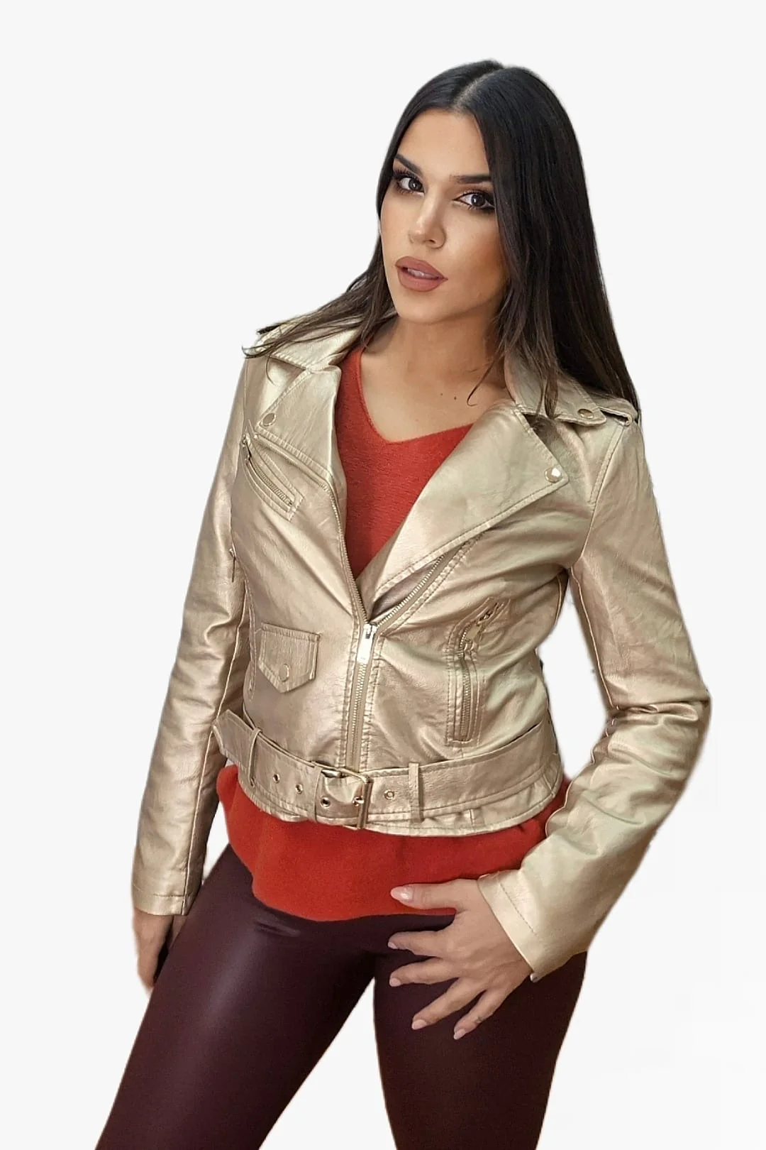 • Biker entallada efecto metalizado