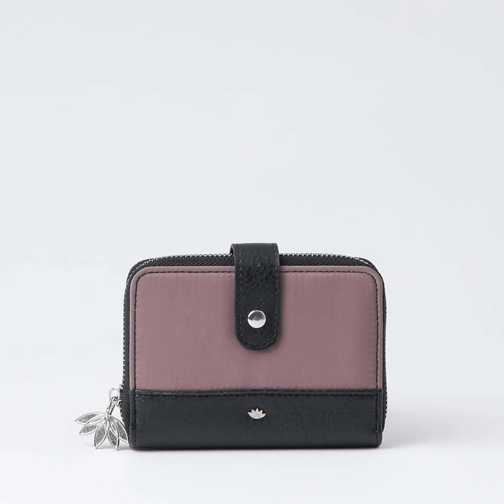 Billetera Mediana i-D Hailey de color rosado. Billetera con bolsillo principal con cierre y bolsillos con cierre. Confeccionada con género rosado y ecocuero negro.