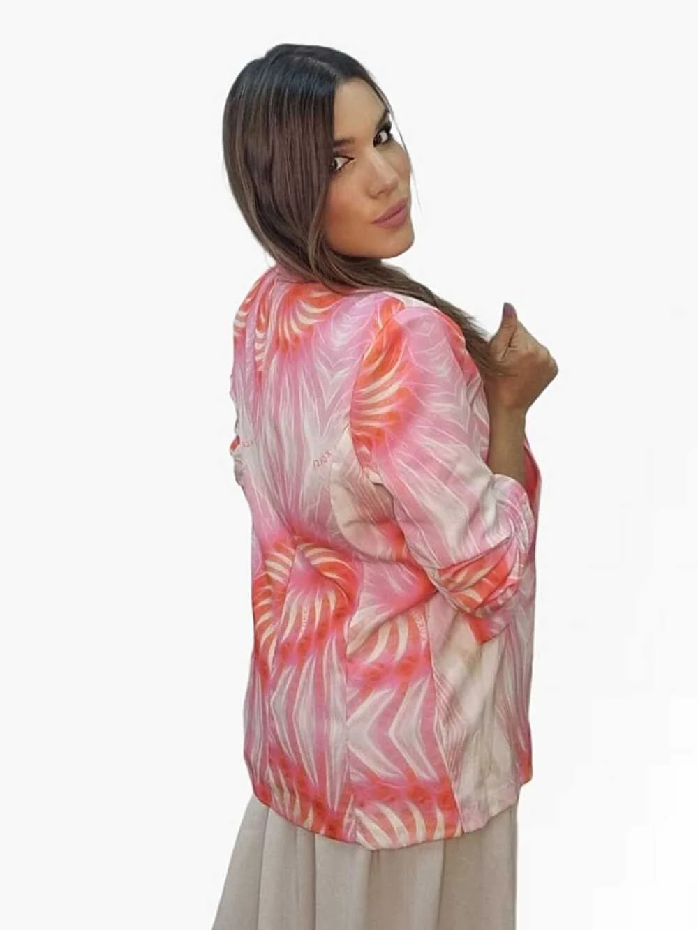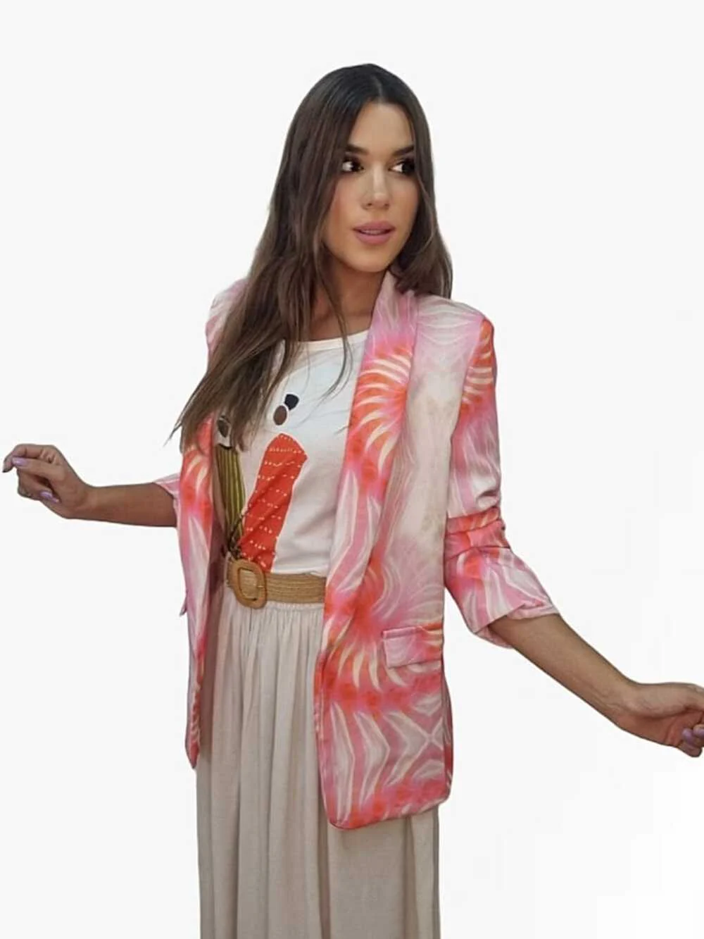 Blazer estampada sin cierre, manga fruncida, solapas y falsos bolsillos delanteros