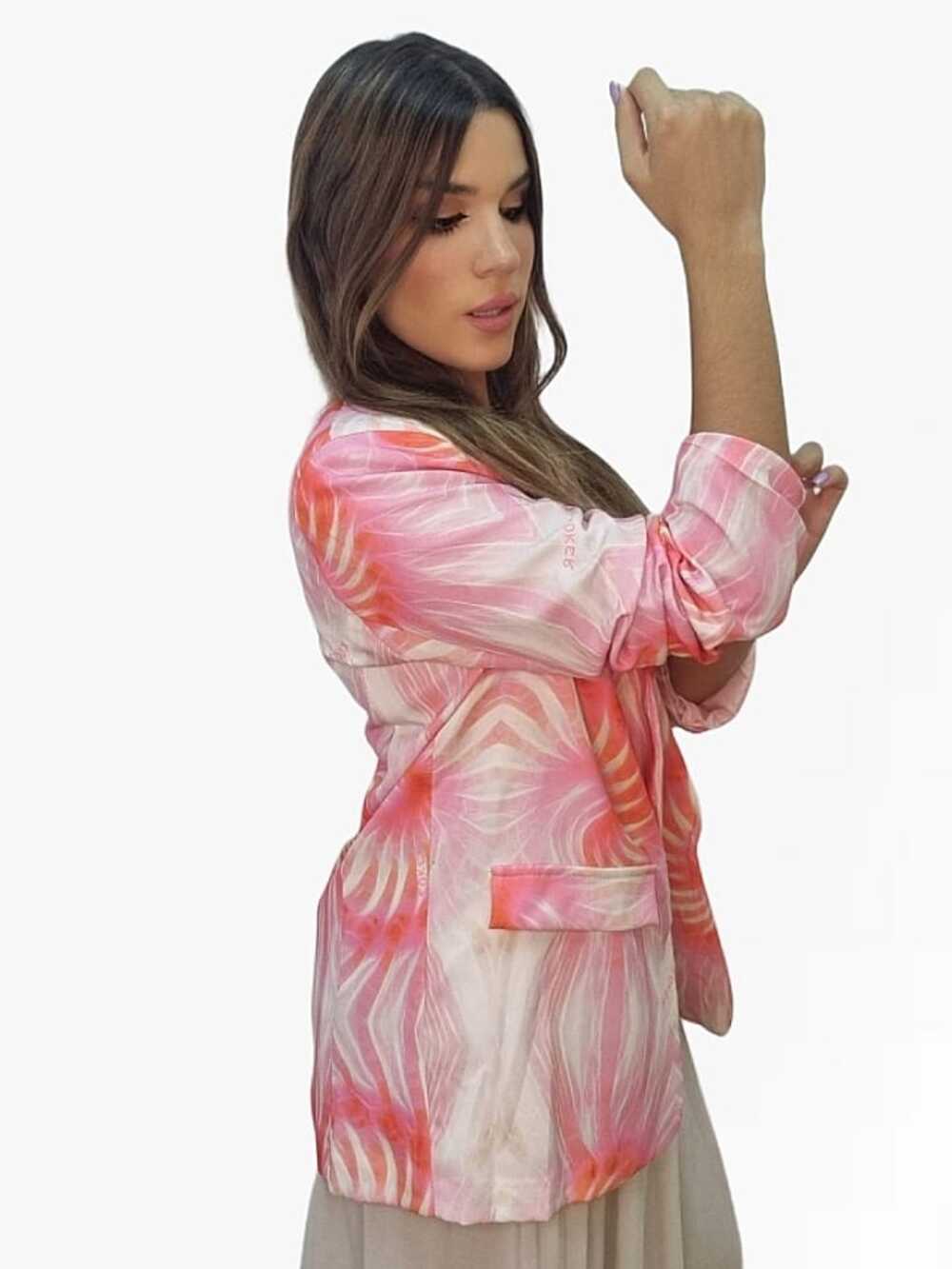 - La modelo mide 1,68 cm y en esta blazer lleva la S/M