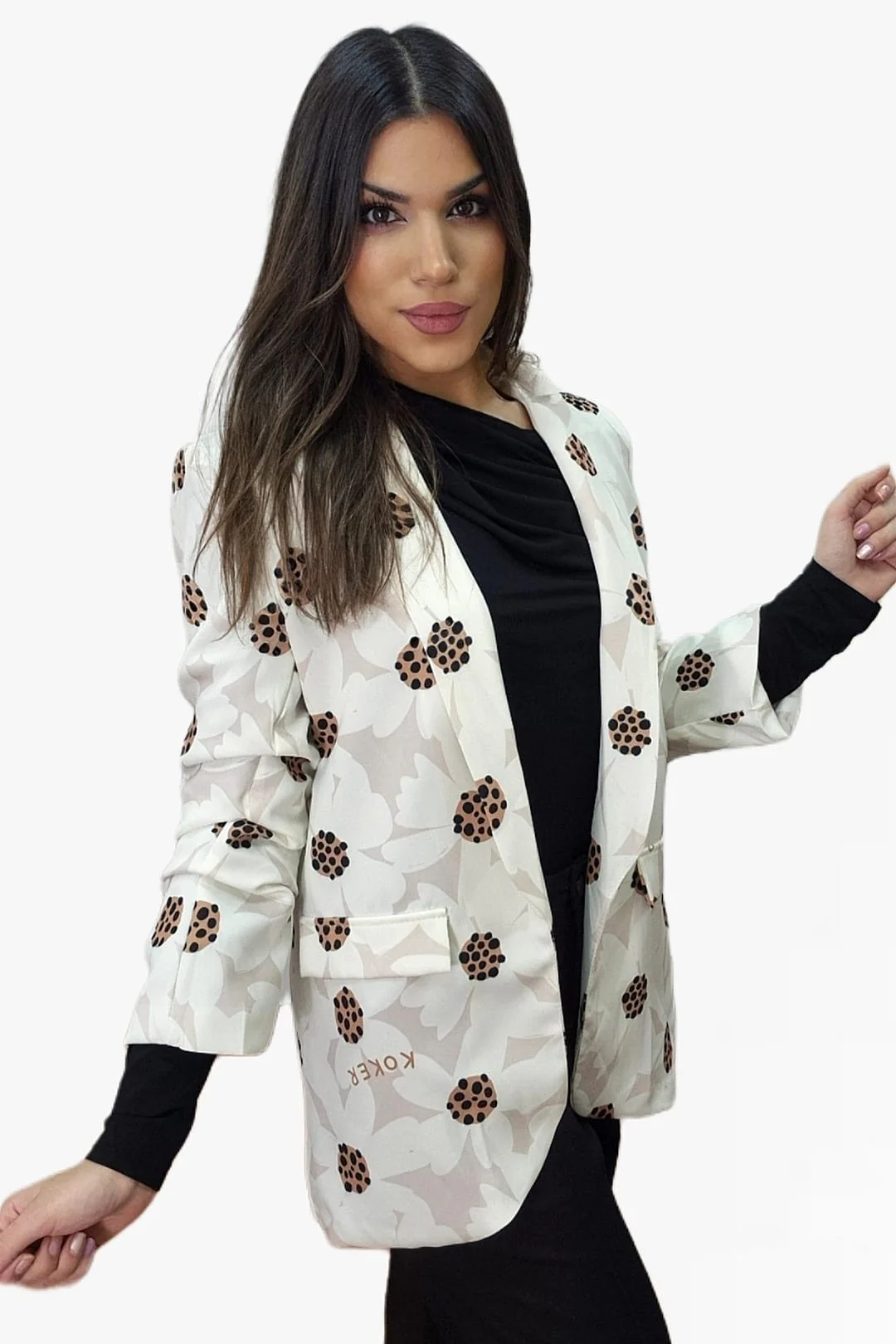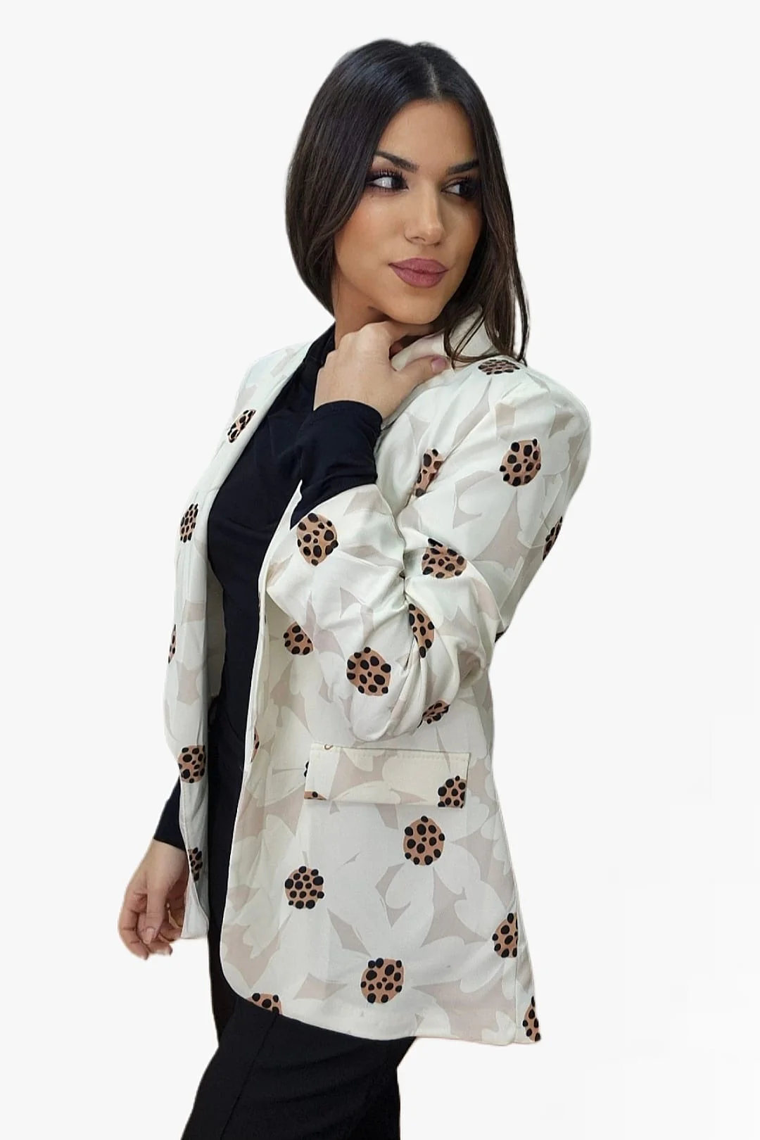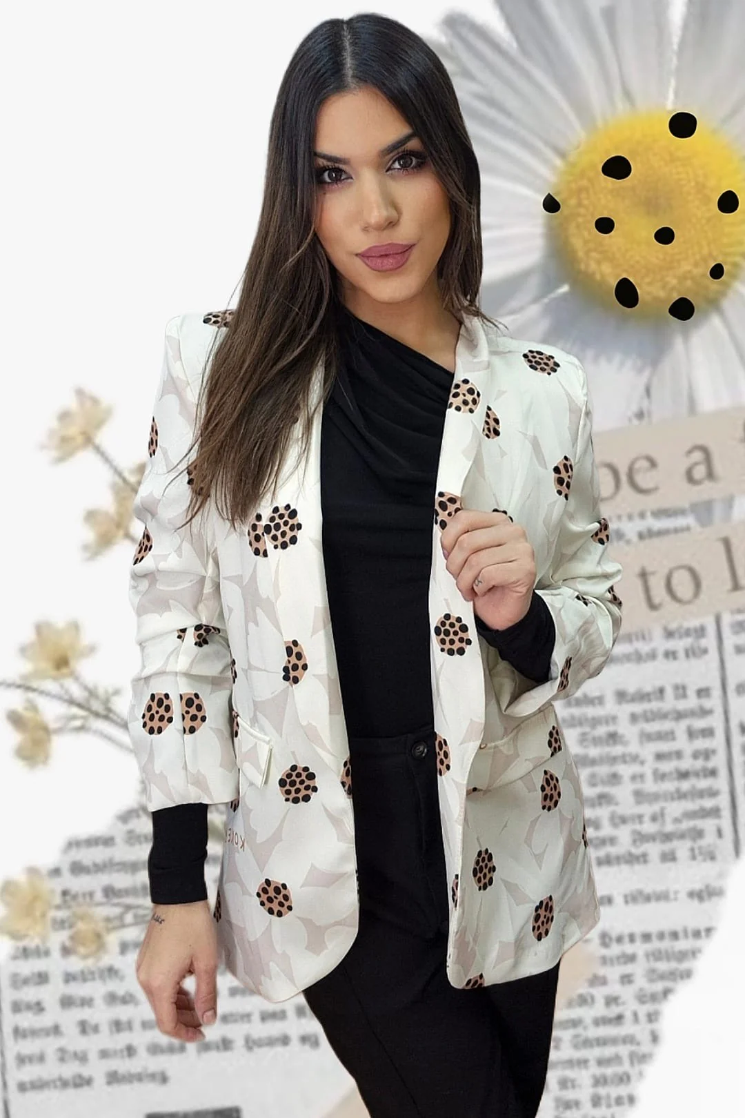 Blazer estampada sin cierre, manga fruncida, solapas y falsos bolsillos delanteros