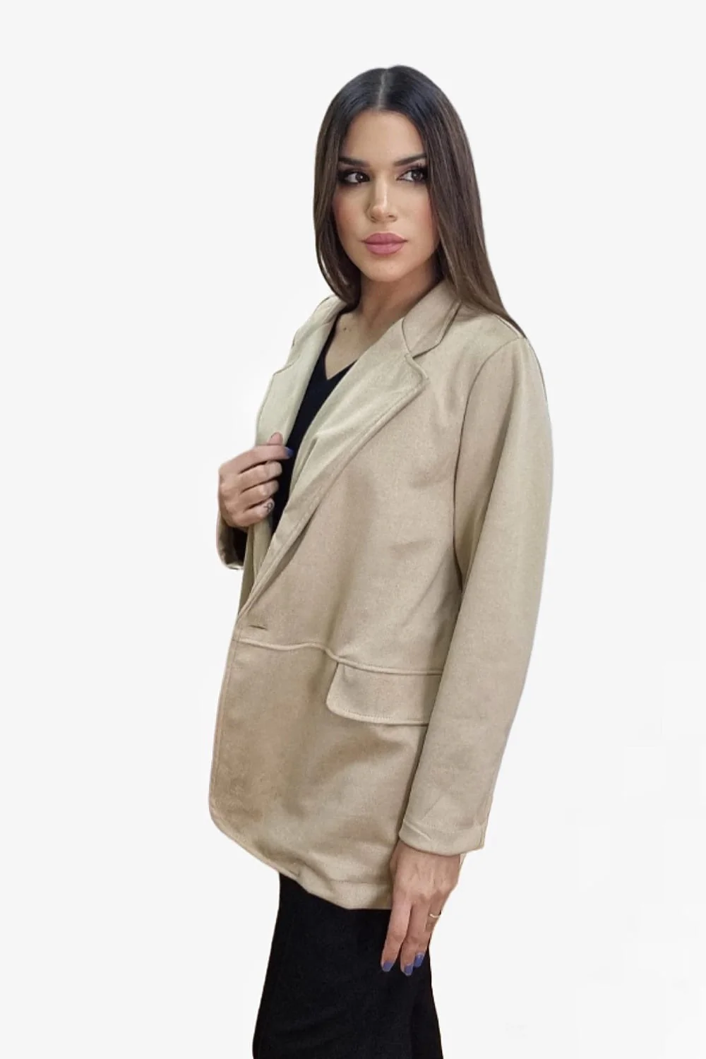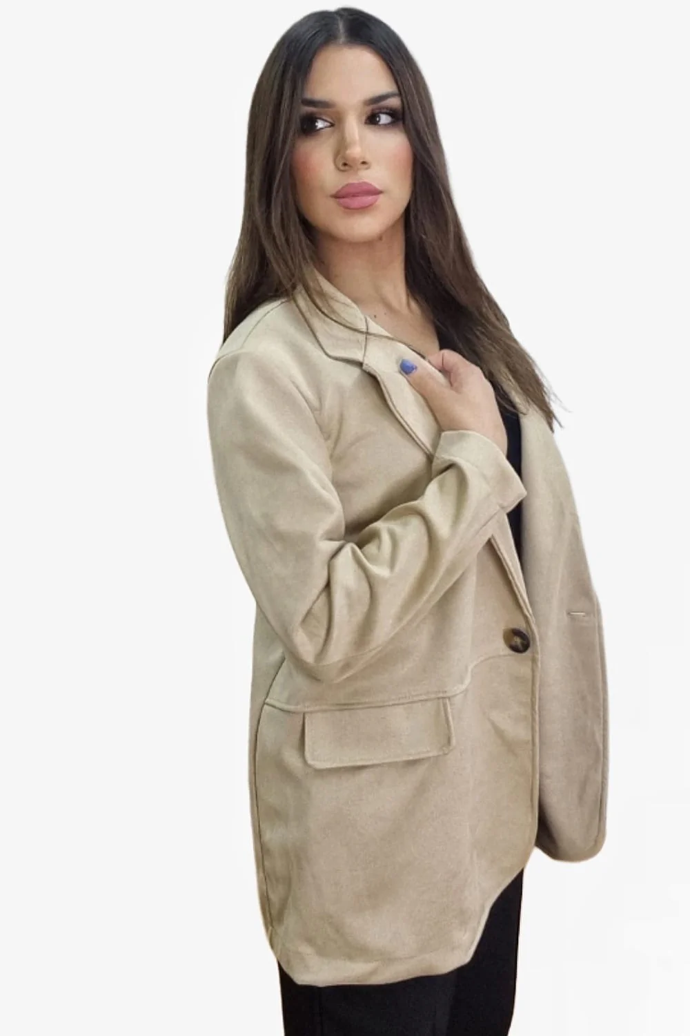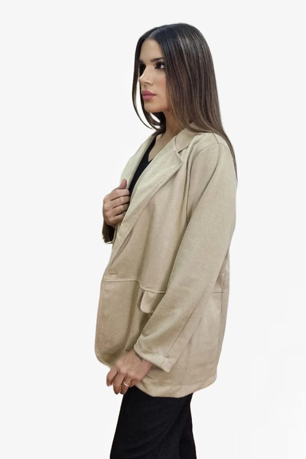 Blazer oversize efecto piel de melocotón y con falsos bolsillos.