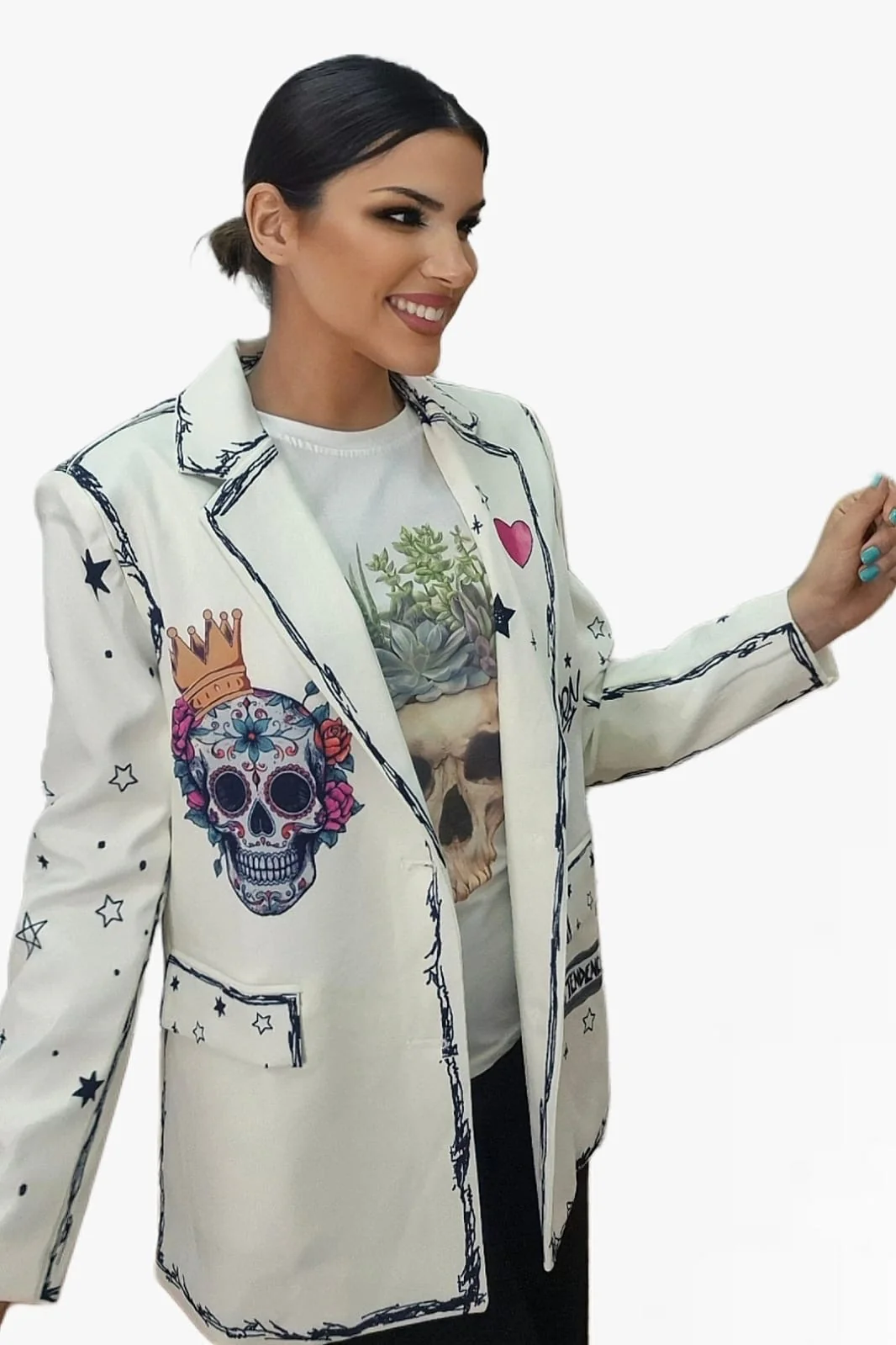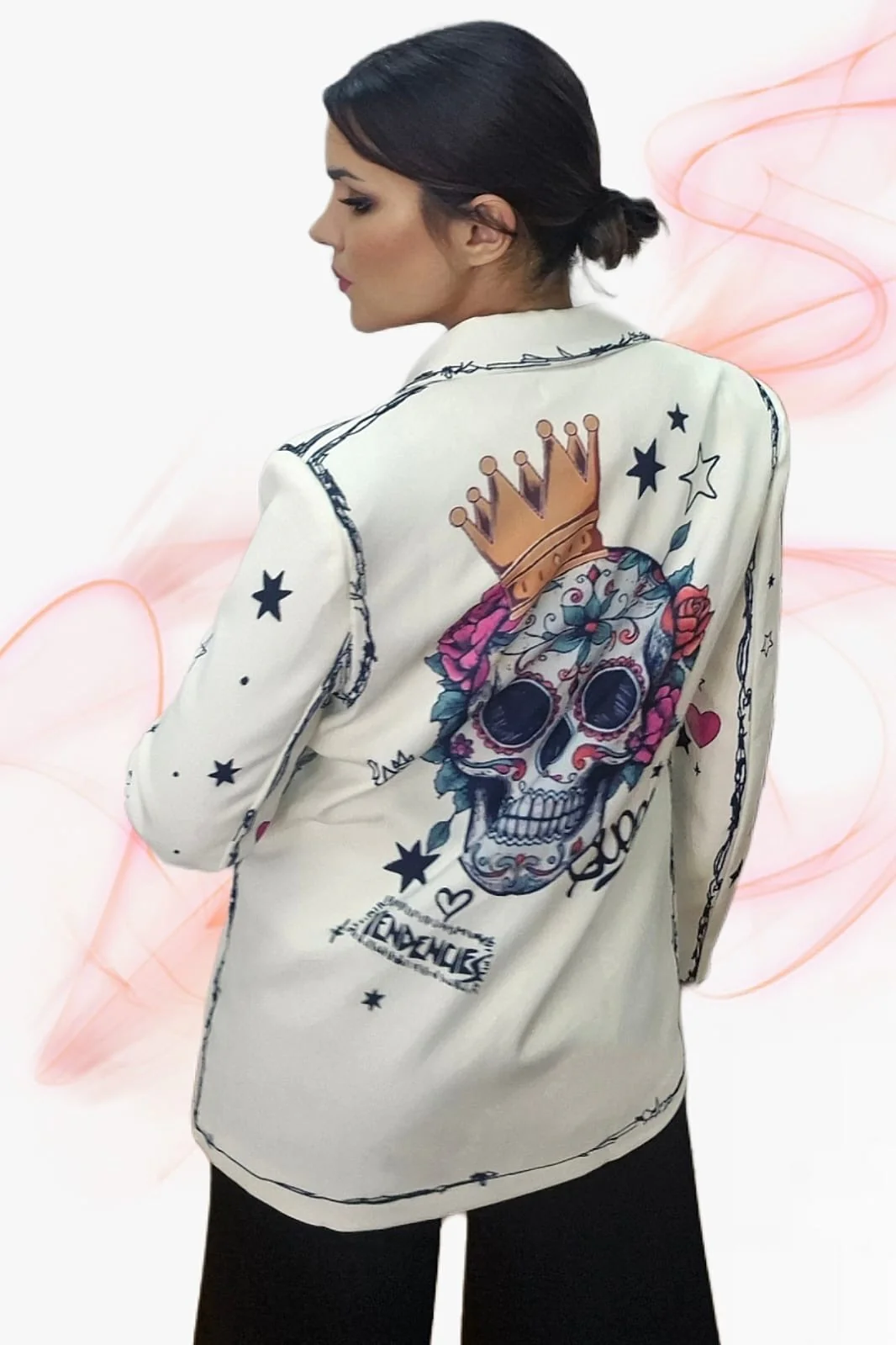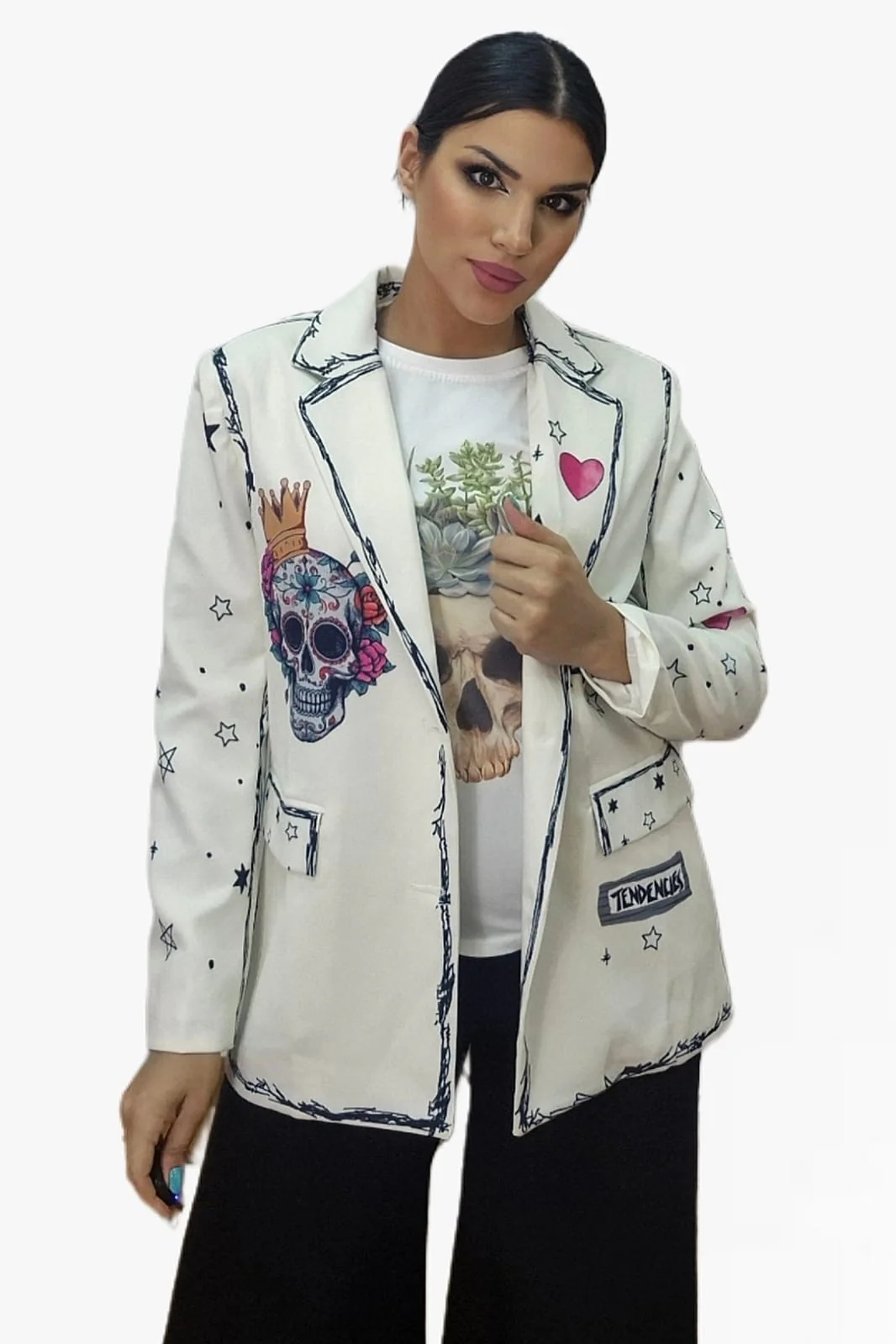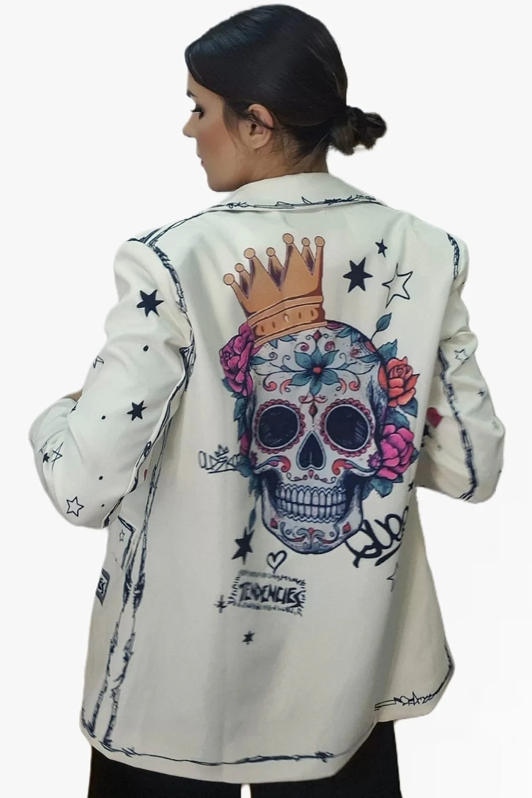 La blazer Tendenzies lo tiene todo: actitud, originalidad y un diseño que no pasa desapercibido. Con estampado tipo graffiti y detalles de calaveras y estrellas, es una prenda que habla por sí sola. Va entallada, estiliza la silueta y está disponible en tres colores para que elijas el que más se adapta a tu mood.