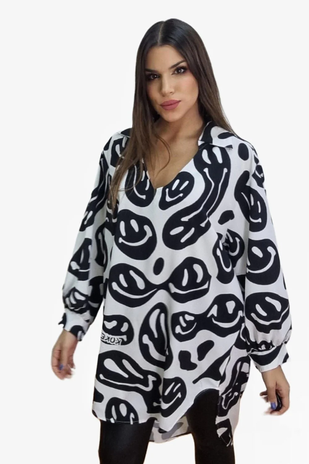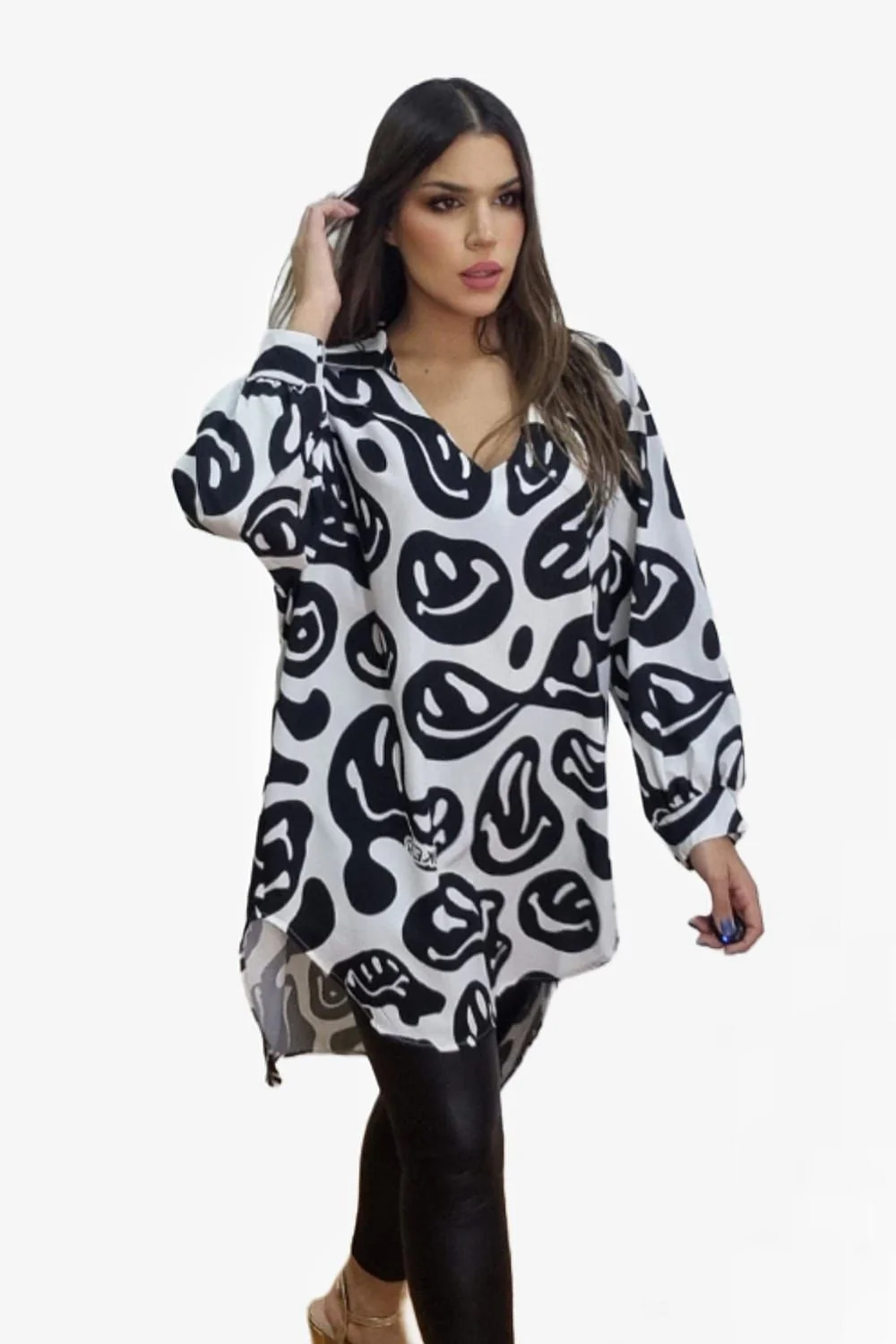 Blusa oversize asim茅trica con corte largo trasero. Ideal para llevar con vaquero o leggins.