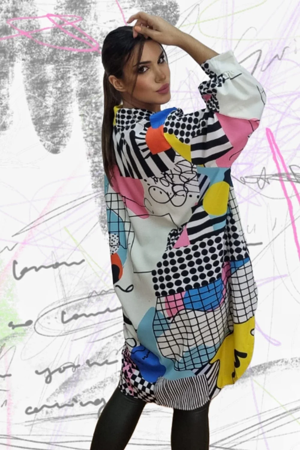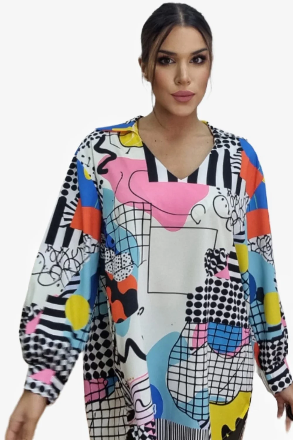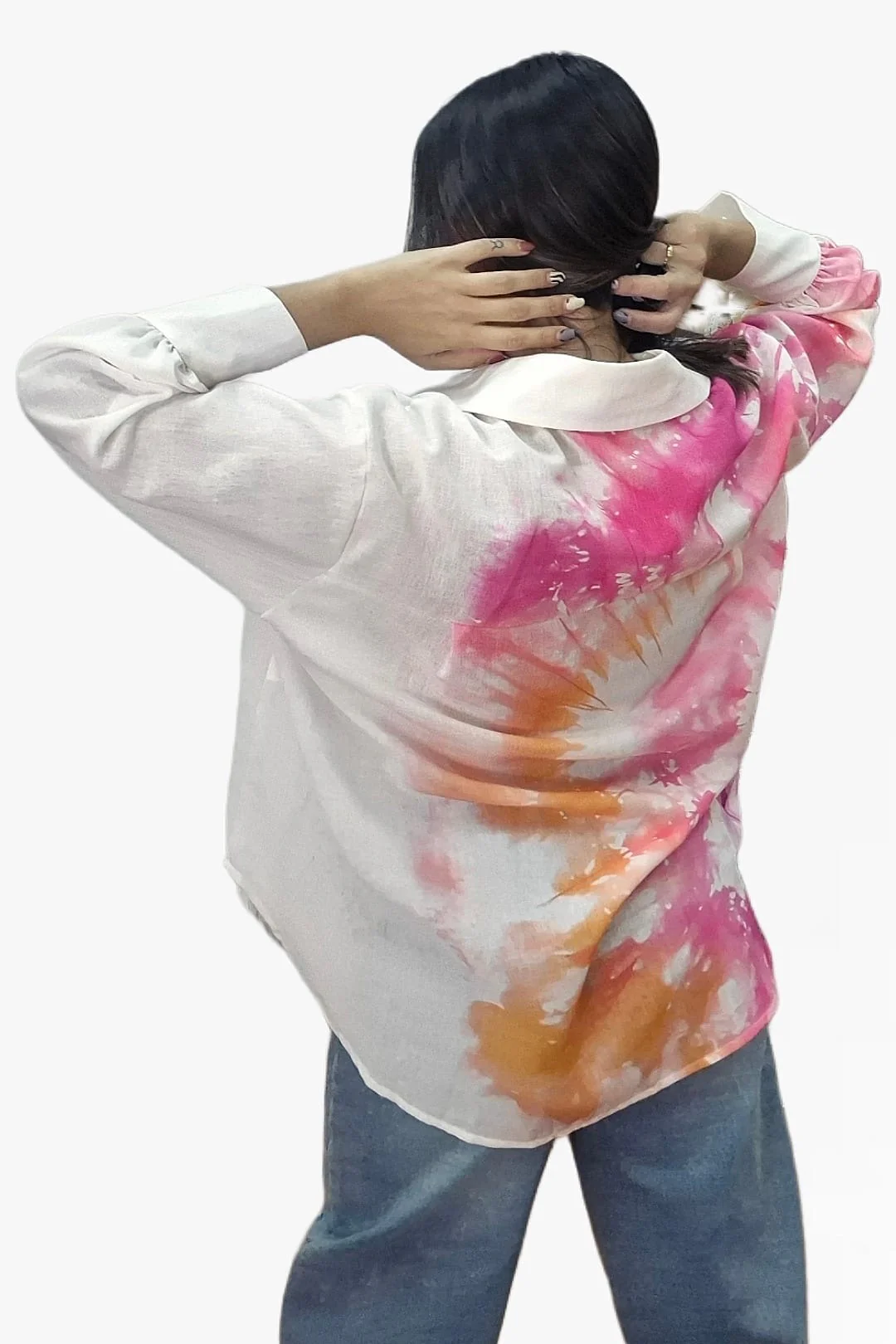 Blusa oversize asim茅trica con corte largo trasero. Ideal para llevar con vaquero o leggins.