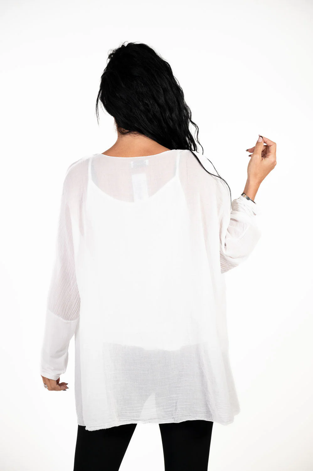 - Talla y corte: Esta blusa es talla única, pero se adapta de la XS a la XL
