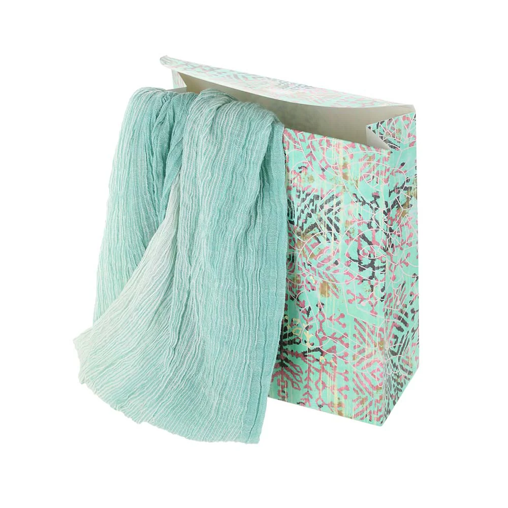 Caja Humana Mandala Etnic de color verde. Caja de regalo con estampado etnico multicolor con predominancia verde y pattern de mandalas.