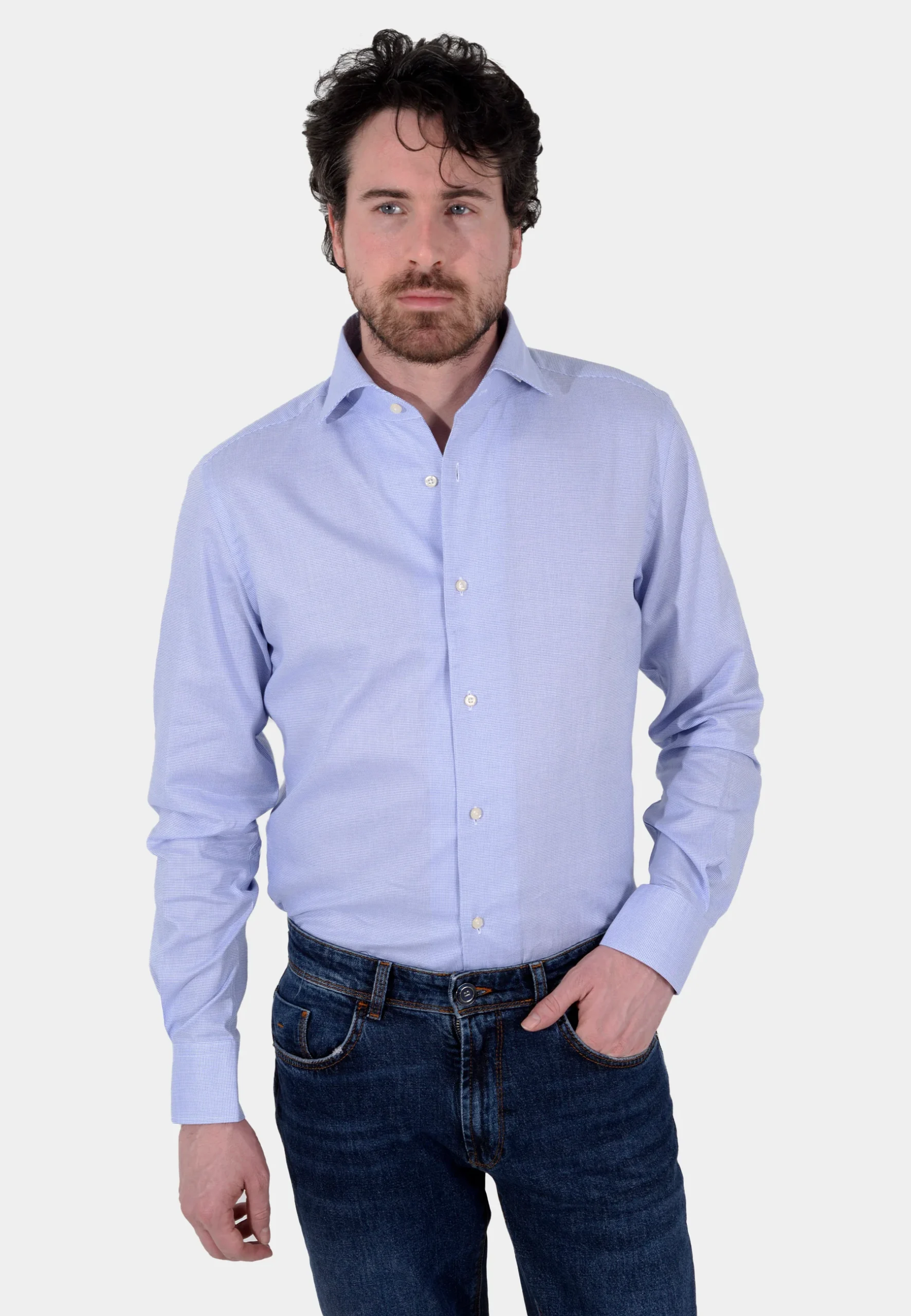 camisa de manga larga de Boggy Milano es una pieza esencial para un estilo casual y sofisticado. Confeccionada en un suave tejido de algodón, su delicado estampado a rayas verticales en tono azul claro le da un toque clásico y versátil. El corte slim fit se adapta perfectamente al cuerpo, ofreciendo una silueta elegante y moderna. El sutil logo del perro salchicha, bordado en el pecho, le da el toque final de distinción.
