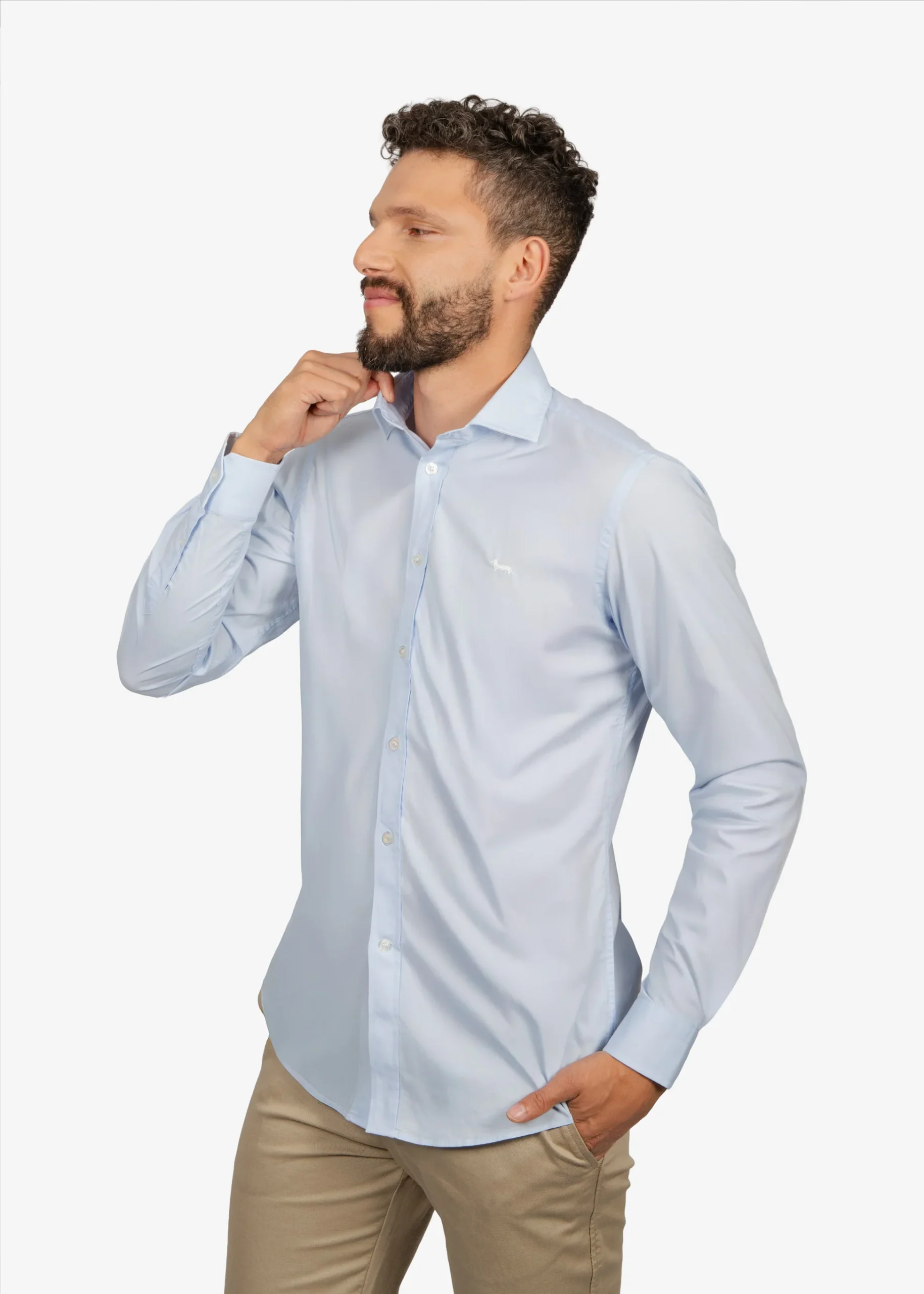 Camisa de lino manga larga en tono azul cielo, confeccionada con fibras naturales de alta calidad para brindar frescura y confort durante toda la jornada. Su diseño minimalista y corte moderno proyectan una imagen pulida y profesional, perfecta para entornos de oficina, reuniones corporativas o eventos de networking. Versátil