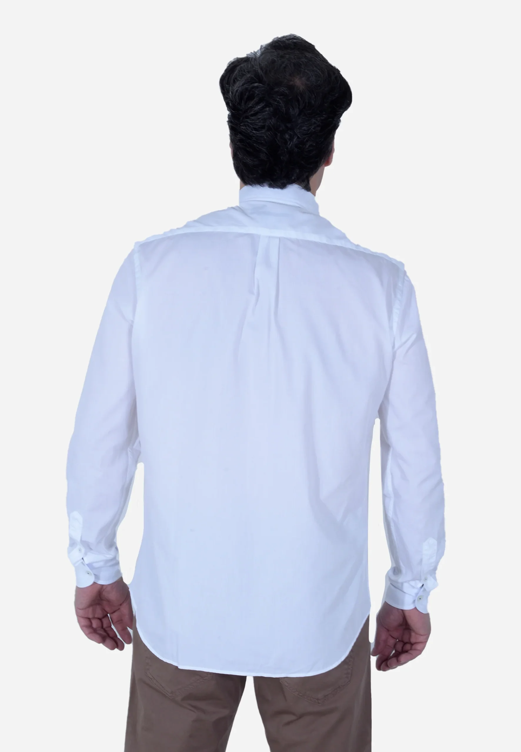 camisa blanca de manga larga para hombre. A continuación se describen sus detalles: Es una camisa de vestir o casual en color blanco.