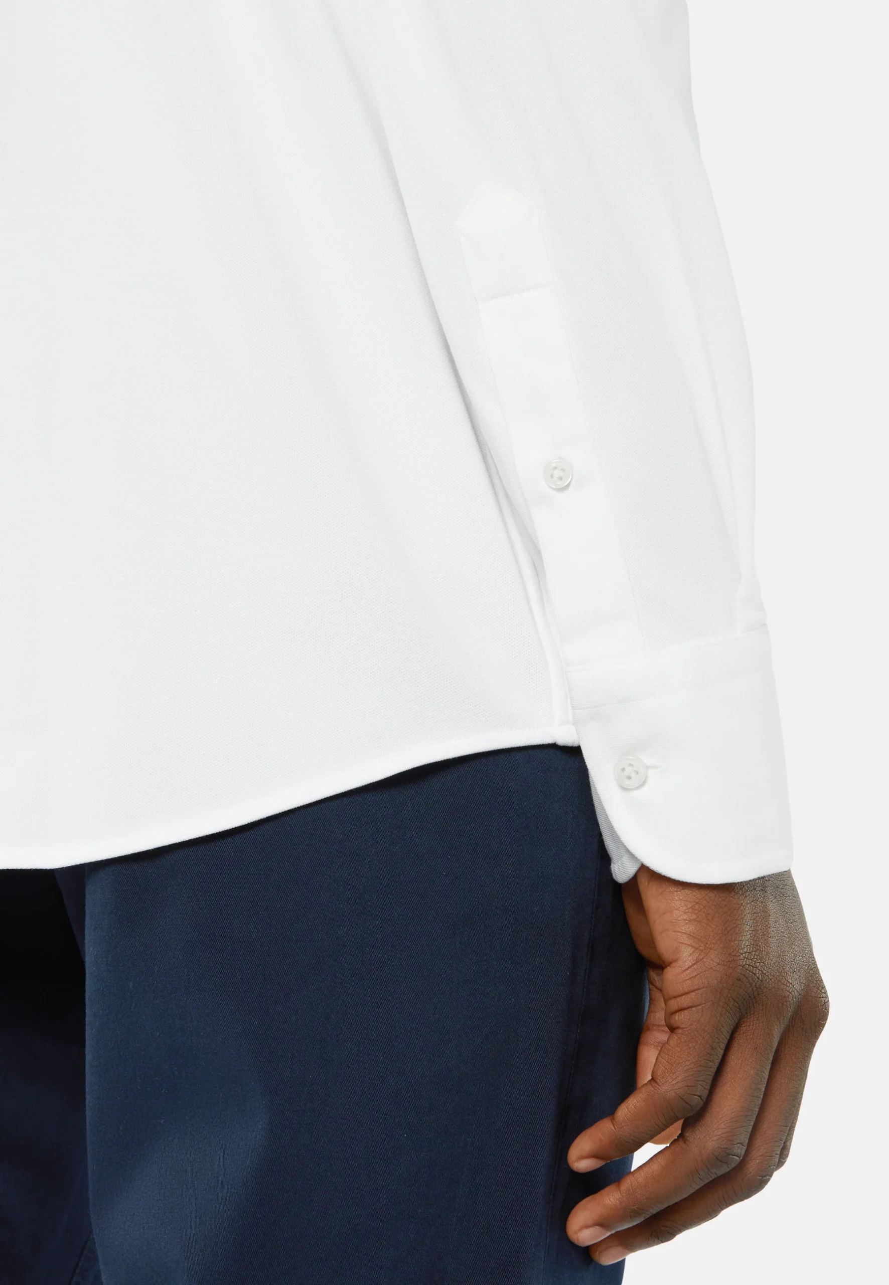 Camisa Blanca Boggi Milano está confeccionado en el tradicional tejido piqué de algodón premium que garantiza una sensación de frescura y transpirabilidad inigualables. su corte Regular Fit ofrece una silueta impecable. El cuello polo clásico con tapeta de botones y la manga corta lo convierten en el artículo perfecto para un estilo pulcro sin esfuerzo. Combínalo con pantalones chino o bermudas para un look de fin de semana sofisticado