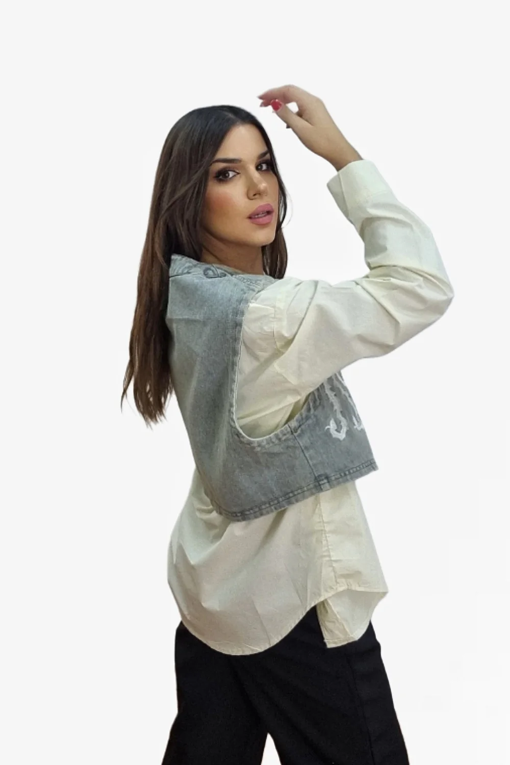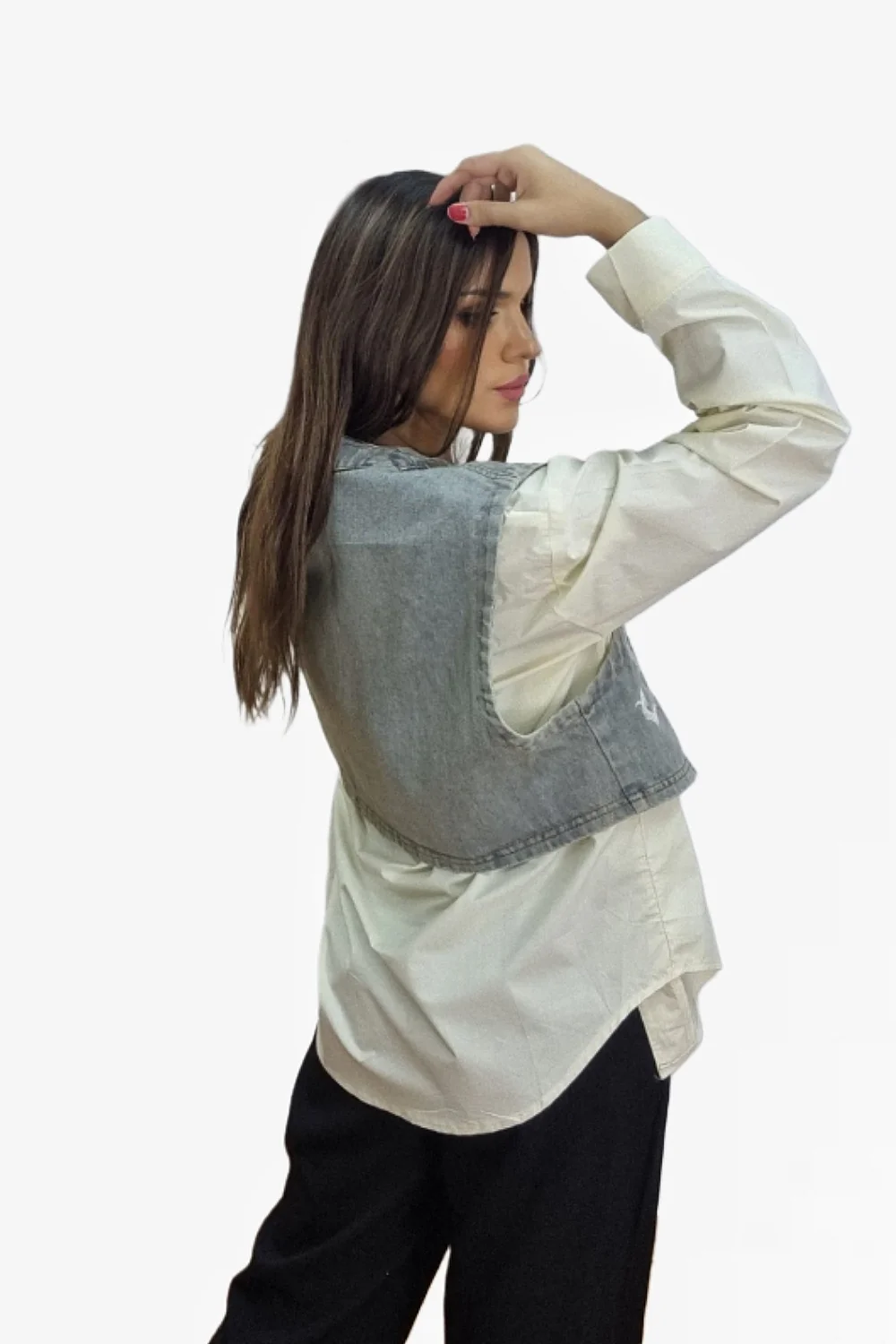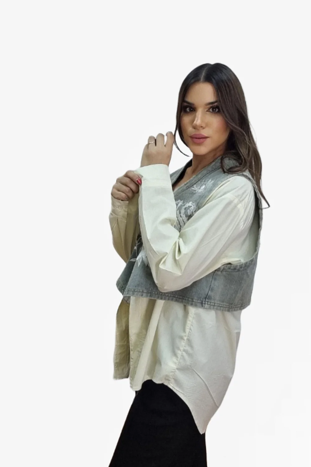 - Medidas: Camisa; Pecho 57,5 cm Hombro 52 cm Largo asimétrico 75,5cm/77,5cm Manga 57,5 cm / Chaleco; Pecho 57,5 cm Hombro 43,5 cm Largo 49 cm