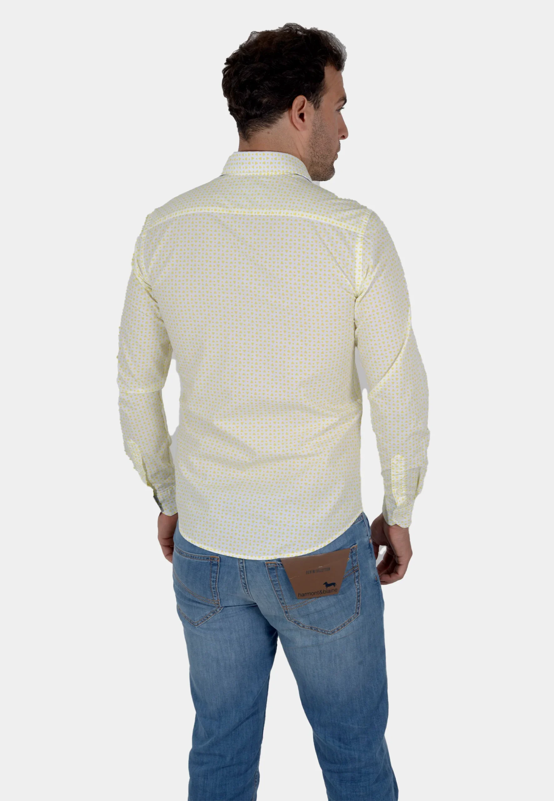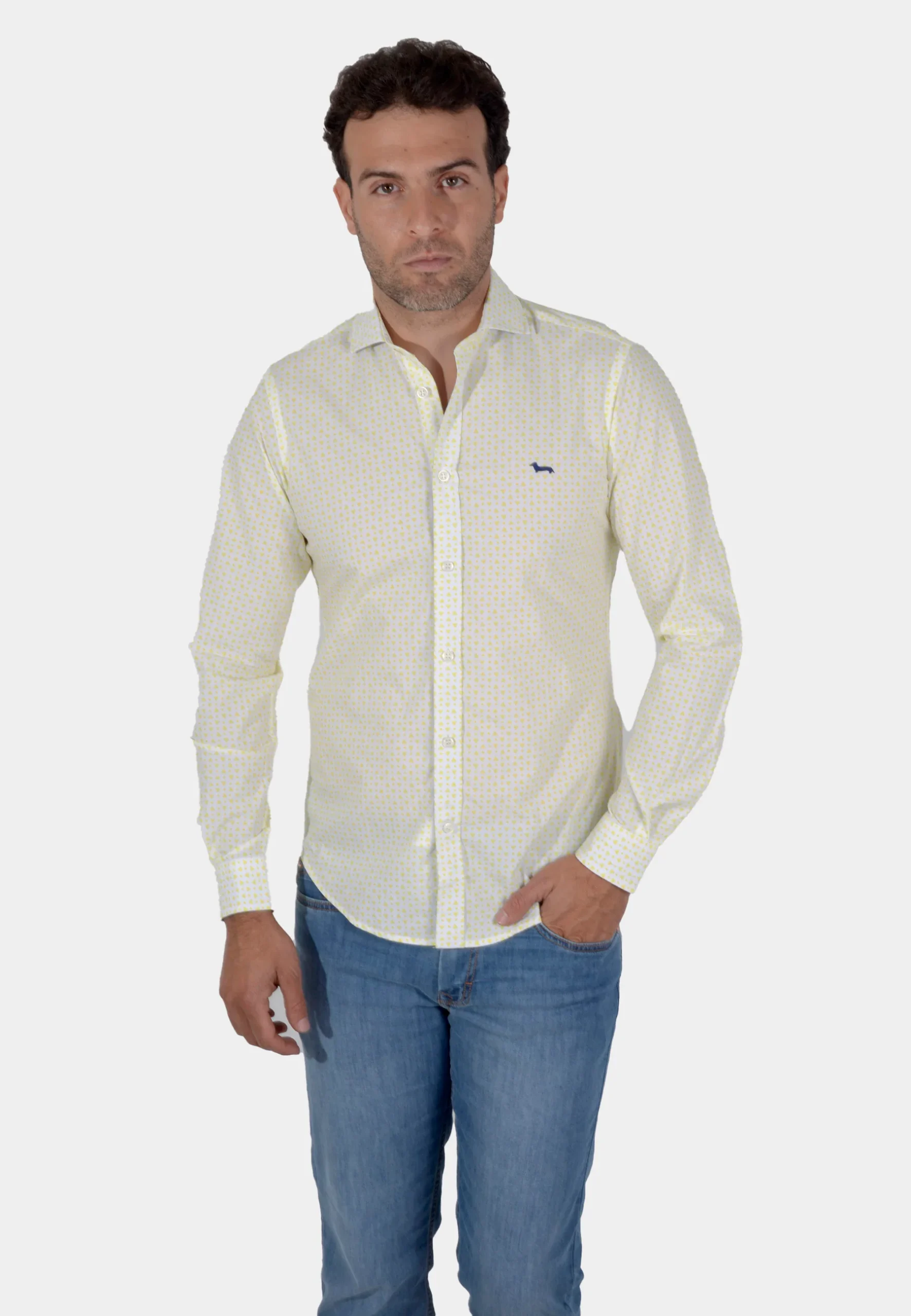 camisa Harmont & Blaine en tono crema con delicado patrón de microcuadros en amarillo suave. Confeccionada en algodón premium, ofrece un acabado ligero y transpirable, ideal para todo el día. Su corte regular fit proporciona comodidad sin perder estilo, mientras que el icónico logo bordado en azul sobre el pecho resalta la exclusividad de la marca. Perfecta para combinar con jeans claros o pantalones chinos, adaptándose tanto a un look casual refinado como a un ambiente business casual.