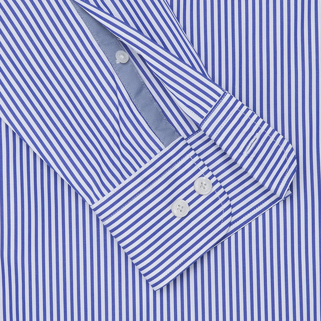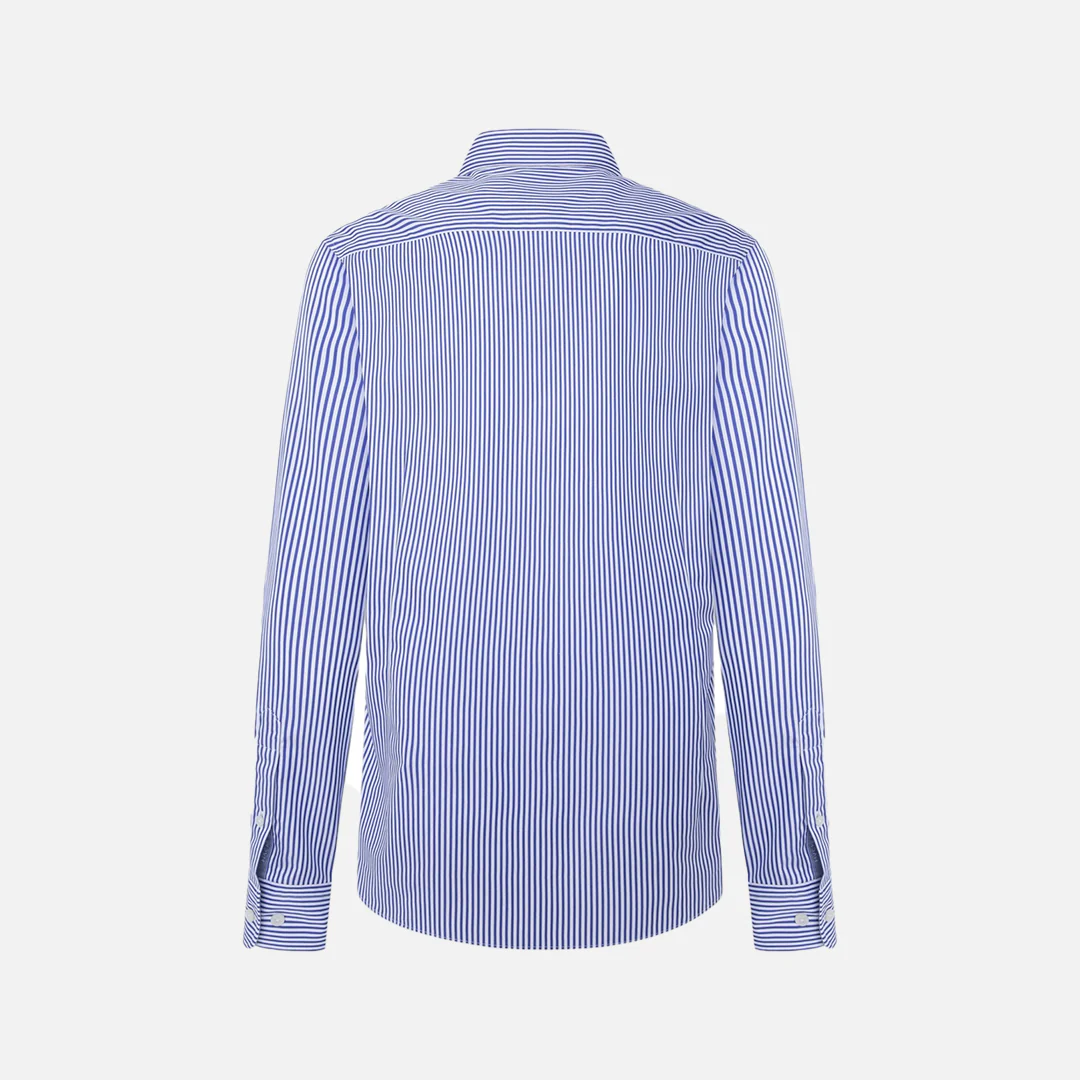 La emblemática camisa con estampado de rayas Bengala de Hacket London, en azul y blanco, es una prenda elegante para ocasiones especiales. Hecha en algodón, esta camisa suave y transpirable presenta un distintivo cuello italiano y una elegante tapeta francesa. Las pinzas en la espalda y el corte entallado realzan la silueta, mientras que los puños y el bajo ligeramente curvados le aportan un toque moderno.