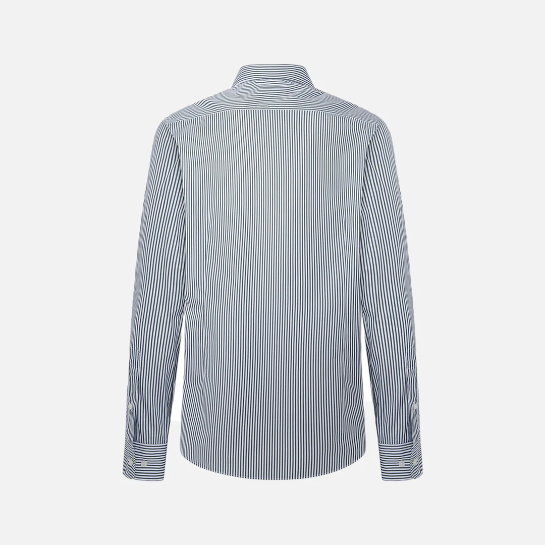 La emblemática camisa con estampado de rayas Bengala de Hacket London, en verde y blanco, es una prenda elegante para ocasiones especiales. Hecha en algodón, esta camisa suave y transpirable presenta un distintivo cuello italiano y una elegante tapeta francesa. Las pinzas en la espalda y el corte entallado realzan la silueta, mientras que los puños y el bajo ligeramente curvados le aportan un toque moderno.