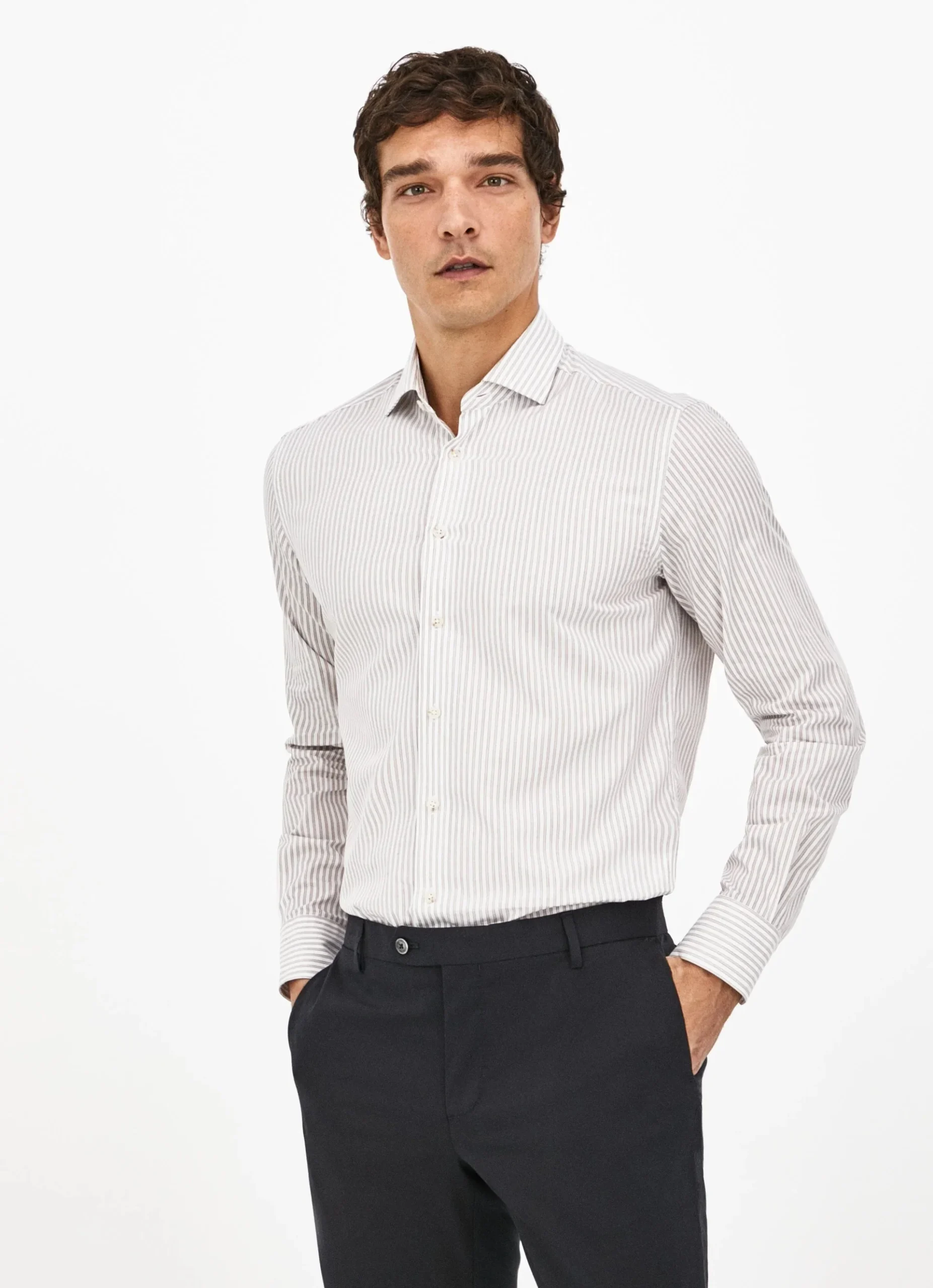 Con un sutil motivo a rayas, esta camisa de corte ajustado es un esencial fácil de llevar para la oficina o una ocasión elegante. Su tejido de popelín en 100% algodón sostenible con certificación BCI presenta un refinado motivo a rayas en marrón, acentuado con un detalle en el mismo color en el interior de los puños.El algodón sostenible minimiza el uso de sustancias químicas nocivas, mejora la calidad del suelo y previene la contaminación para ayudar a proteger la salud de los agricultores y la fauna local.