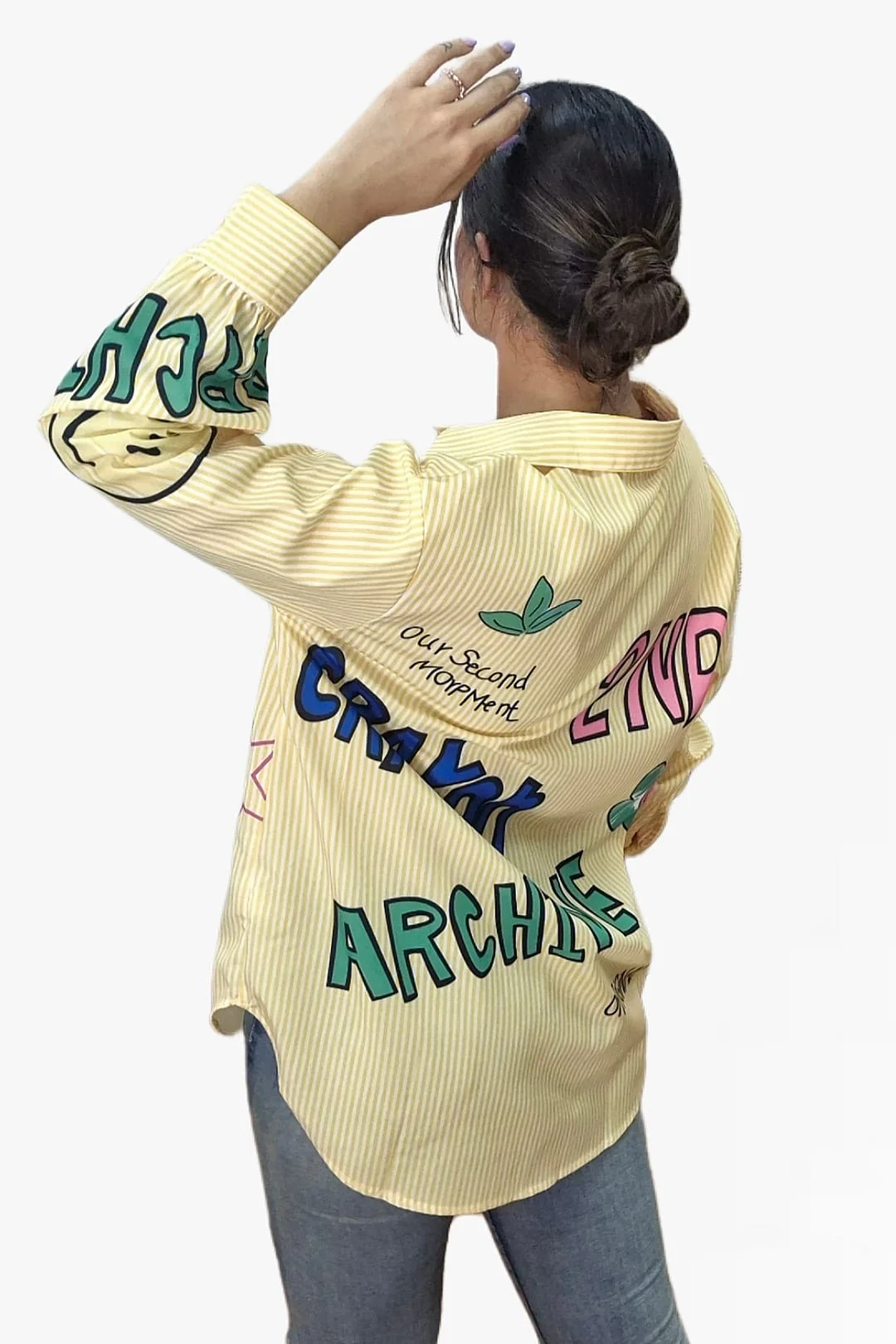 • Camisa de rayas con estampado frontal y trasero tipo graffiti