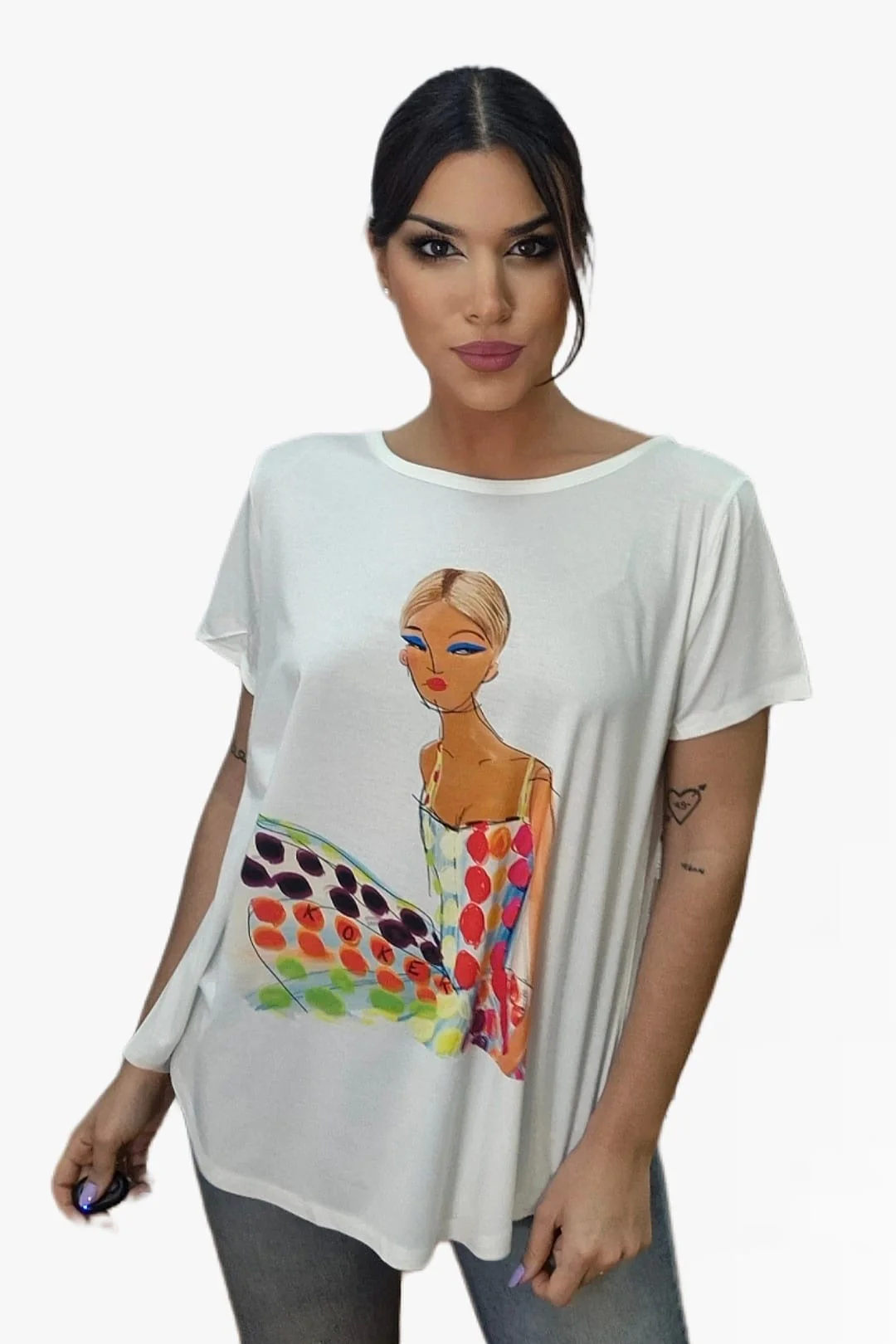 Esta camiseta de talla única combina la suavidad de su tejido con un diseño llamativo en la parte frontal que convierte cualquier look en una declaración de estilo. Su corte recto y fluido se adapta fácilmente a diferentes siluetas, ofreciendo comodidad sin perder personalidad.