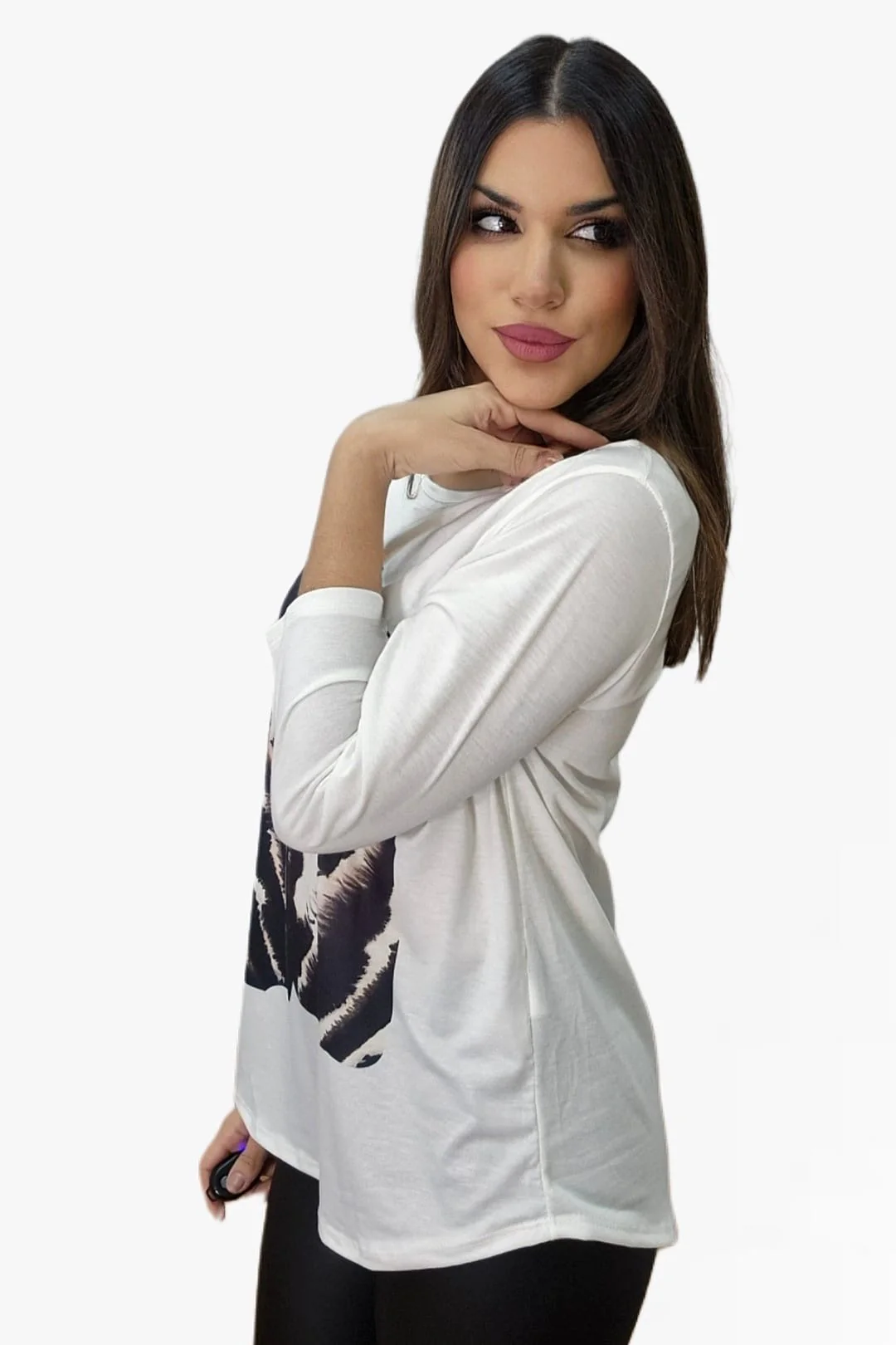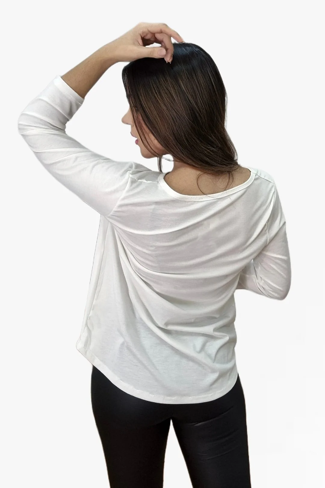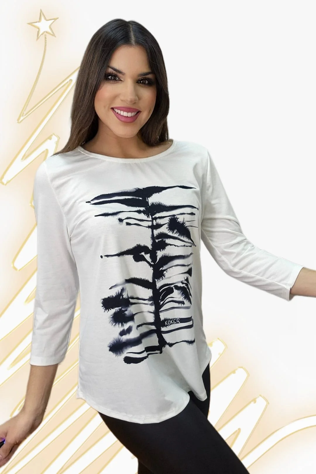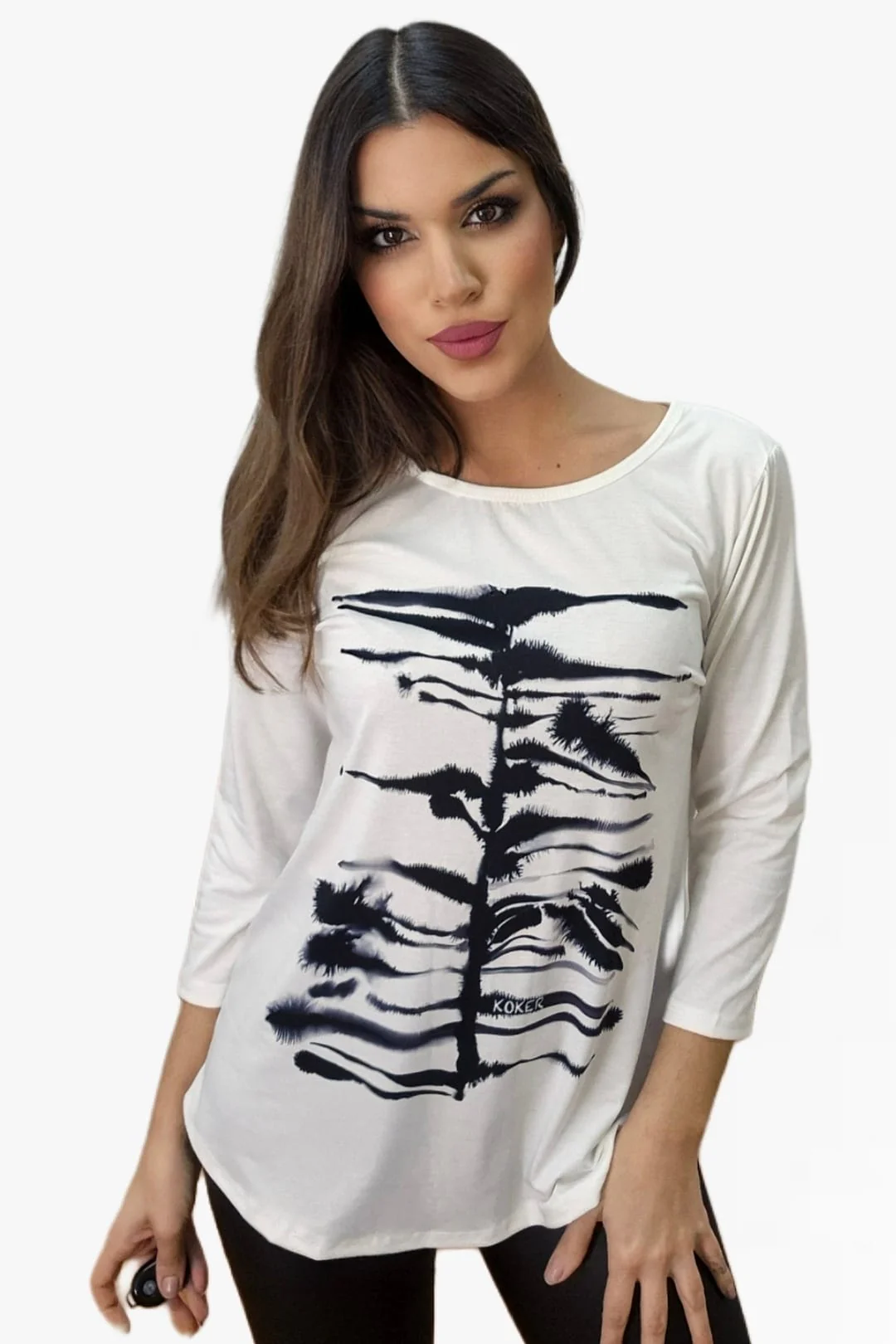 Camiseta estampada de manga tres cuartos, con escote redondo.