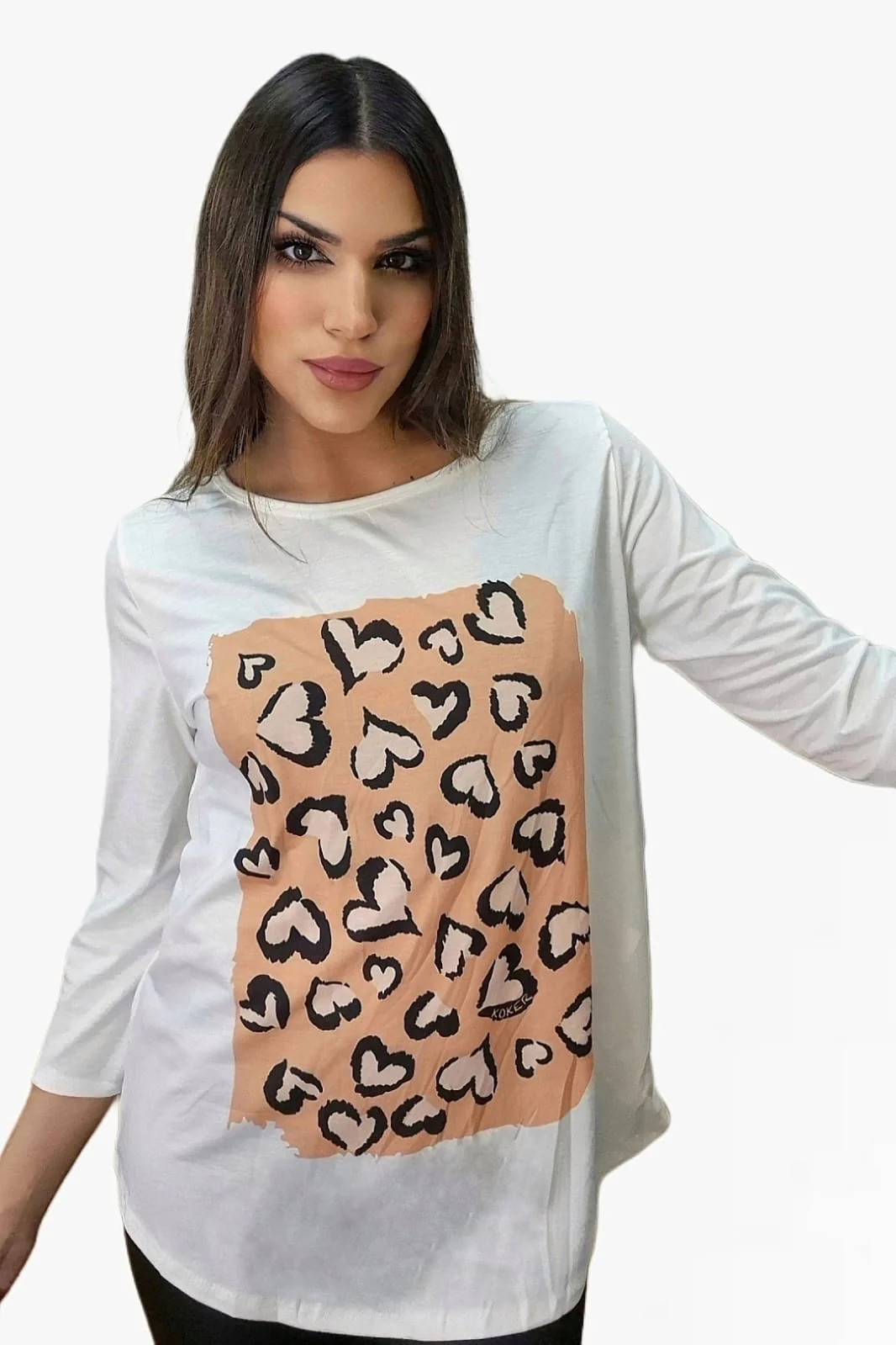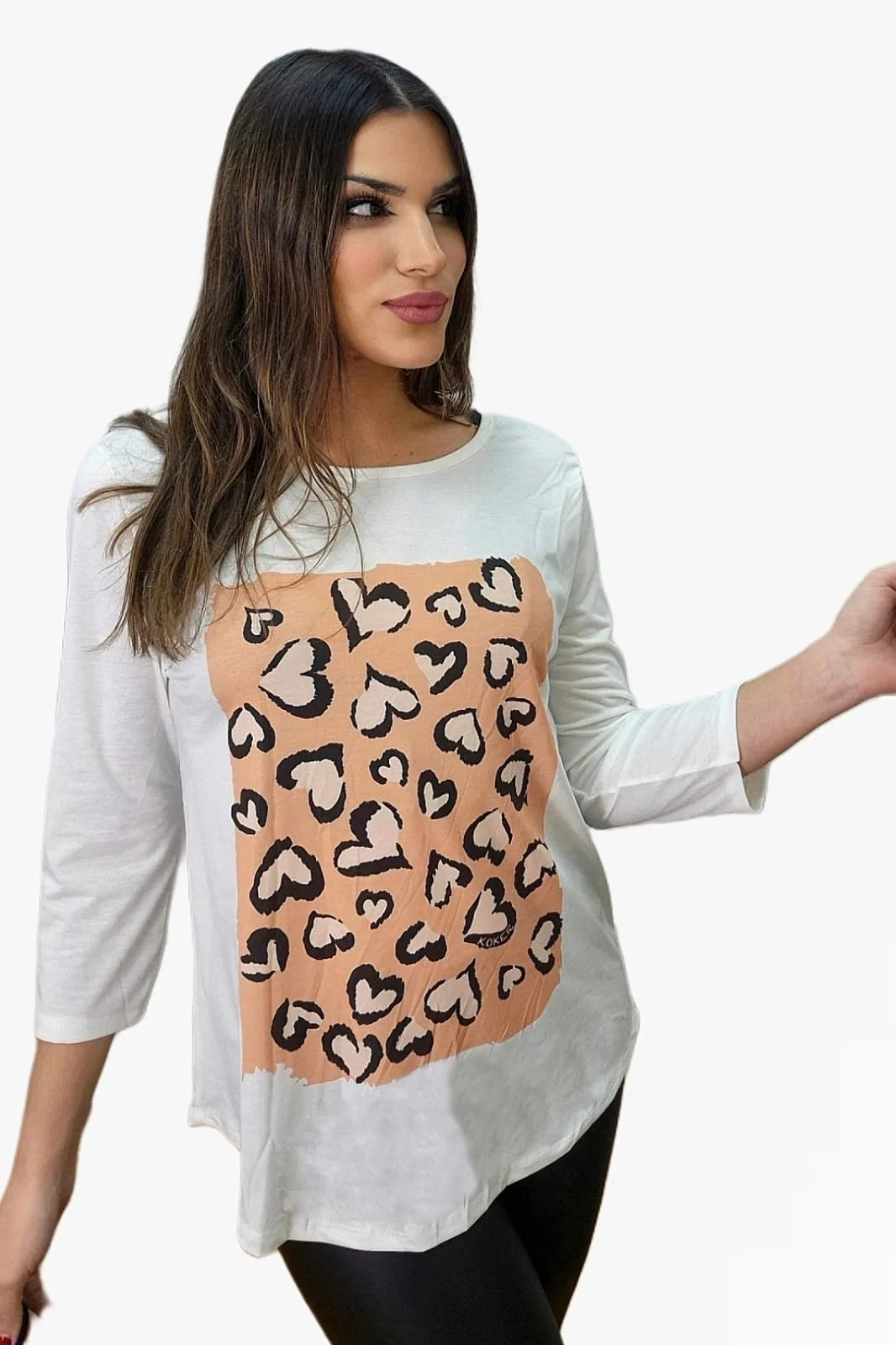 Camiseta estampada de manga tres cuartos, con escote redondo.