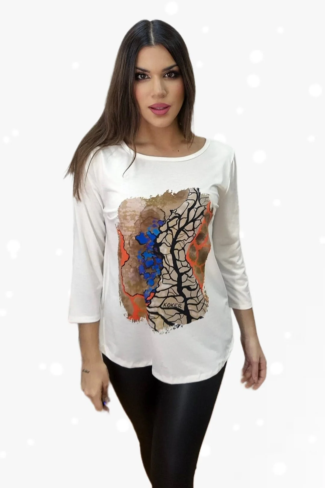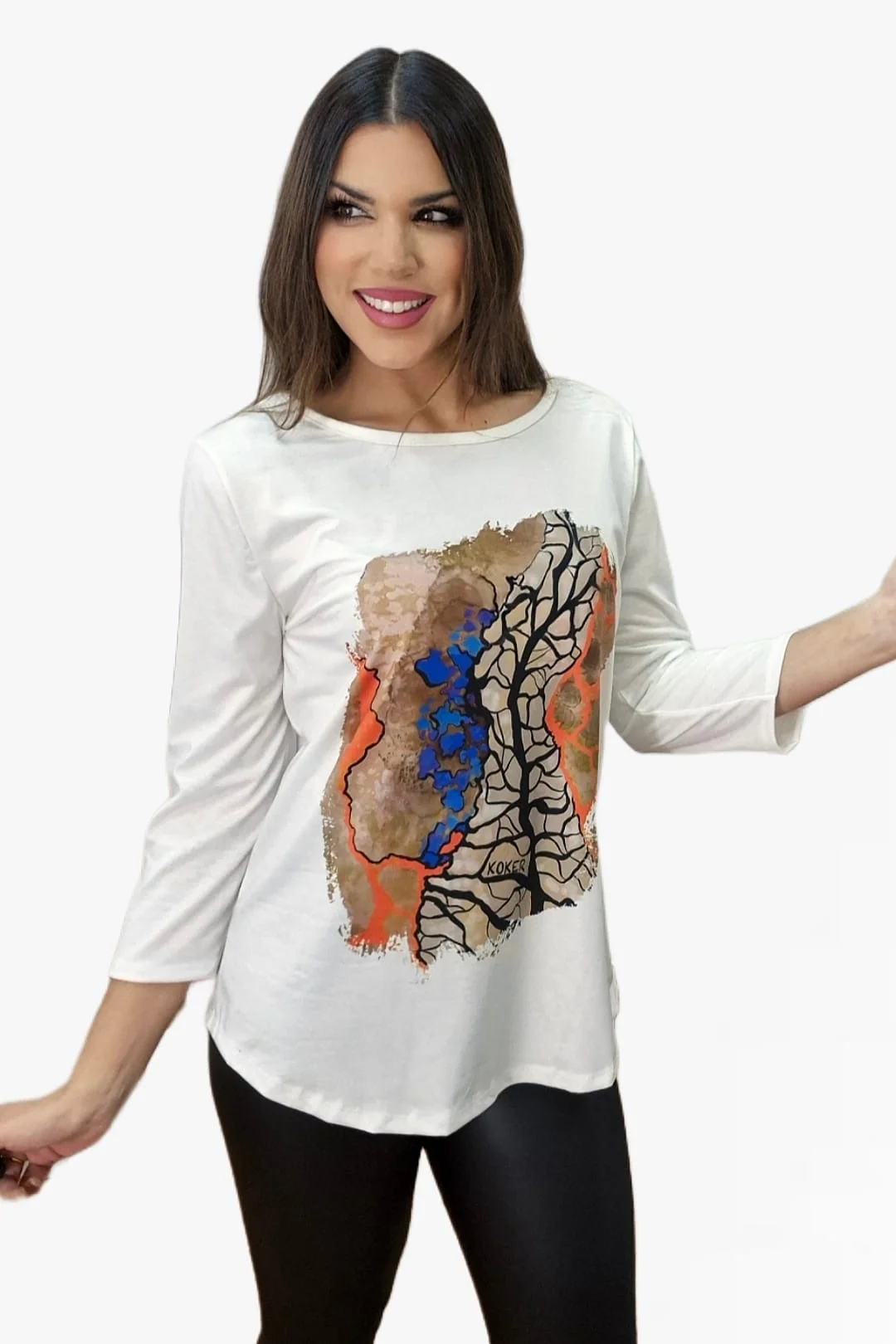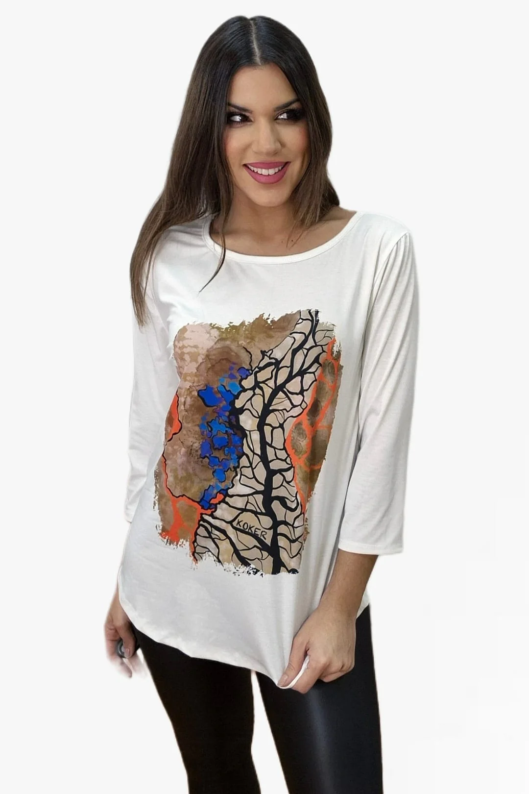 Camiseta estampada de manca tres cuartos, con escote redondo.