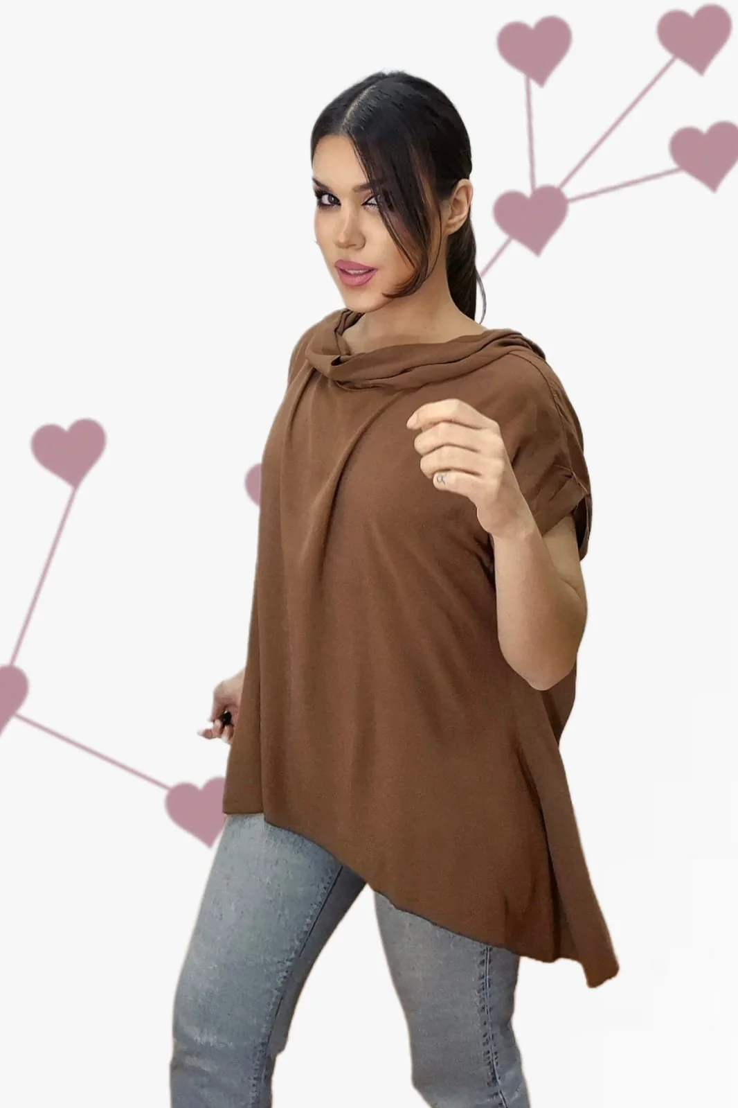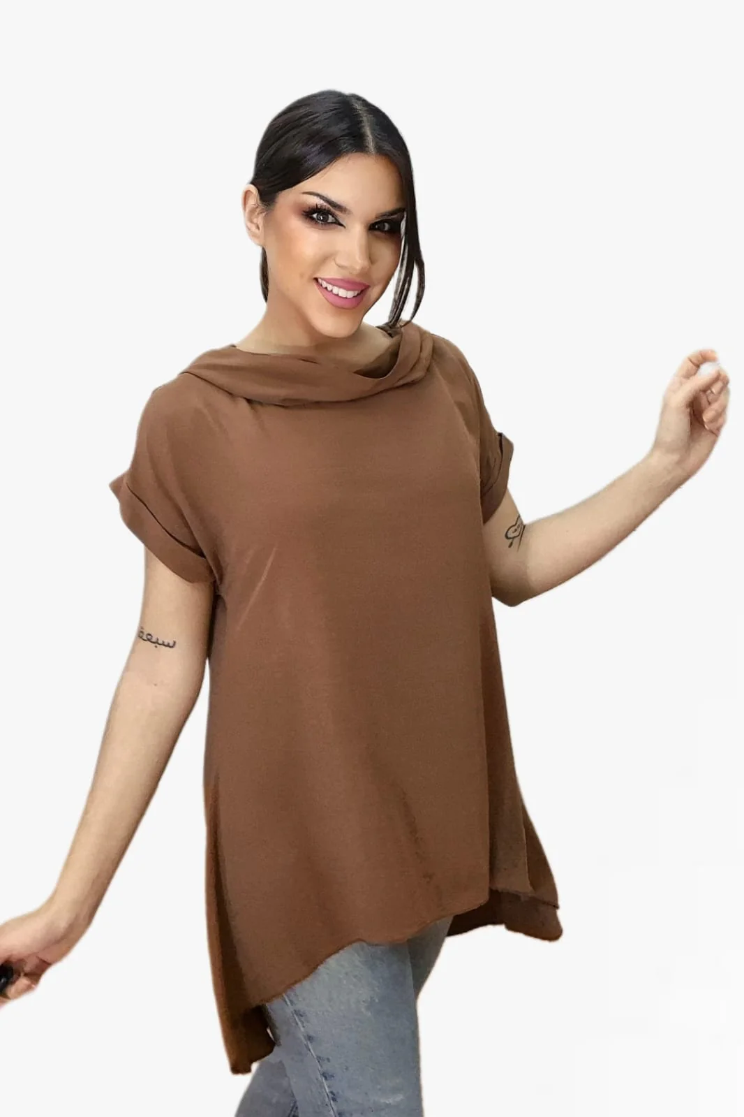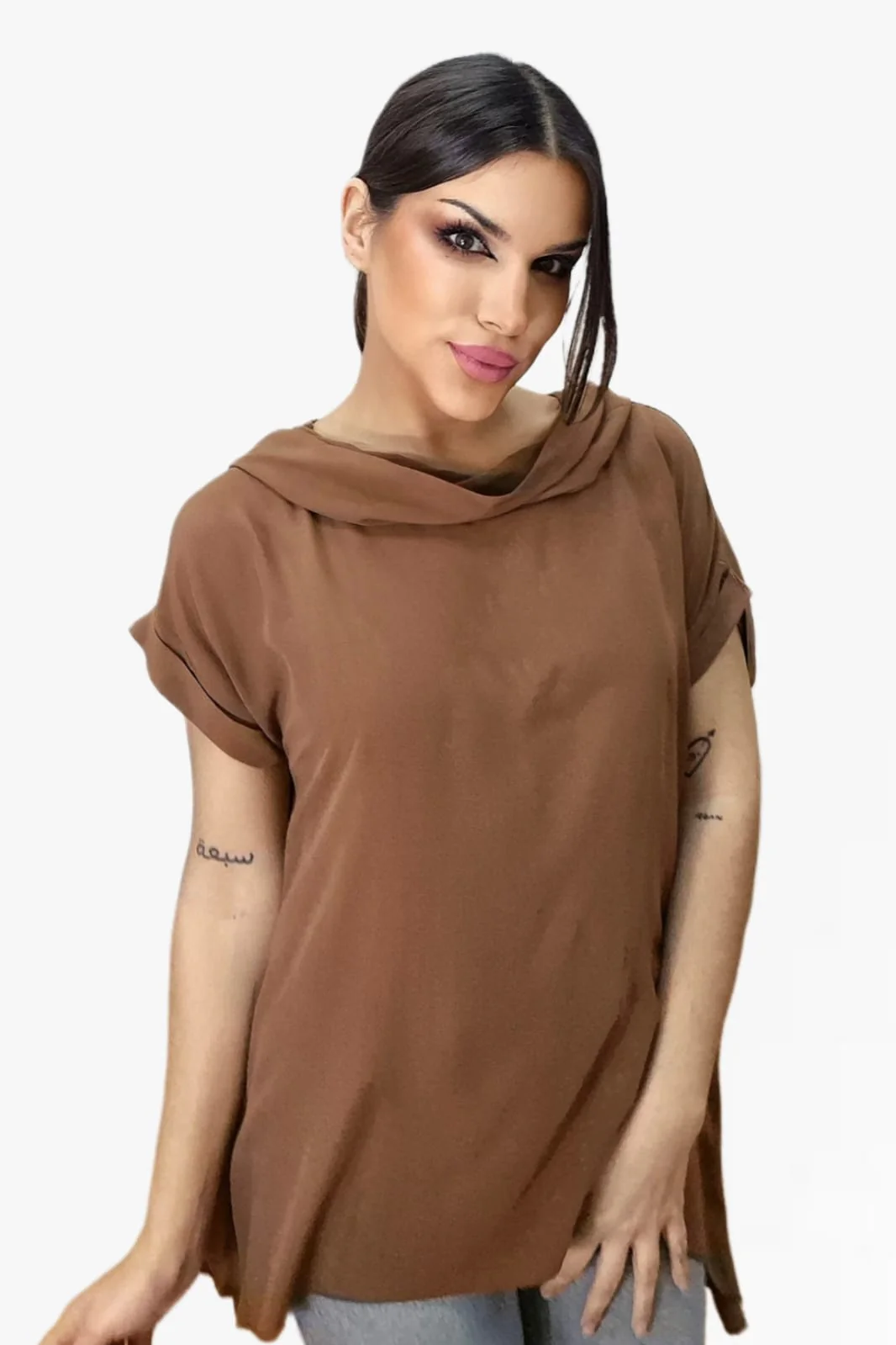 Camiseta Fluida Capucha Marrón