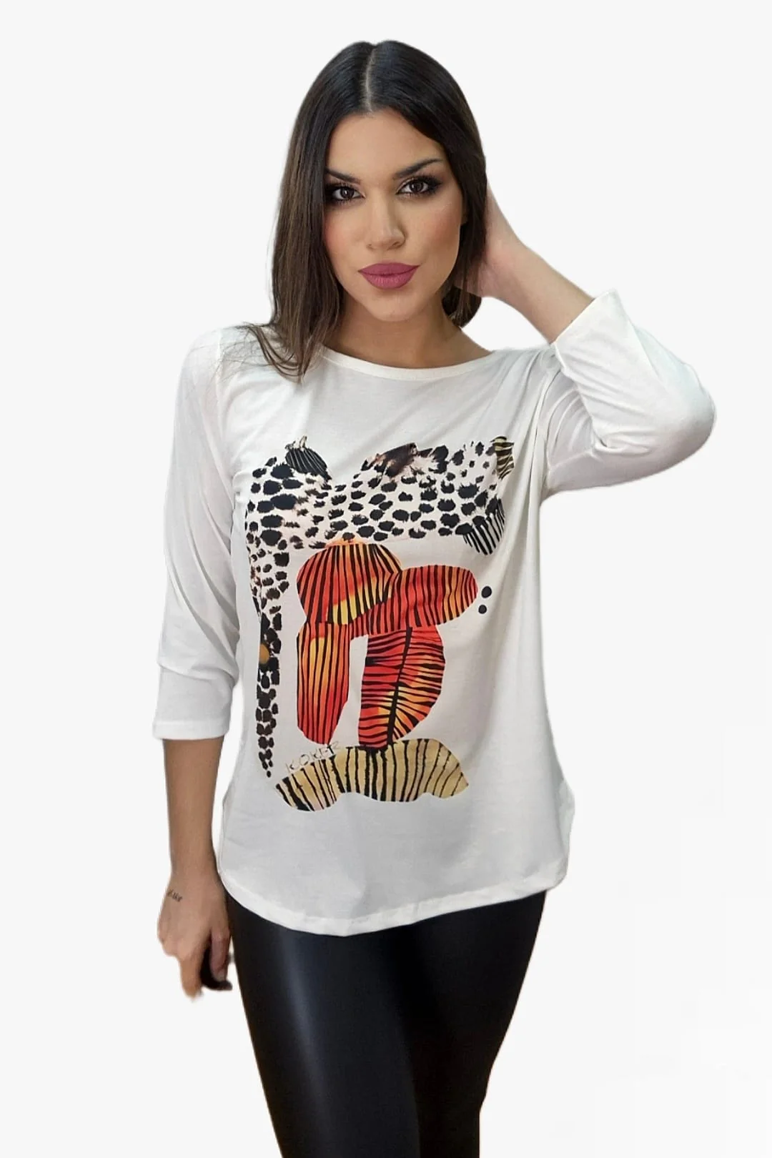 Camiseta estampada de manga tres cuartos, con escote redondo.