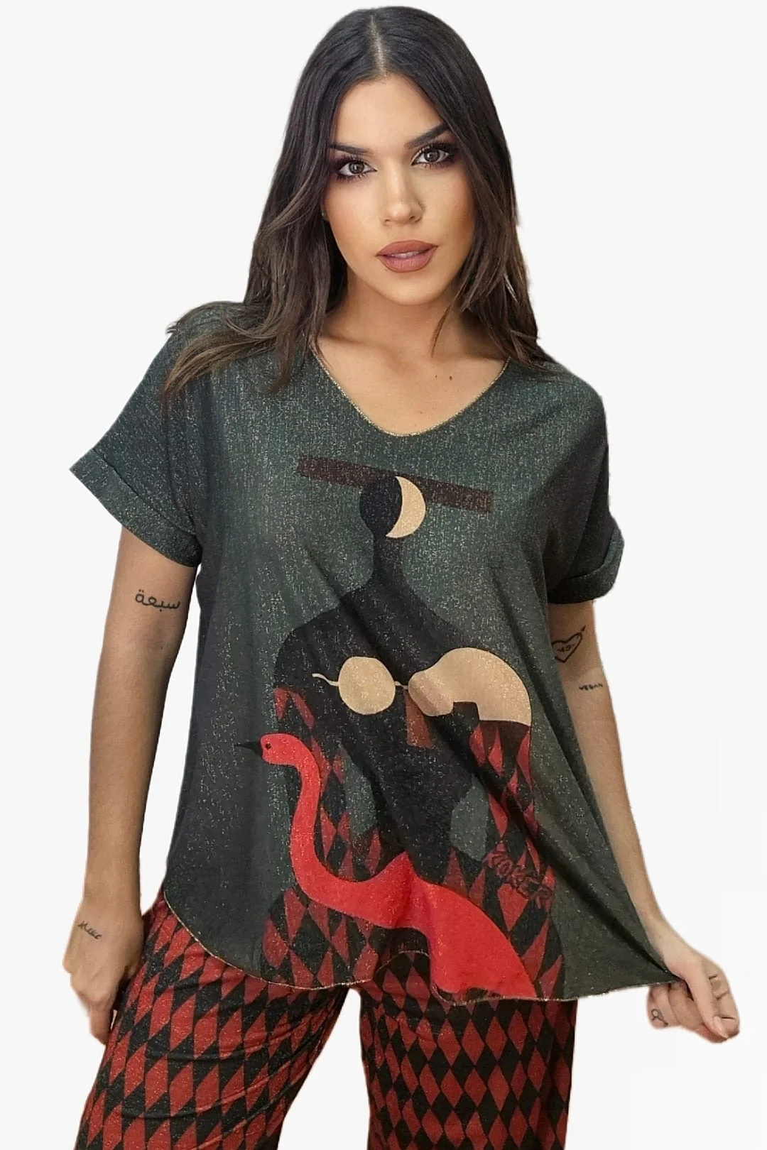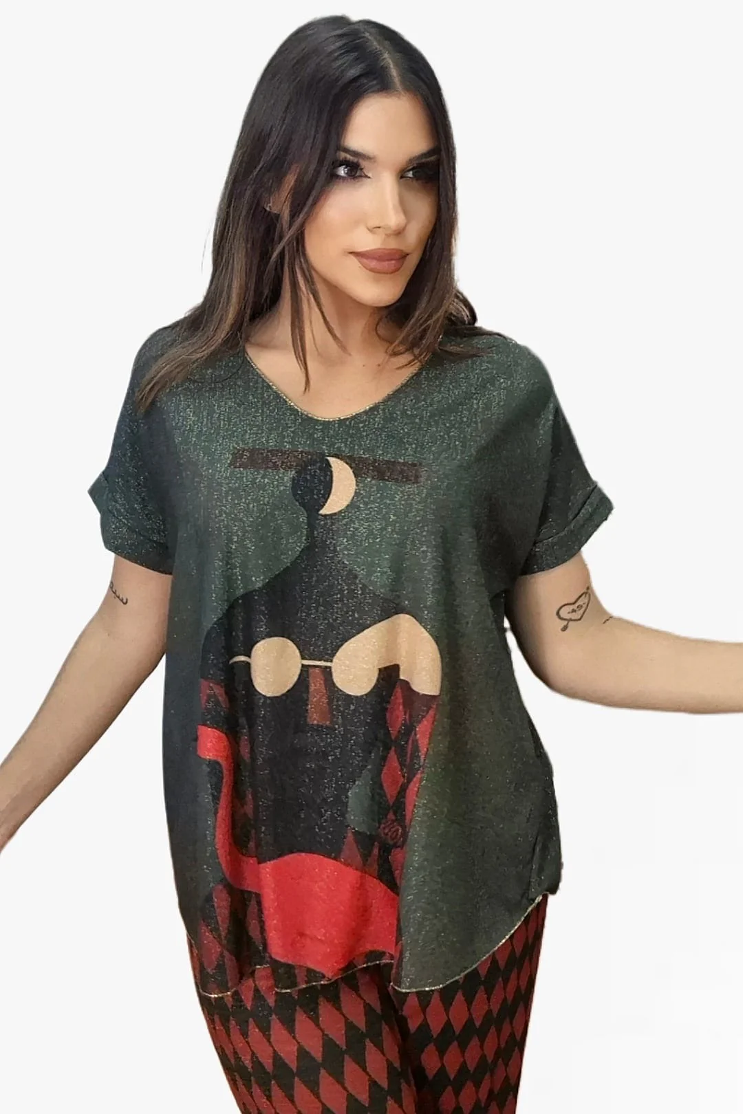- Camiseta de lurex estampada con diseño artístico
