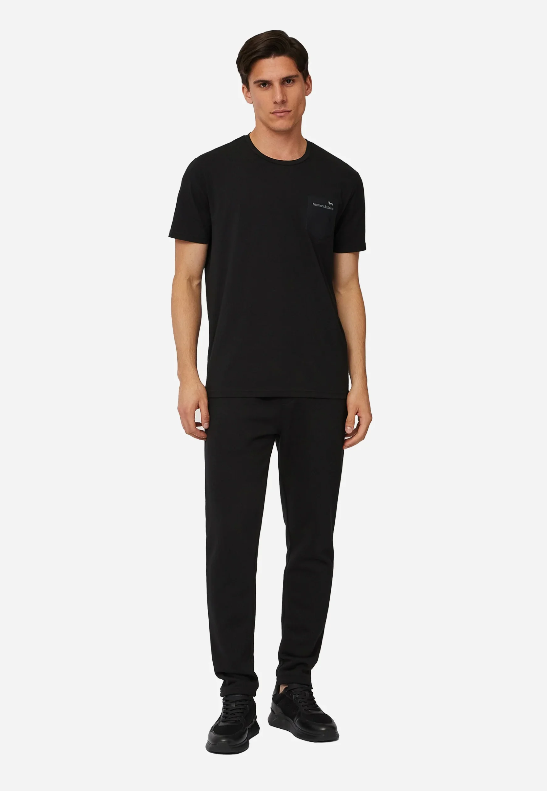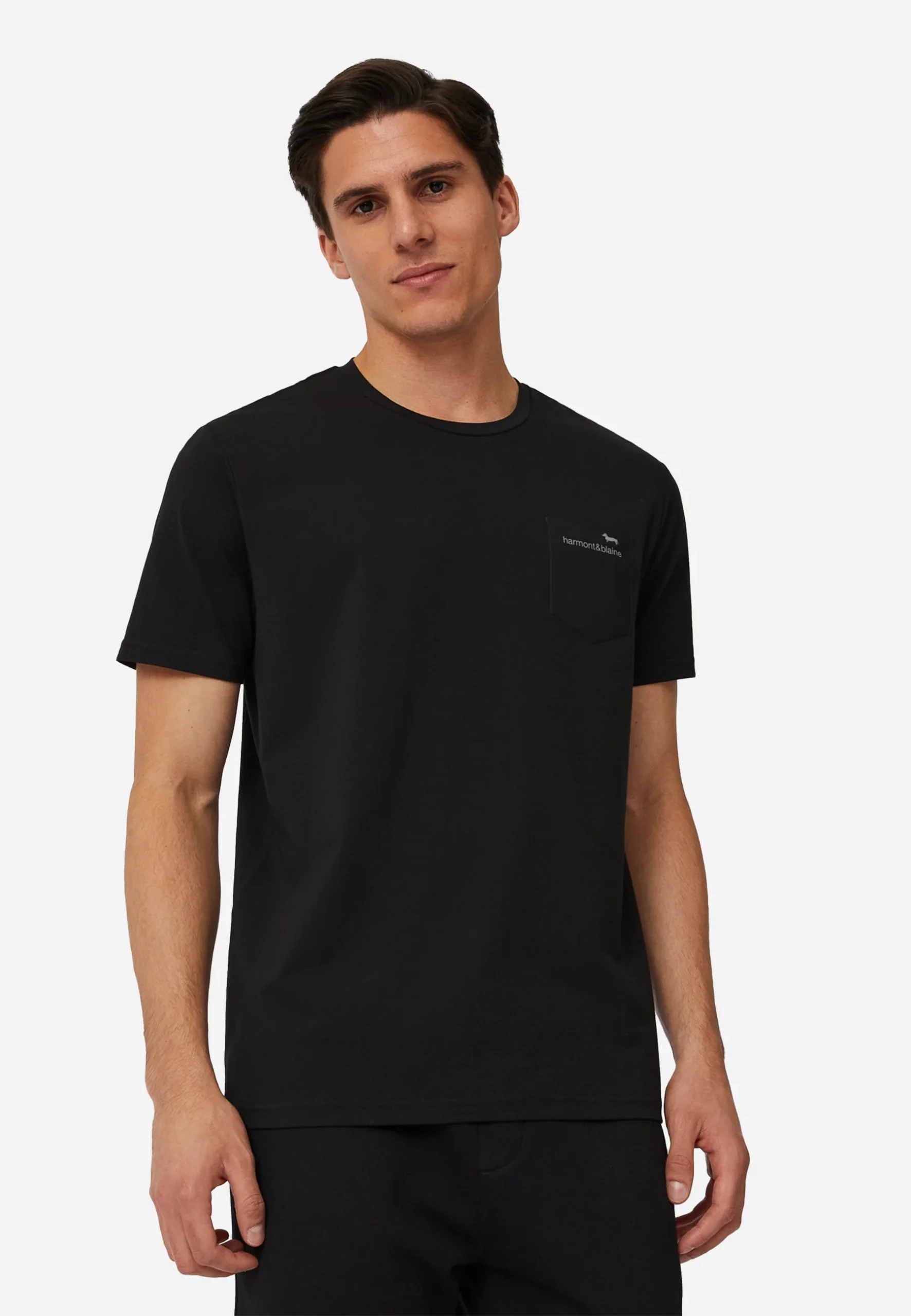 Camiseta de hombre en color negro, de manga corta y estilo minimalista. Incluye un práctico bolsillo en el pecho con un discreto detalle bordado, ideal para un look casual y versátil. Confeccionada en algodón suave para brindar comodidad durante todo el día, es perfecta para combinar con jeans, bermudas o pantalones deportivos.»
