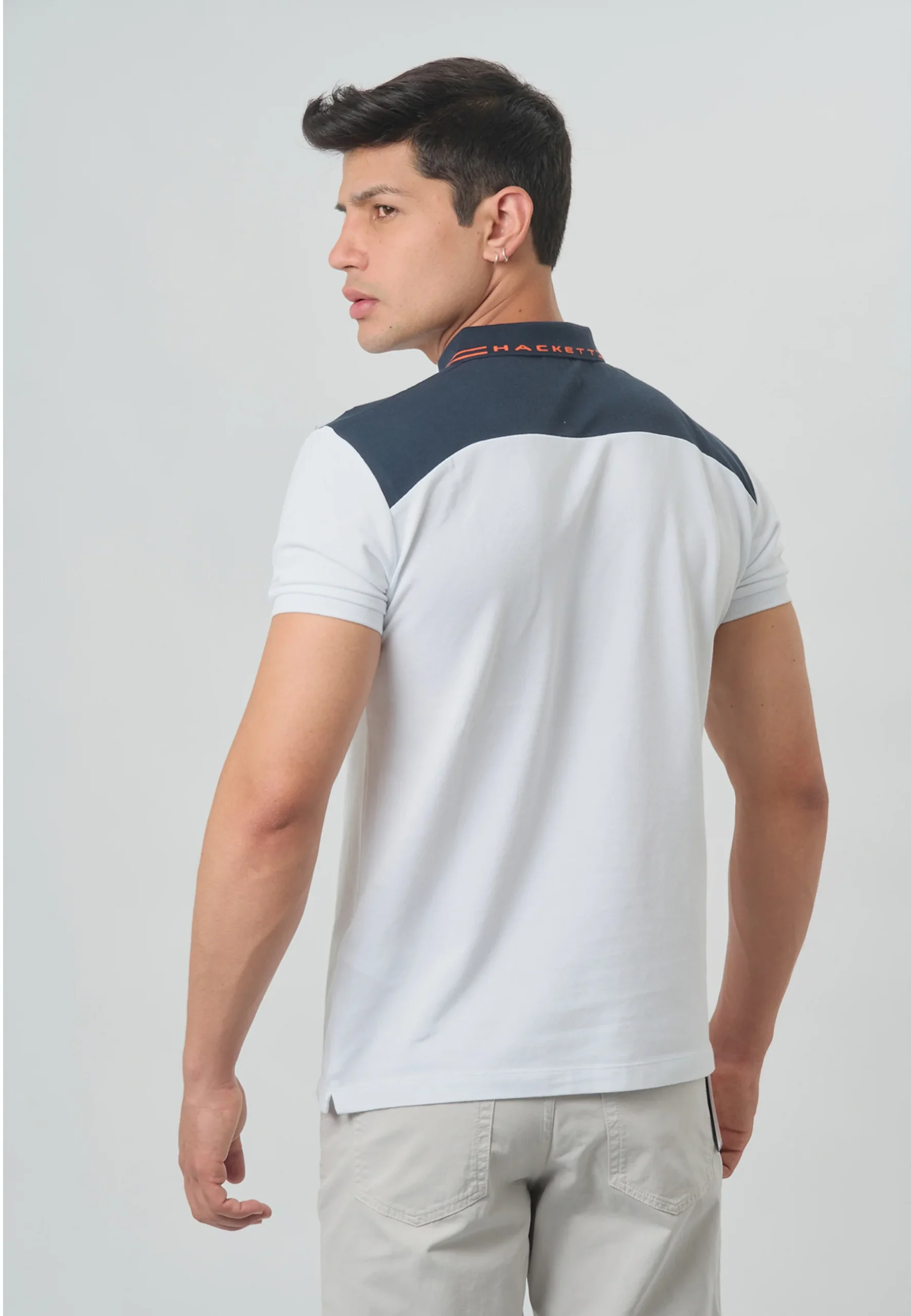Polo Hackett Aston Martin Racing Tech Tape – Blanco Una prenda icónica que fusiona elegancia británica y espíritu deportivo. Este polo de la línea Aston Martin Racing destaca por su diseño técnico y su impecable estética contemporánea. Materiales premium Confeccionado en una mezcla de 97% algodón y 3% elastano, ofrece una sensación suave, transpirable y con la elasticidad justa para garantizar comodidad durante todo el día. Diseño moderno y limpio