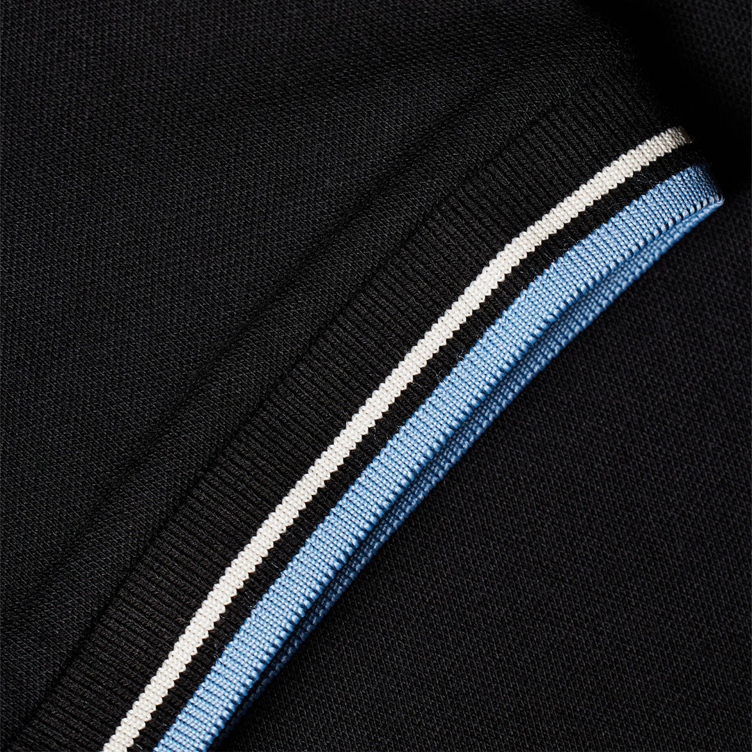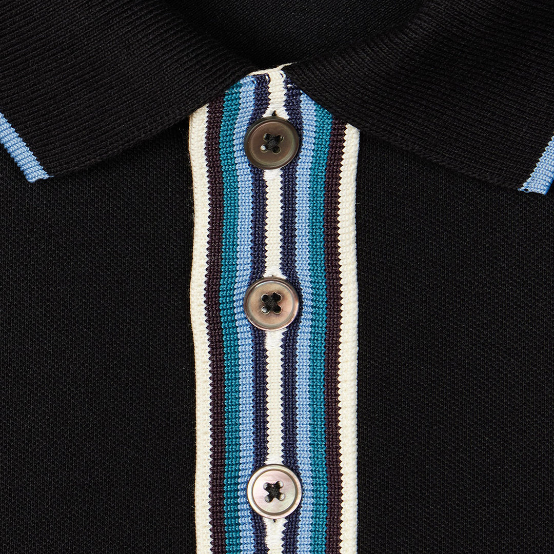 Camiseta polo negra con ribete de rayas distintivo de la marca PS Paul Smith.