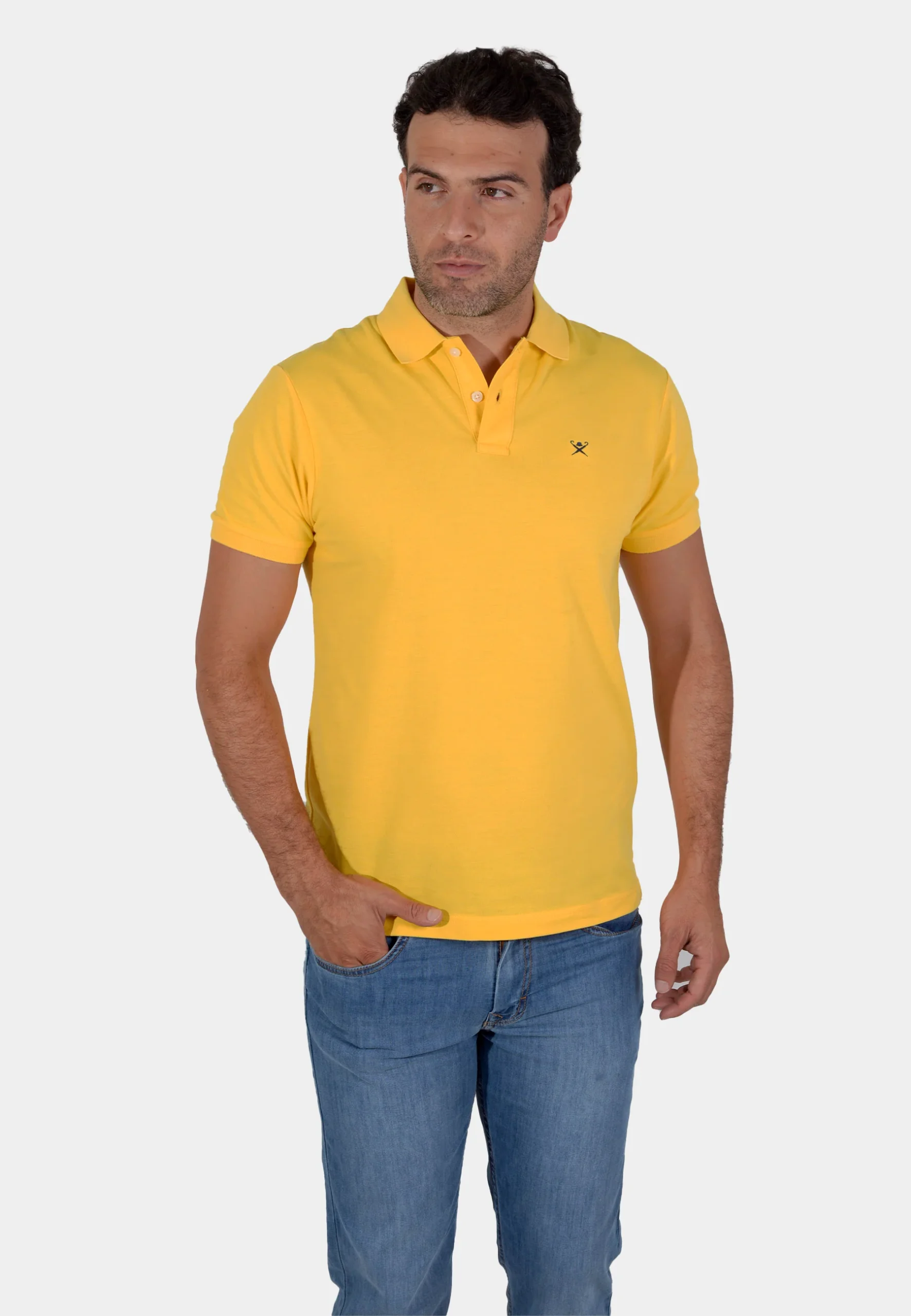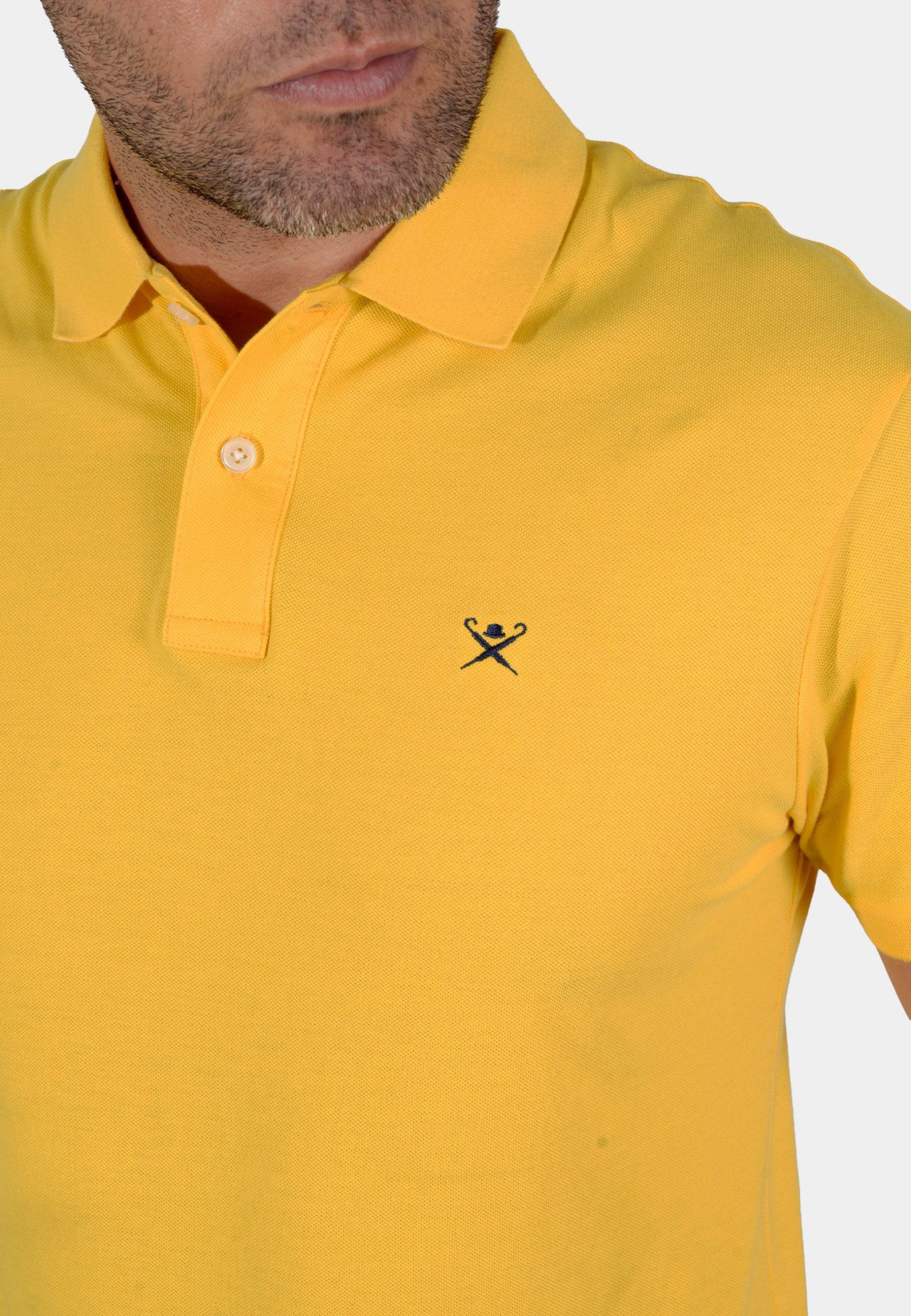 Polo de Piqué Hackett London en un llamativo color amarillo sol. Confeccionado en tejido de piqué 100% algodón, este polo asegura una transpirabilidad y comodidad óptimas para los días cálidos. Presenta un corte clásico que se ajusta perfectamente, cuello y puños acanalados, y una tapeta de dos botones. El sutil logo bordado en el pecho sella el sello de calidad y distinción de la marca. Es la prenda ideal para combinar con jeans, chinos o shorts, perfecta para el fin de semana, la cancha de tenis o el club.