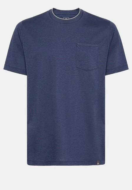 Camiseta Boggi El color azul marino es versáti en algodón de alta calidad, cómoda y transpirable. Ideal para uso diario, combina estilo y durabilidad en una prenda versátil. Confeccionada en un tejido suave y ligero, ofrece máxima comodidad y frescura en cualquier ocasión. Su diseño incluye cuello redondo, bolsillo en el pecho y costuras reforzadas para mayor durabilidad y fácil de combinar, perfecto para un look relajado o casual