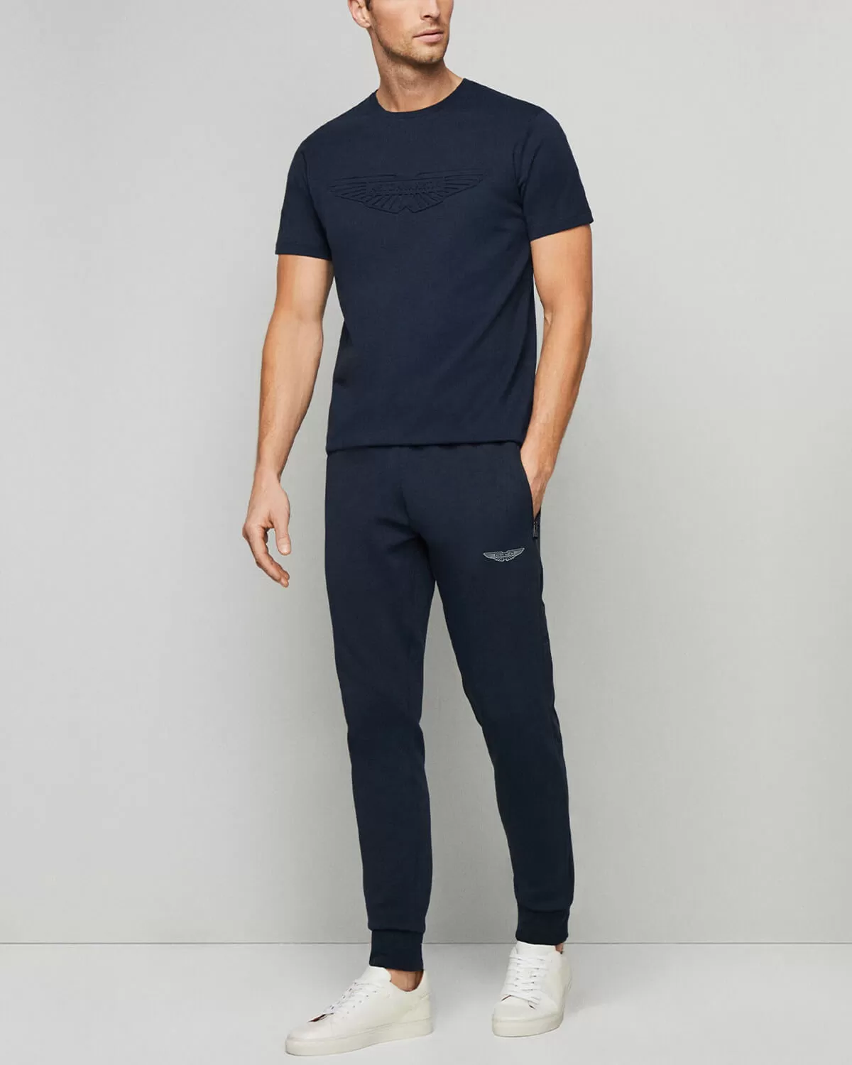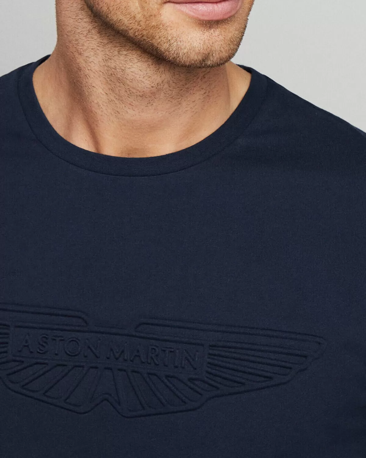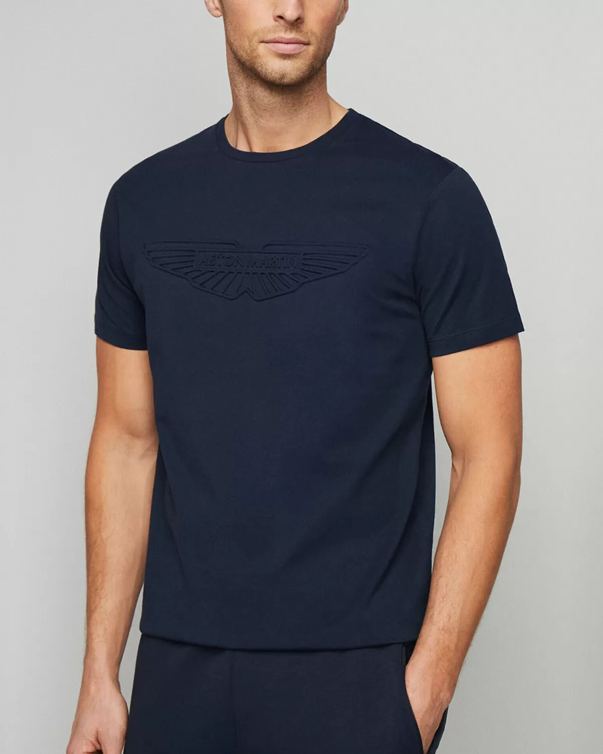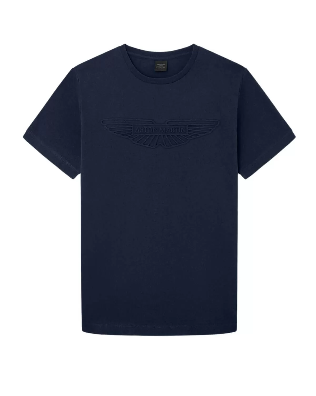 camiseta azul marino de manga corta, confeccionada con un tejido suave y de alta calidad que garantiza comodidad durante todo el día. El diseño destaca por su elegante logo tonal en relieve de unas alas, sutilmente posicionado en el pecho, que le da un toque sofisticado y minimalista. Su corte clásico la hace una prenda versátil, perfecta para combinar tanto con jeans como con pantalones deportivos, creando un look moderno y casual.
