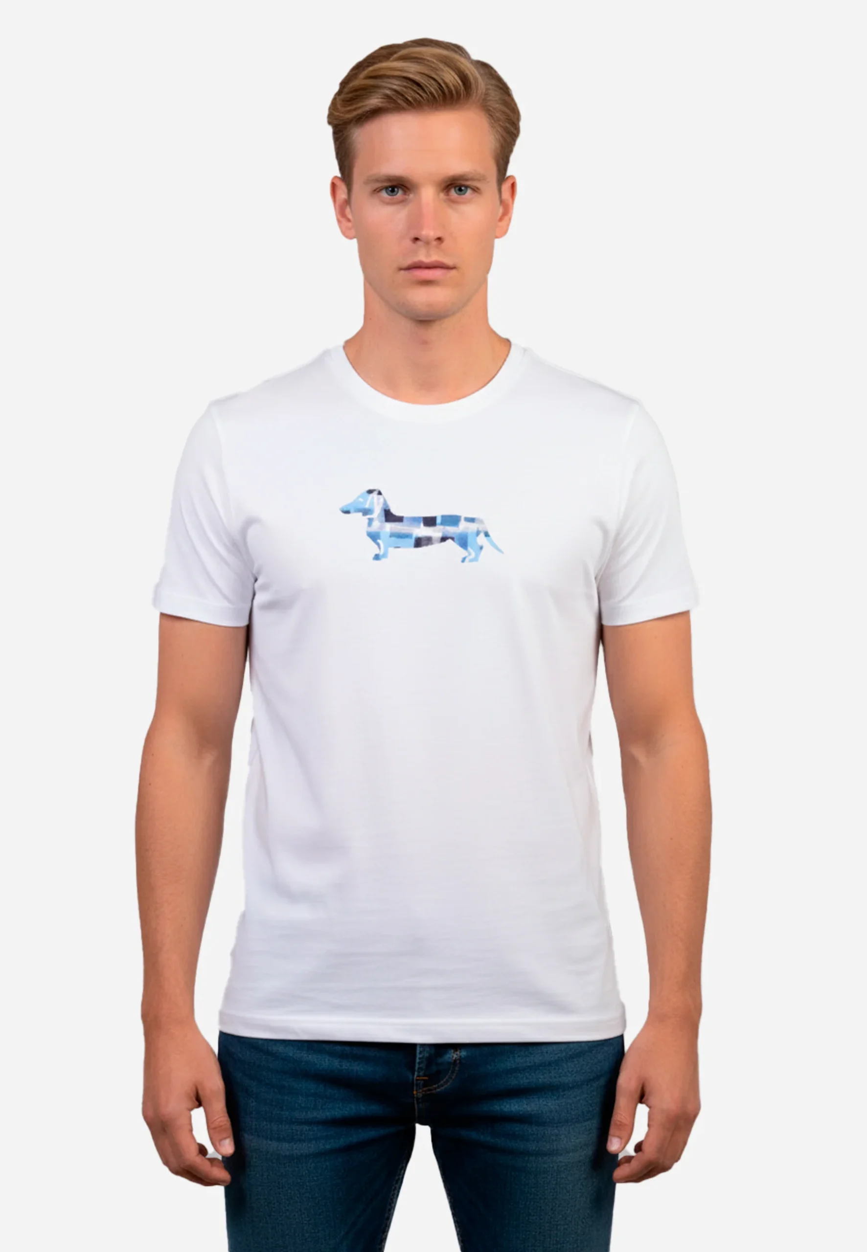 Camiseta para Hombre en Jersey de Algodón – Harmont & Blaine Una prenda esencial que combina la estética italiana con un diseño contemporáneo. Esta camiseta blanca ofrece un estilo limpio y versátil, realzado por un detalle distintivo que refleja la identidad de la Marca: Harmont & Blaine, reconocida por su icónico logotipo del perro salchicha (teckel), símbolo de elegancia casual con inspiración italiana. Color: Blanco puro, un tono fresco y atemporal que facilita combinaciones en cualquier estilo. Diseño: Camiseta de cuello redondo y manga corta con corte regular, proporcionando comodidad y libertad de movimiento sin perder estructura. Logotipo Distintivo: Presenta un maxi parche bordado del perro Blaine en el pecho, diseñado en un patrón de cuadros azul y blanco, otorgando carácter y un toque gráfico sofisticado. Material Premium: Confeccionada en jersey de puro algodón, seleccionado por su suavidad, transpirabilidad y resistencia, ideal para un uso diario cómodo y duradero.