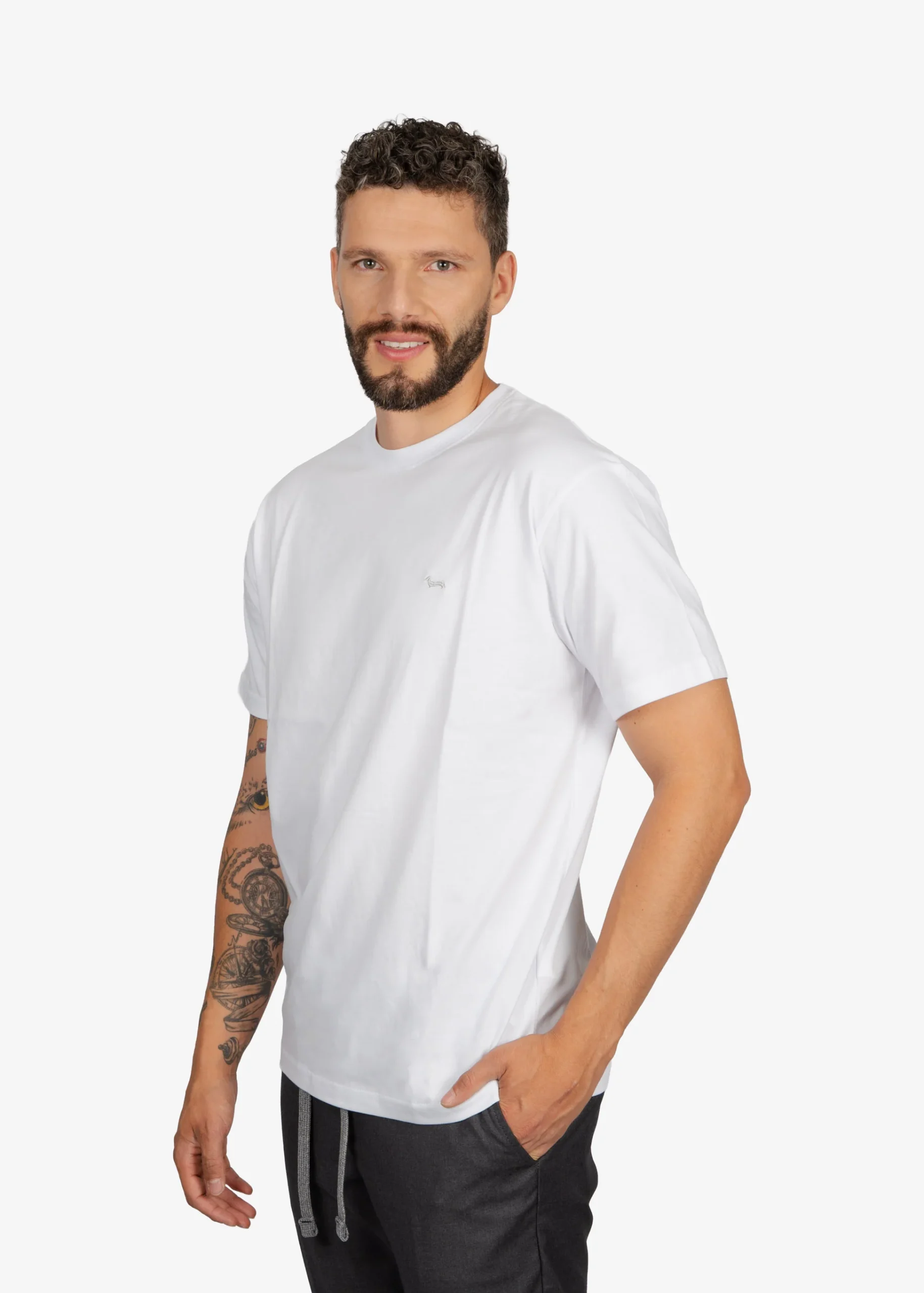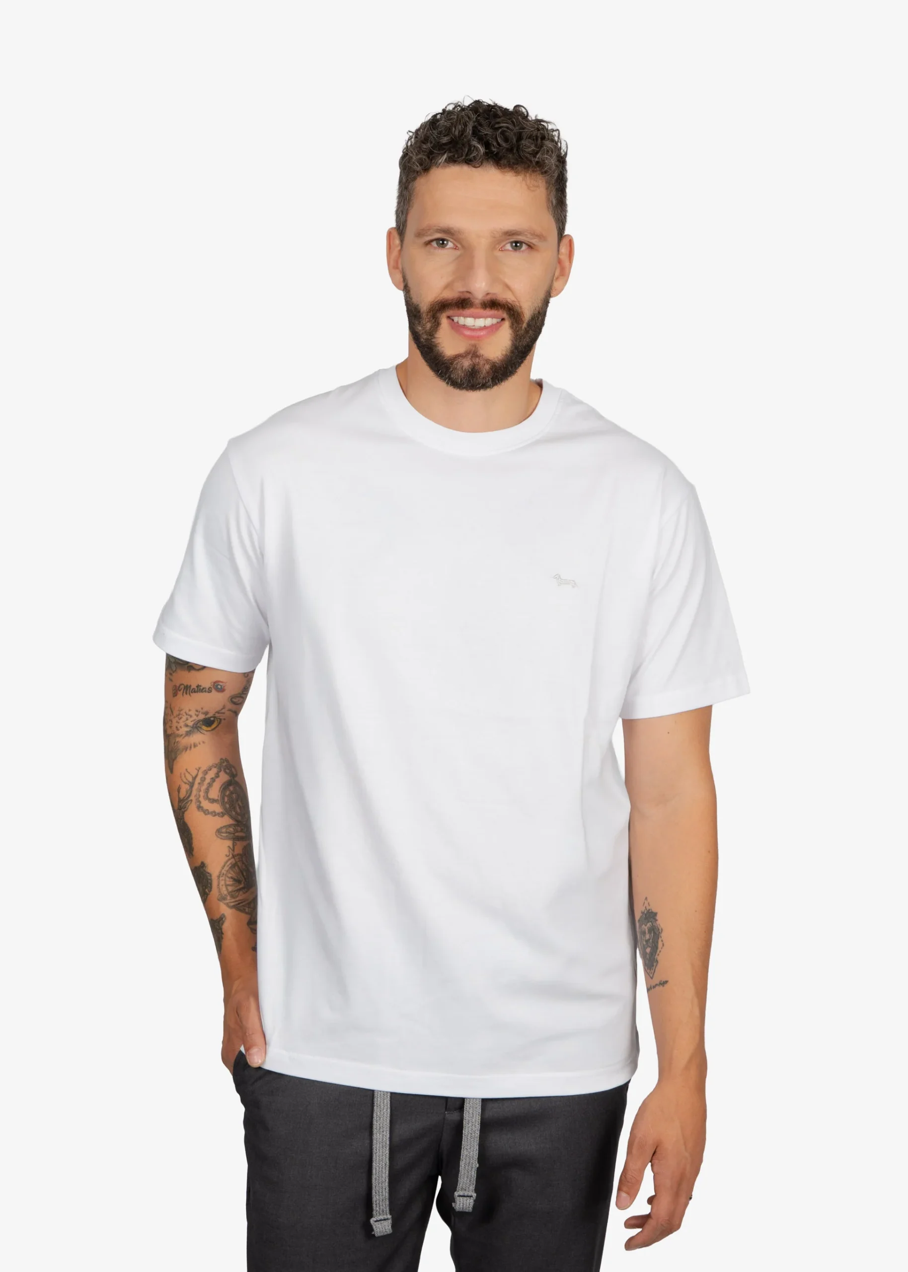 Esta camiseta blanca de algodón Harmont & Blaine es un esencial sofisticado para cualquier guardarropa. Confeccionada 100 % en algodón y con un corte regular, ofrece comodidad y un ajuste favorecedor para diversos estilos. El logo bordado del teckel en el pecho añade un detalle sutil que refleja la identidad italiana de la marca. Es una opción versátil para looks urbanos y casuales, ideal para complementar outfits clásicos con un toque elegante.