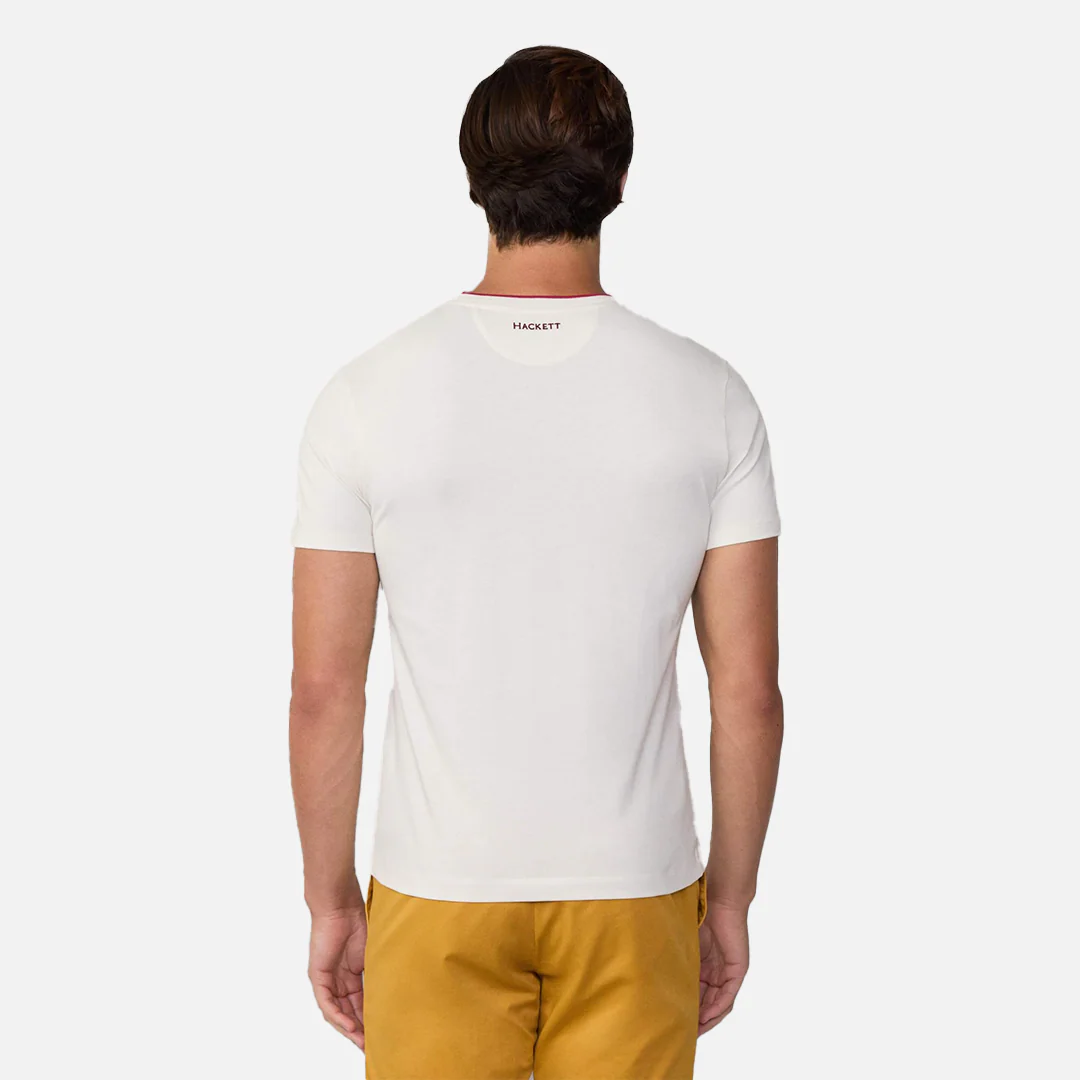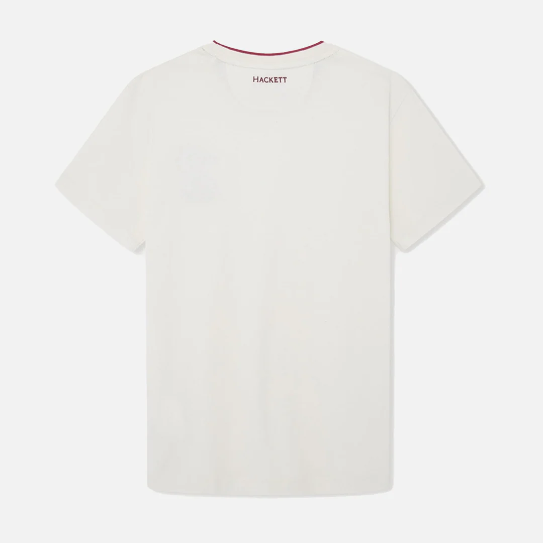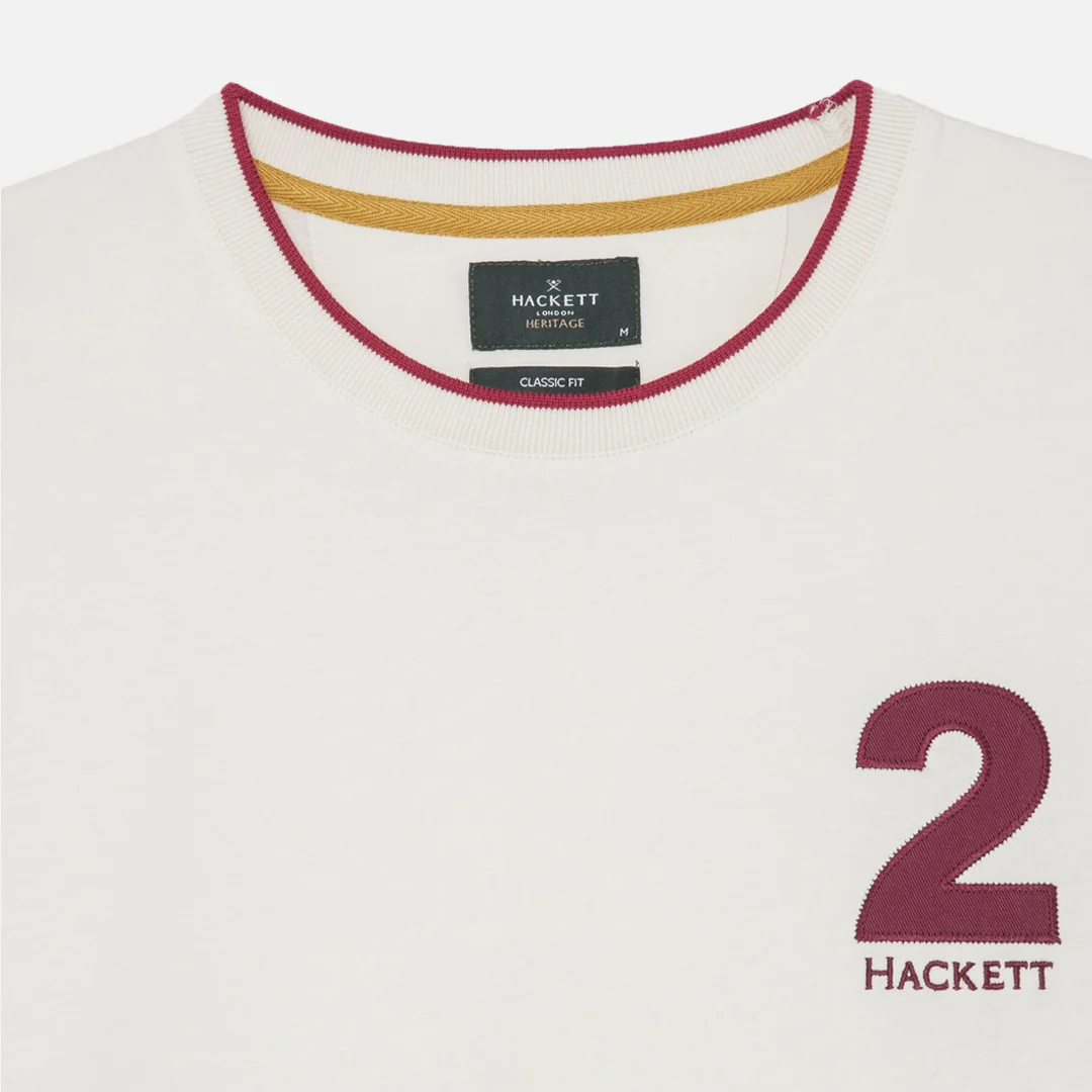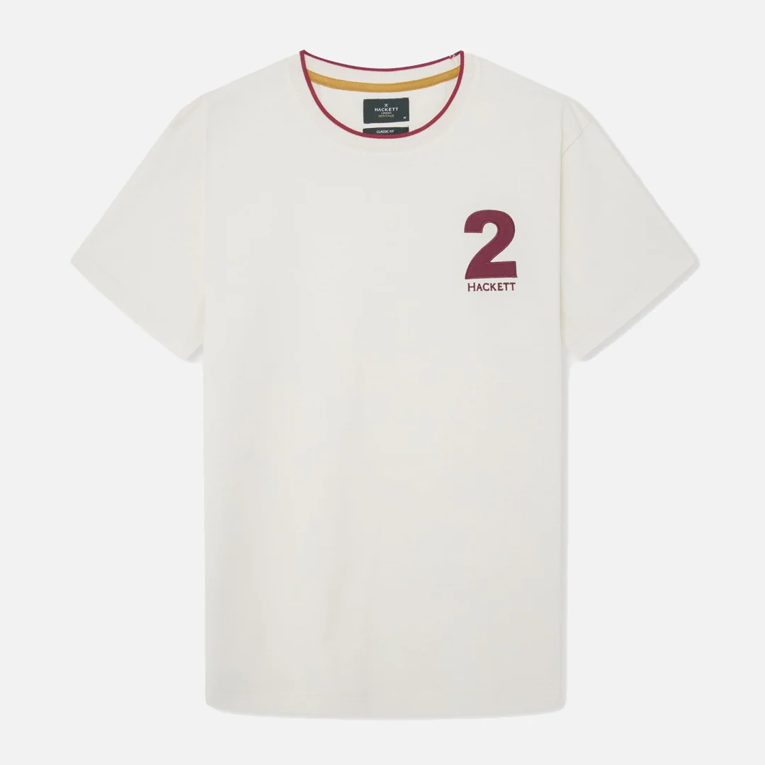 Camiseta t-shirt number 2 para hombre, color blanco con detalles Vinotinto Hackett London.