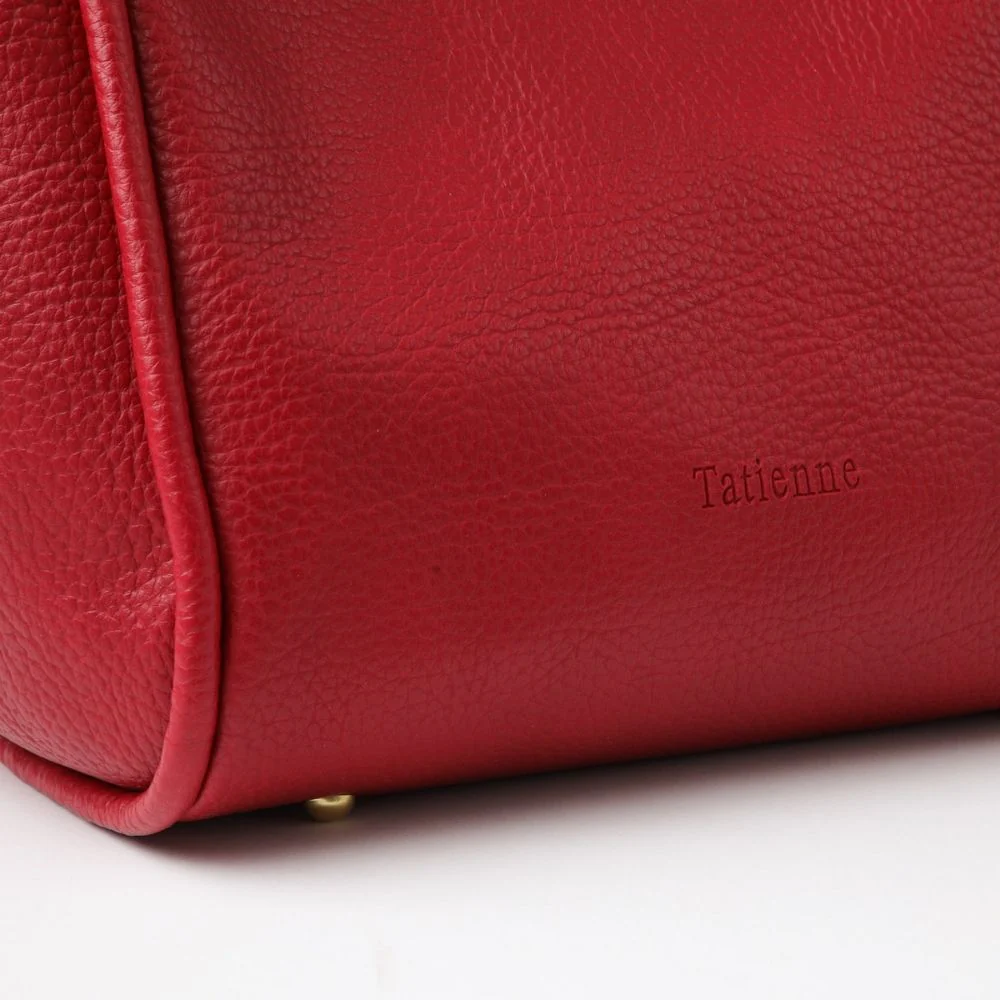 Cartera De Ecocuero Rojo Con Dos Asas Para Llevarla Como Cartera De Hombro. Lleva Iman Y En Su Interior Tiene Un Estuche Desmontable Que En Su Interior Tiene Un Bolsillo Con Cierre Y Dos Abiertos. El Snap, Tiradores Y Logo Son De Metal Dorado.
