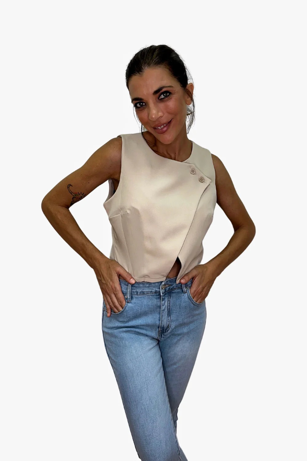 Chaleco boton superior Beige
