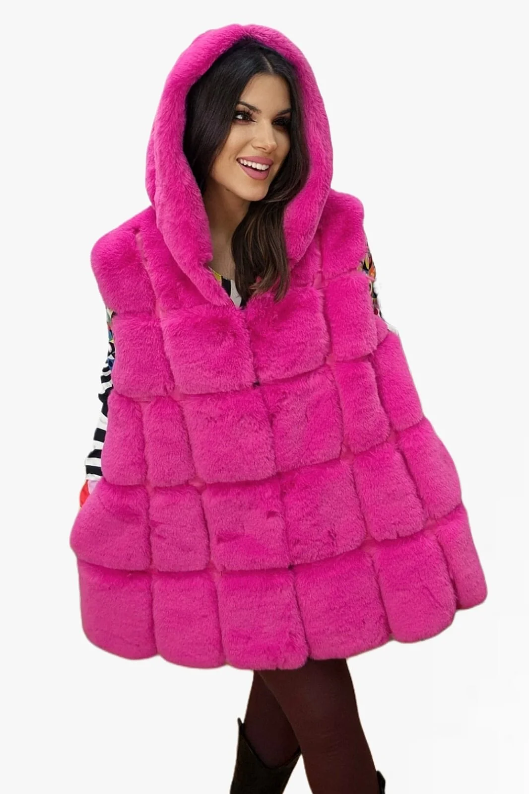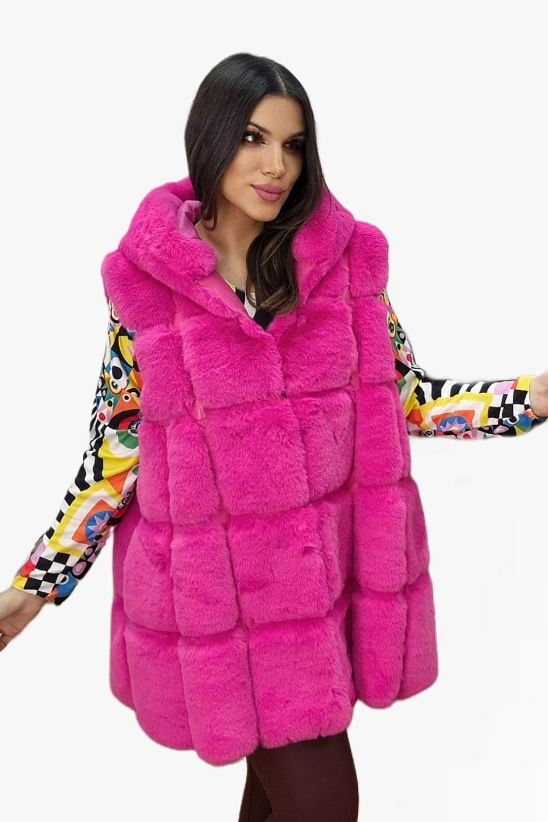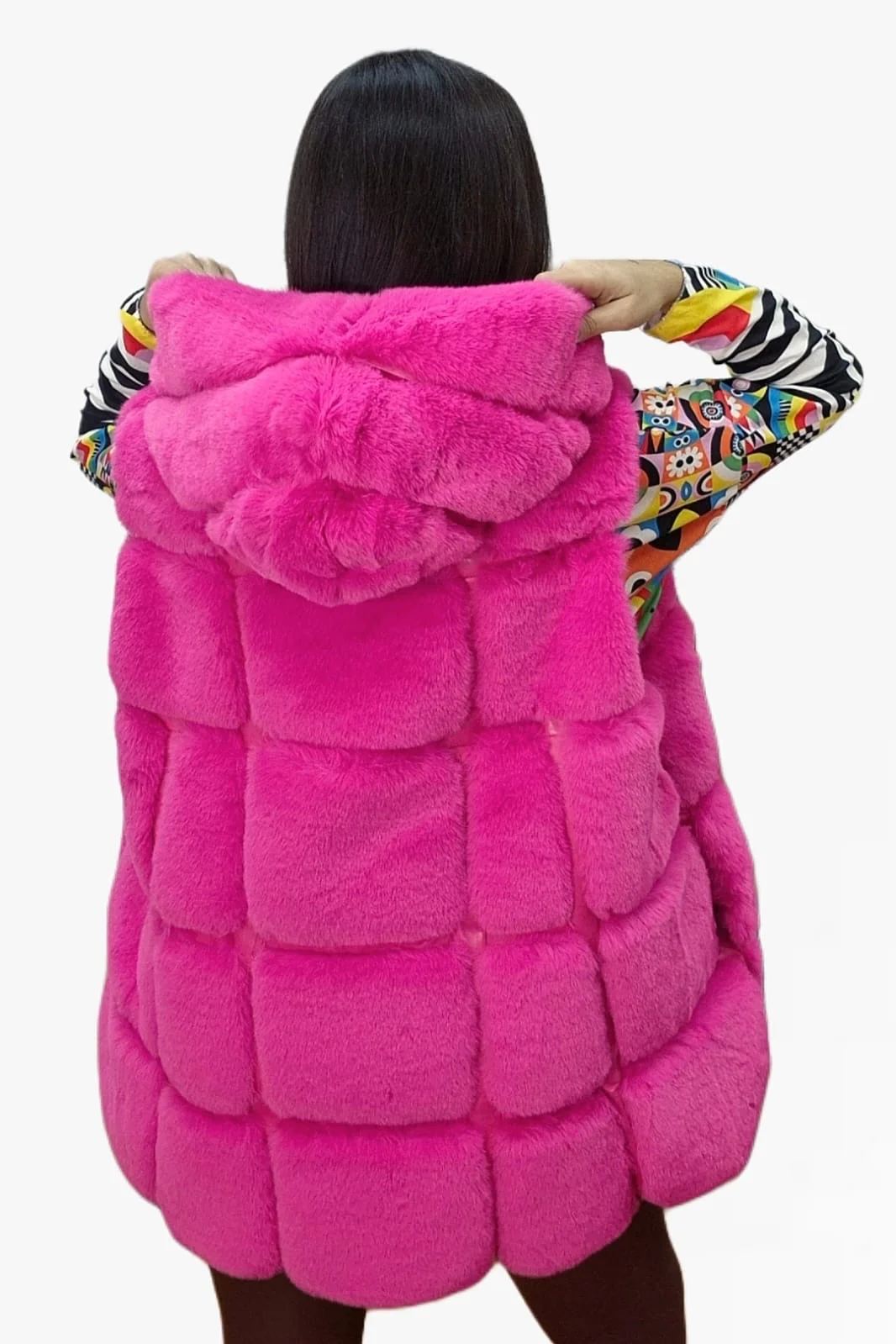 Chaleco Peluche Capucha Fucsia