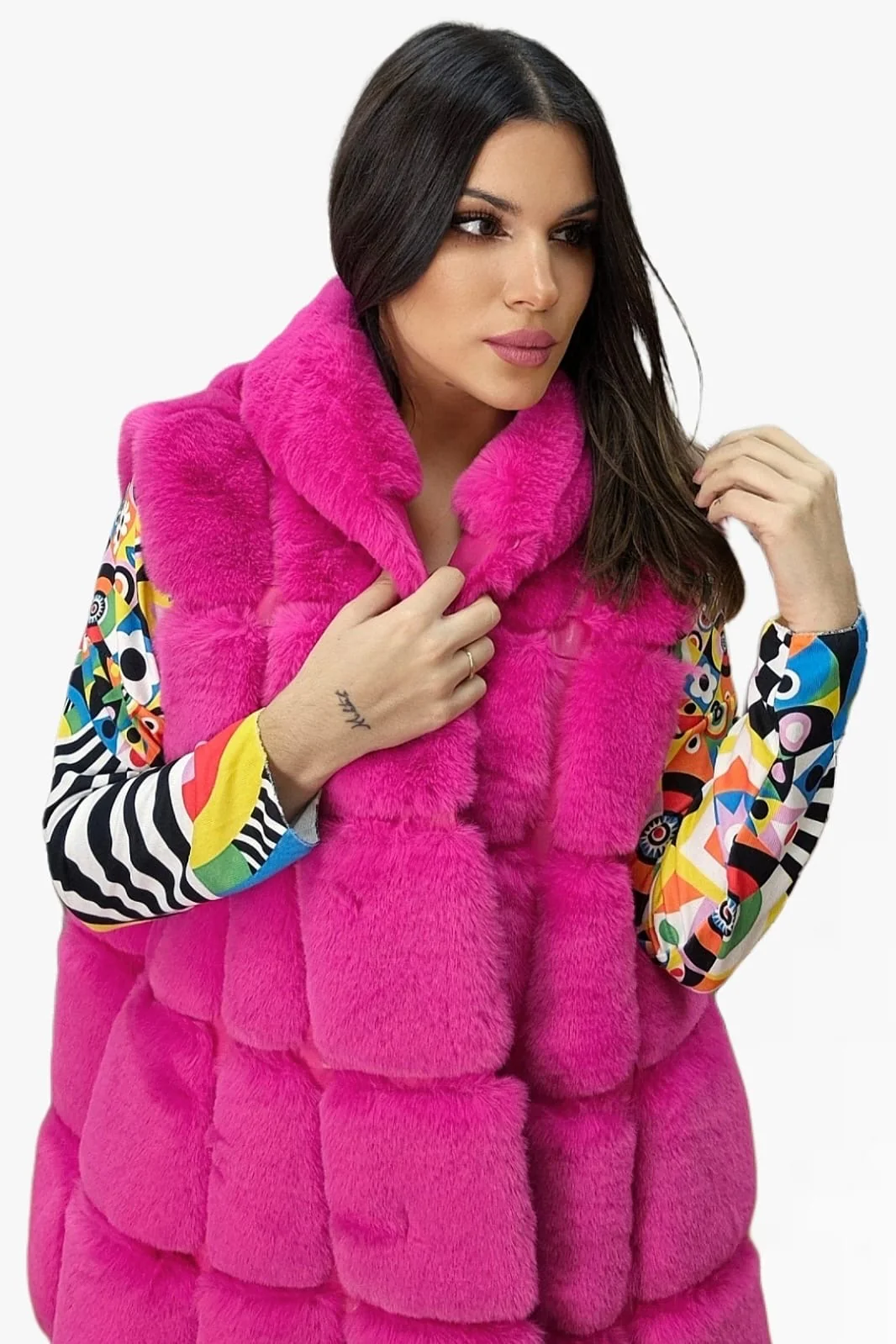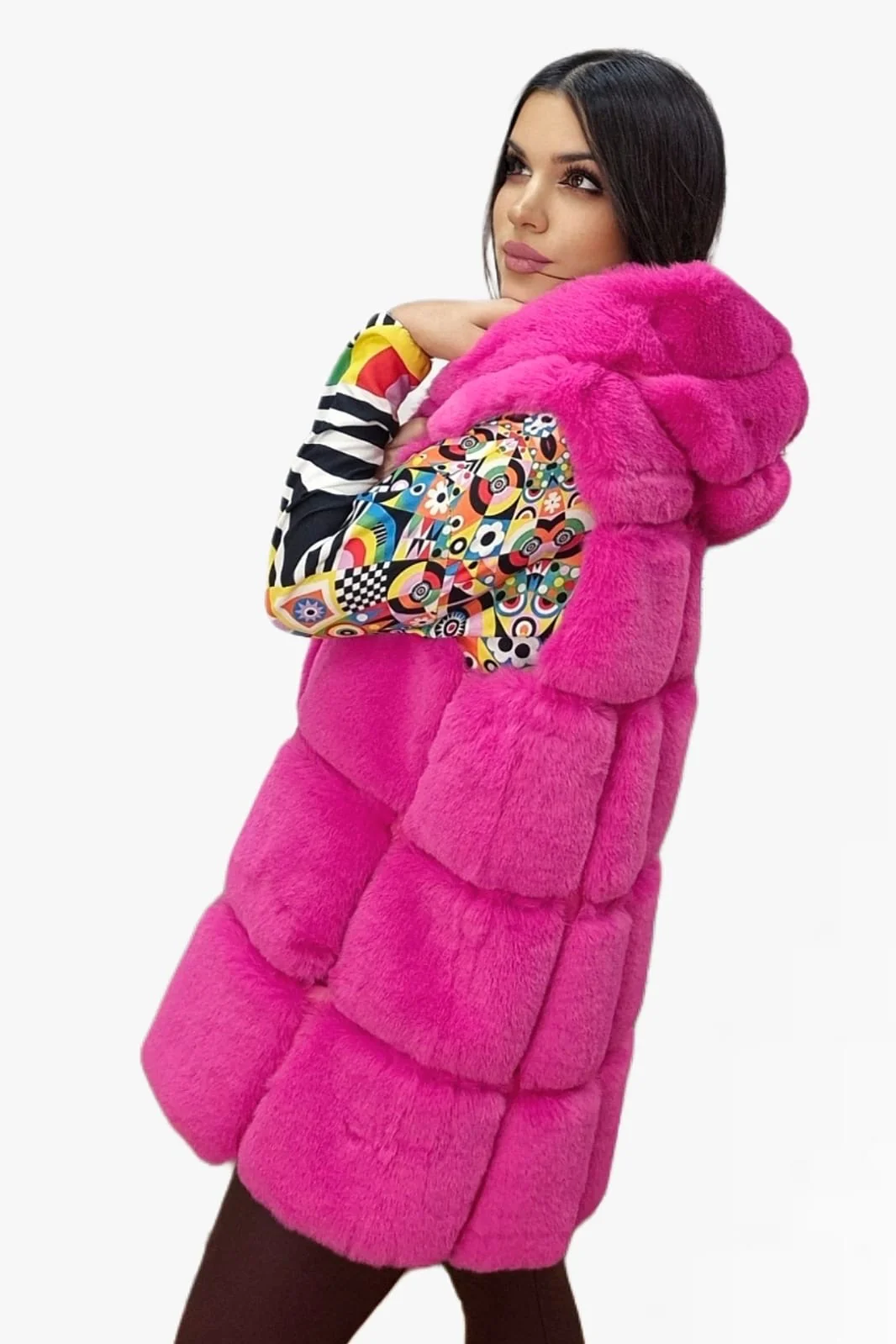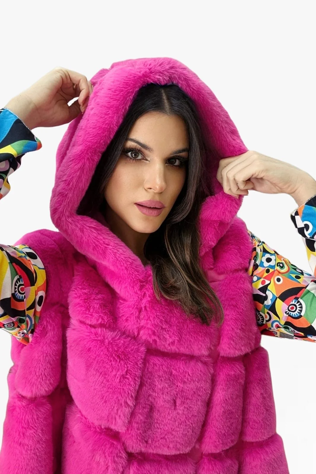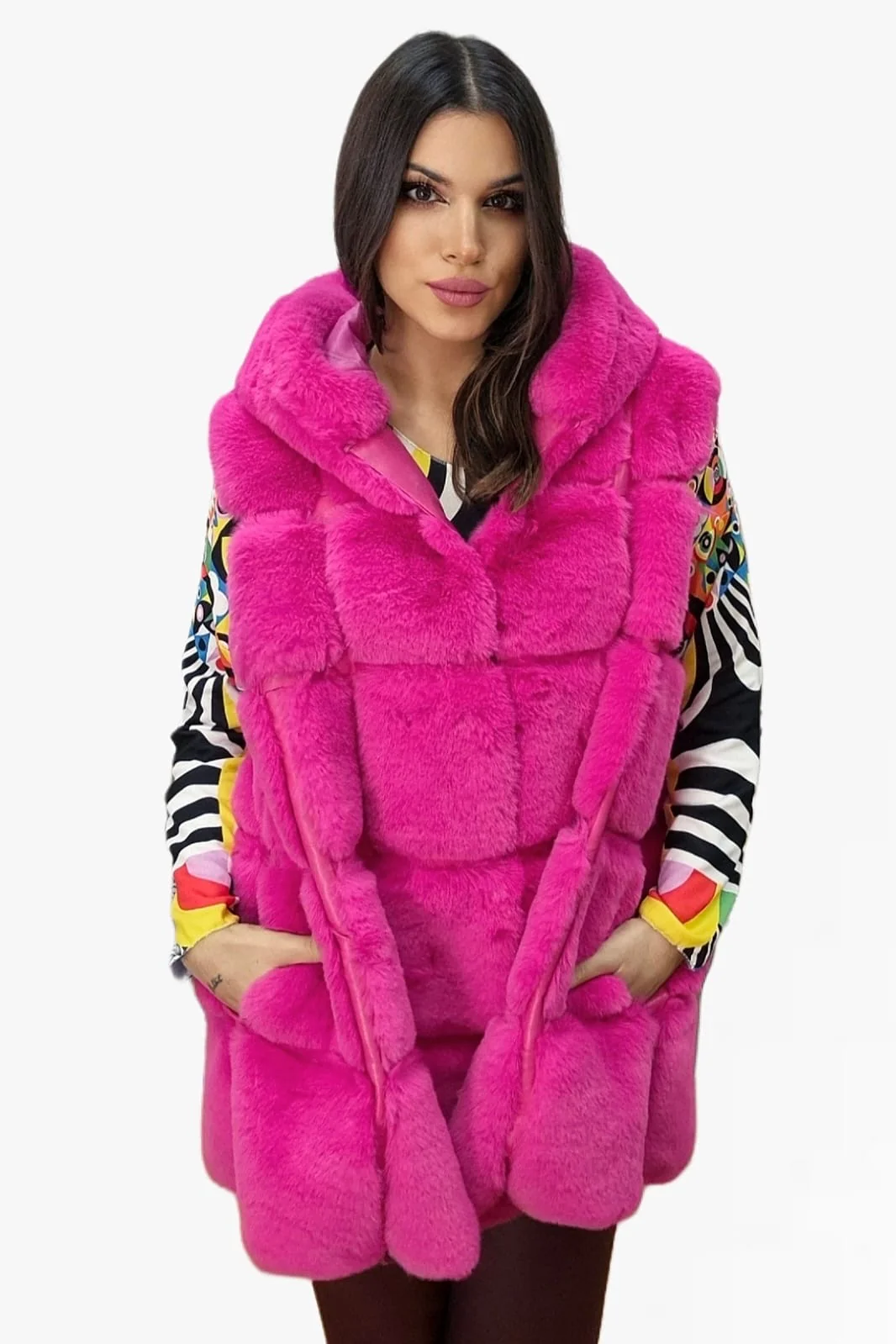 Chaleco Peluche Capucha Fucsia