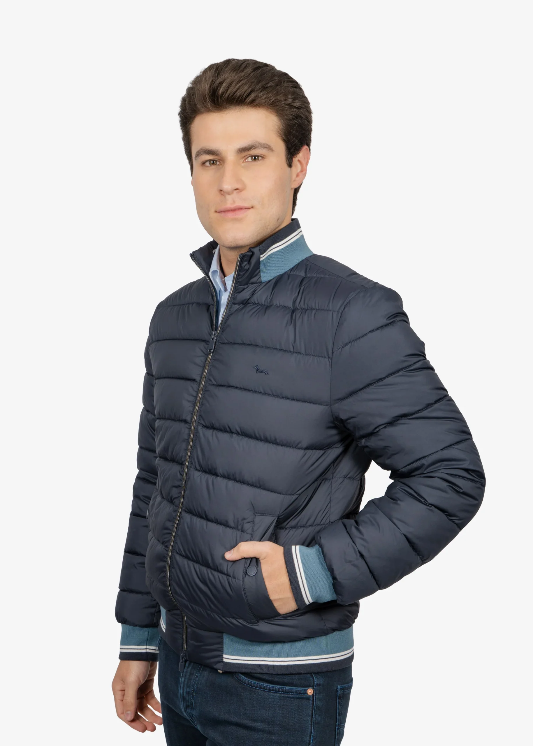 Chaqueta es la capa perfecta para los días de clima impredecible, combinando un diseño funcional y deportivo con un estilo casual y pulcro.Confeccionada en un tejido técnico ligero y resistente (posiblemente un nylon o poliéster de mezcla), ofrece protección contra el viento y lloviznas ligeras. Su color gris melange o gris jaspeado la hace muy versátil y fácil de combinar.El diseño presenta una capucha ajustable, un cuello alto, y un distintivo cierre de media cremallera (half-zip) en lugar de una cremallera completa, lo que le da un toque moderno de anorak. Los puños y el bajo son elásticos para asegurar un ajuste cómodo y mantener el calor.