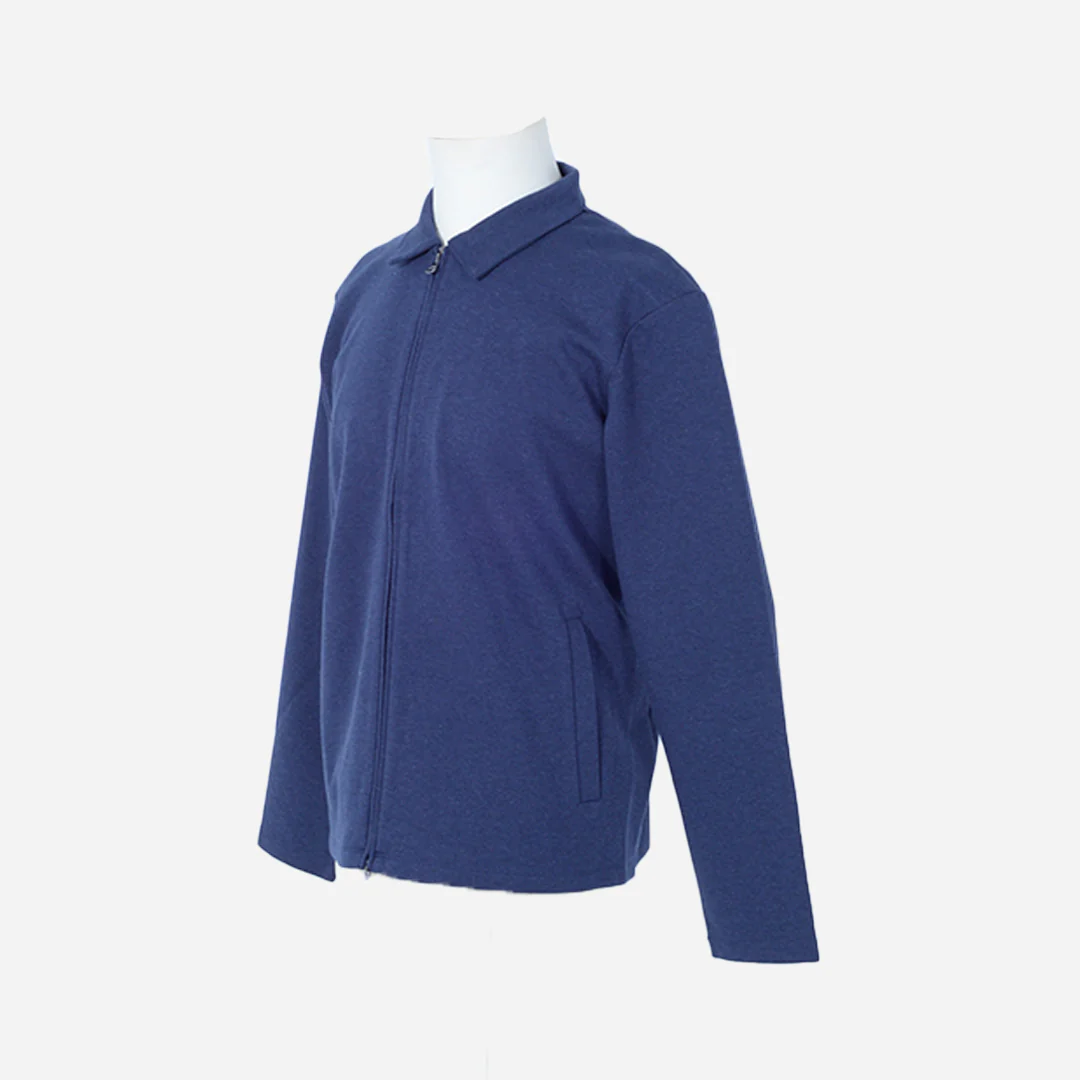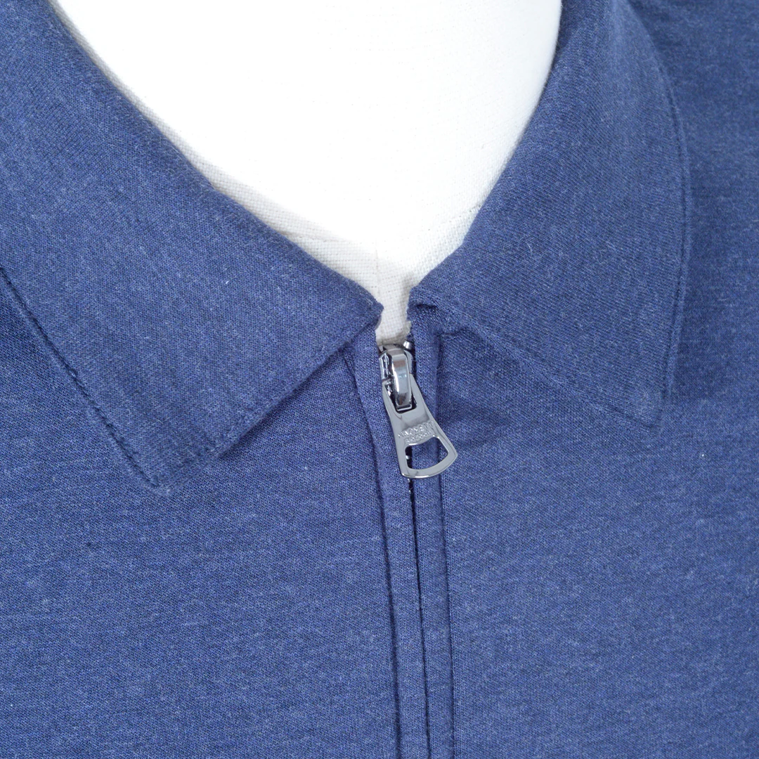 Chaqueta Hackett London se puede describir como una prenda de punto, con un cuello tipo polo y una cremallera frontal completa. Su diseño es casual y versátil, ideal para usar tanto sobre una camisa como una camiseta. El color azul marino le da un toque clásico y elegante. La textura de la tela es de punto, lo que sugiere comodidad y calidez.
