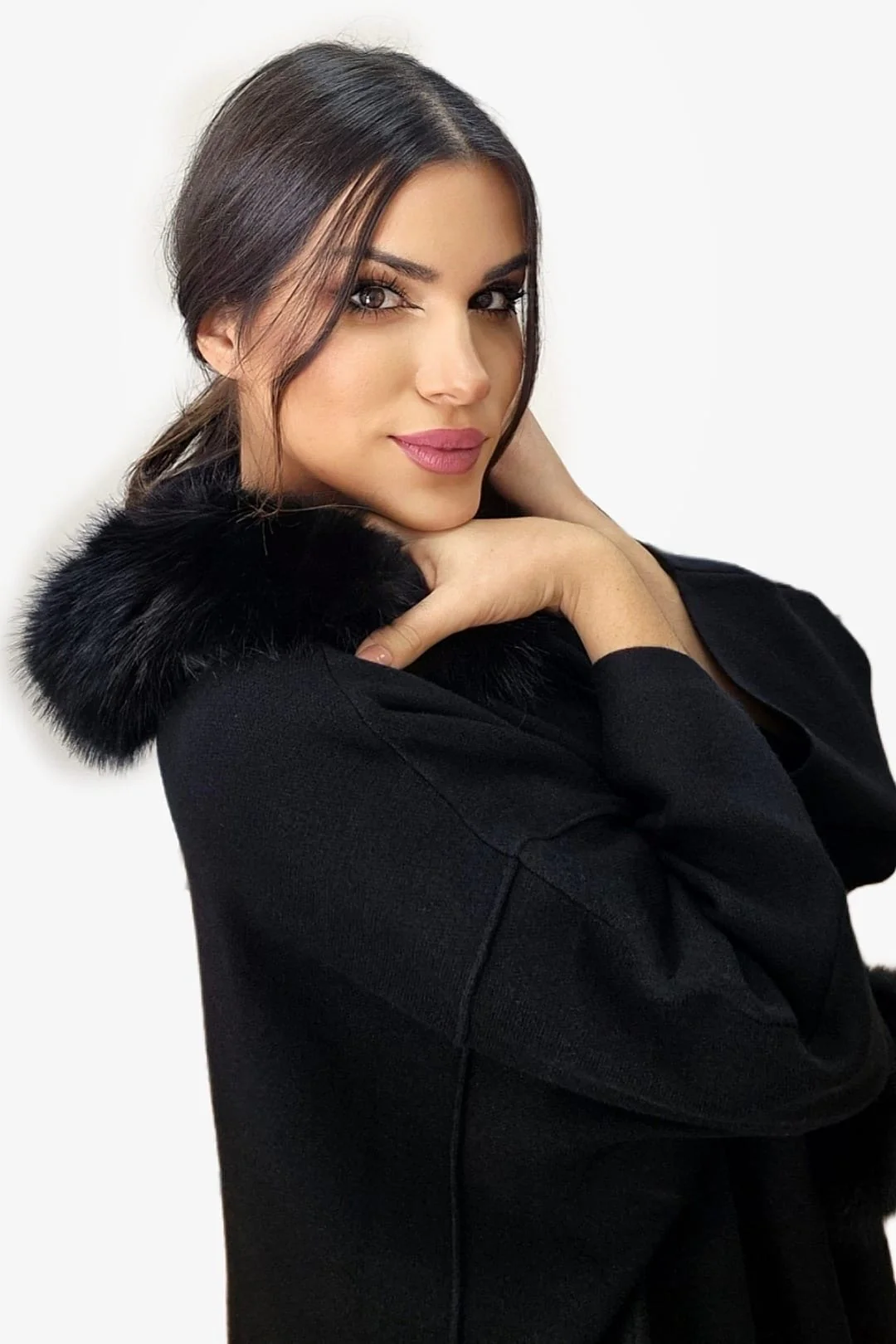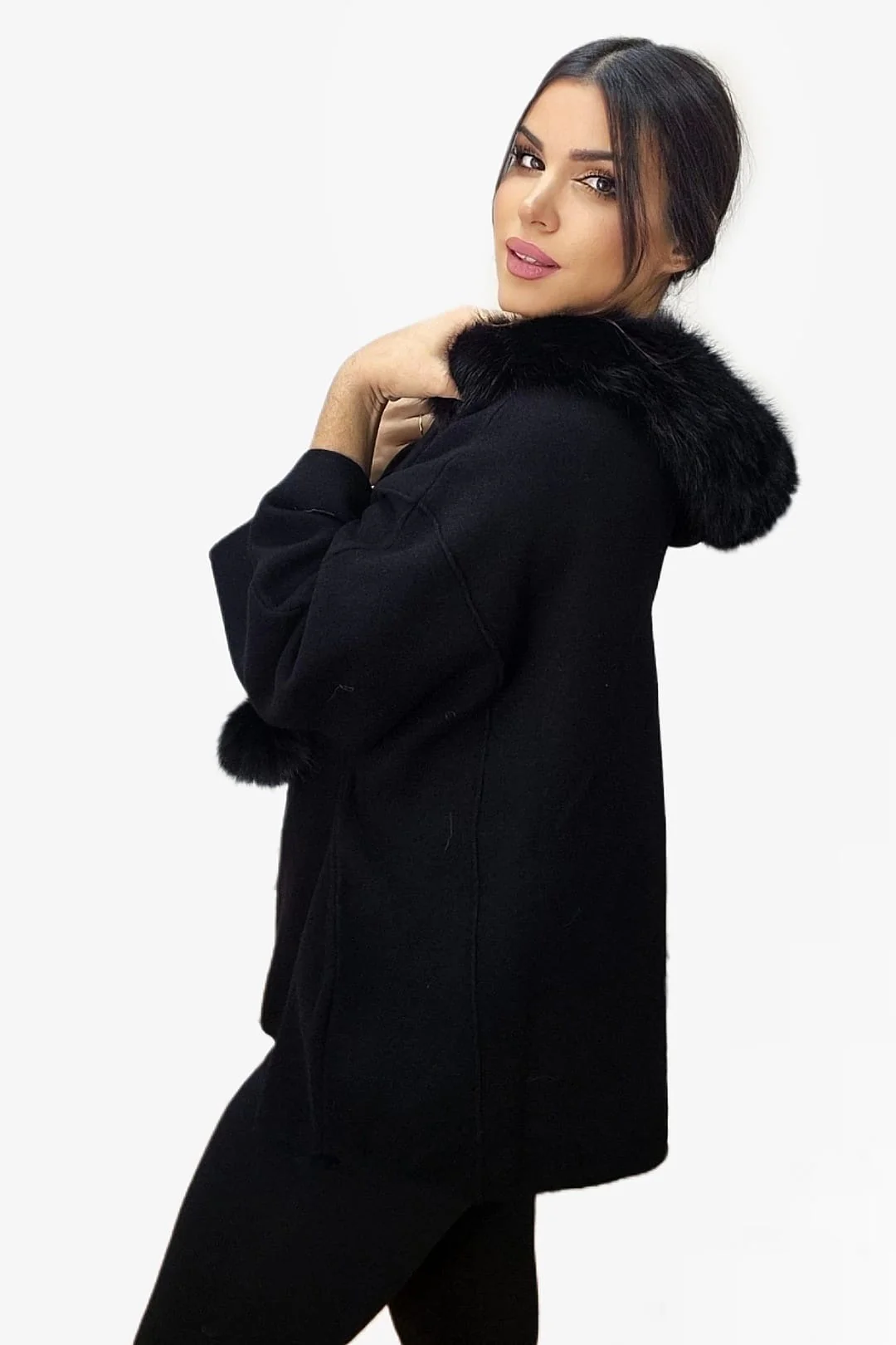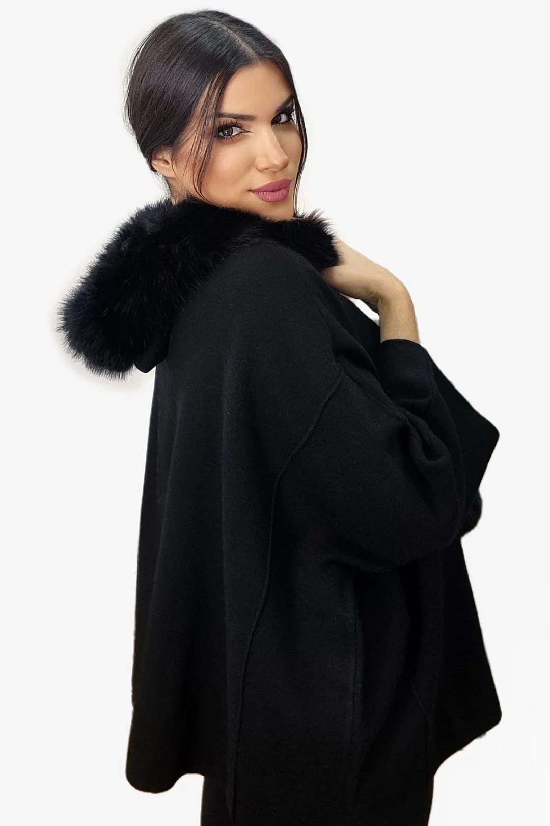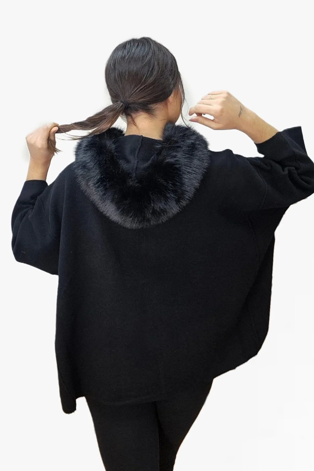 Una chaqueta envolvente y súper estilosa, diseñada para aportar abrigo sin renunciar al encanto. Su capucha con borde de pelito suave y pompones aporta un toque coqueto y femenino, convirtiéndola en la prenda perfecta para los días más fríos.