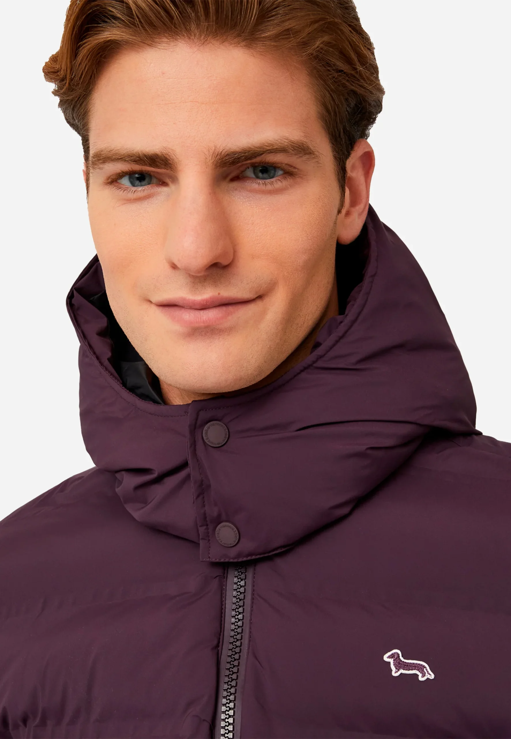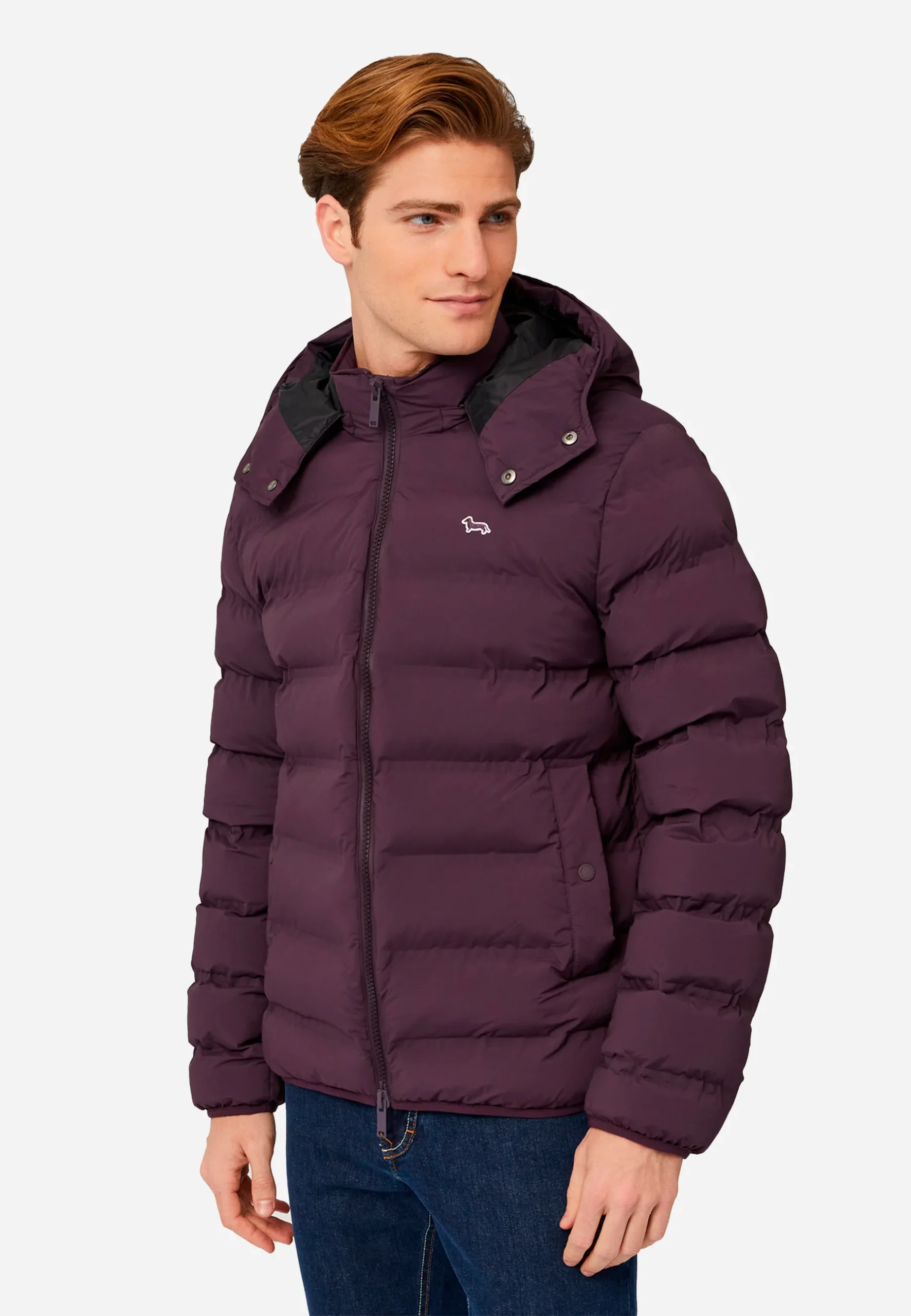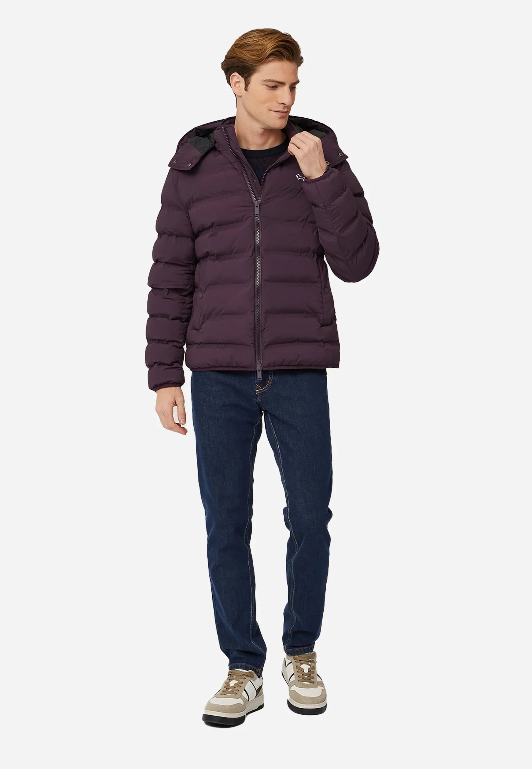 Chaqueta acolchada para hombre en color morado profundo, ideal para protegerte del frío sin perder estilo. Fabricada en material ligero y resistente, ofrece aislamiento térmico de alta calidad. Incluye capucha ajustable y desmontable, cierre de cremallera completo y bolsillos laterales funcionales. Su diseño moderno y versátil la convierte en una excelente elección para invierno o actividades al aire libre.»