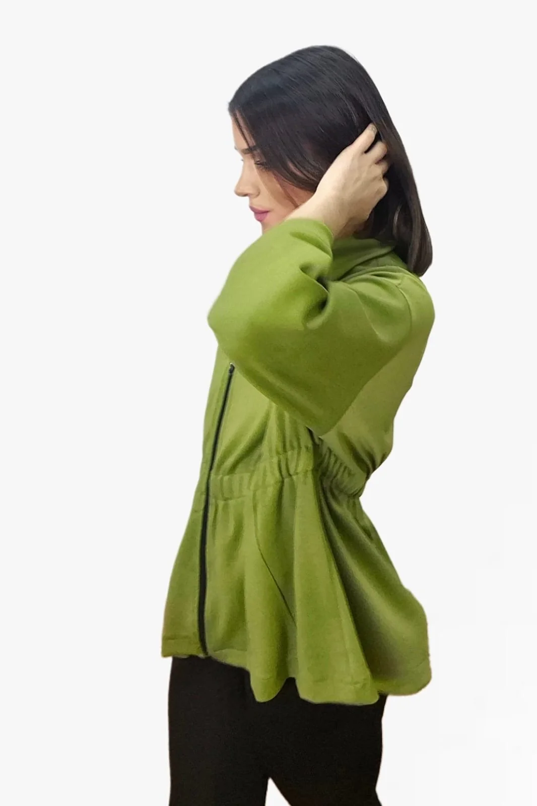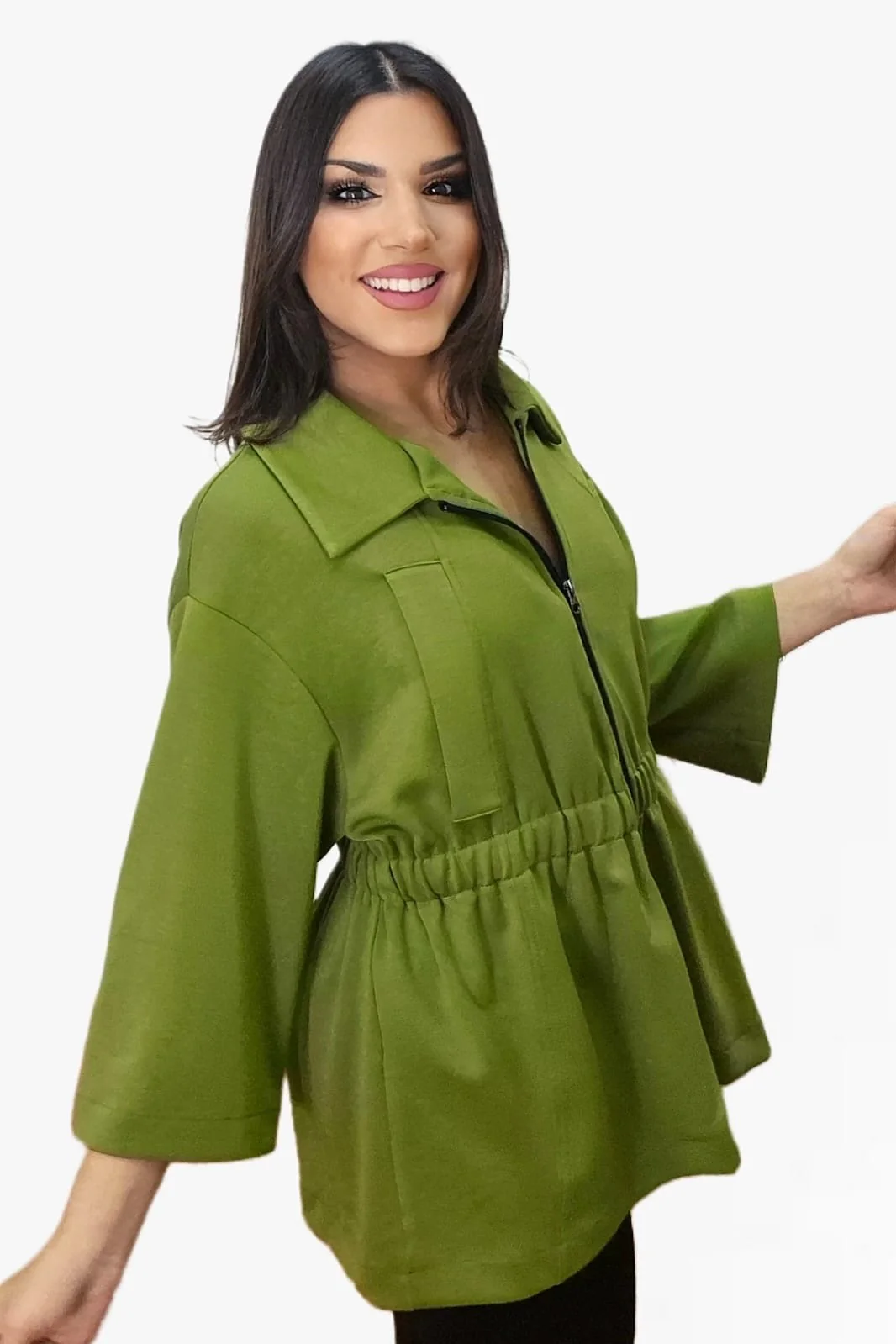Chaqueta oversize con manga tres cuartos y cremallera