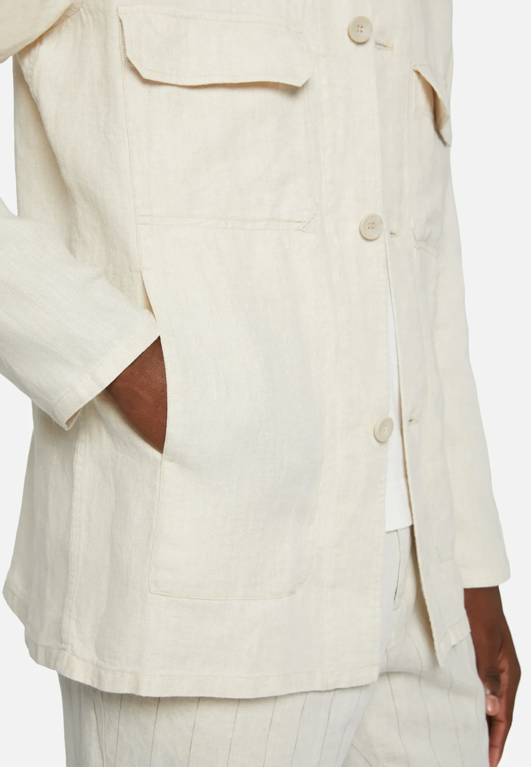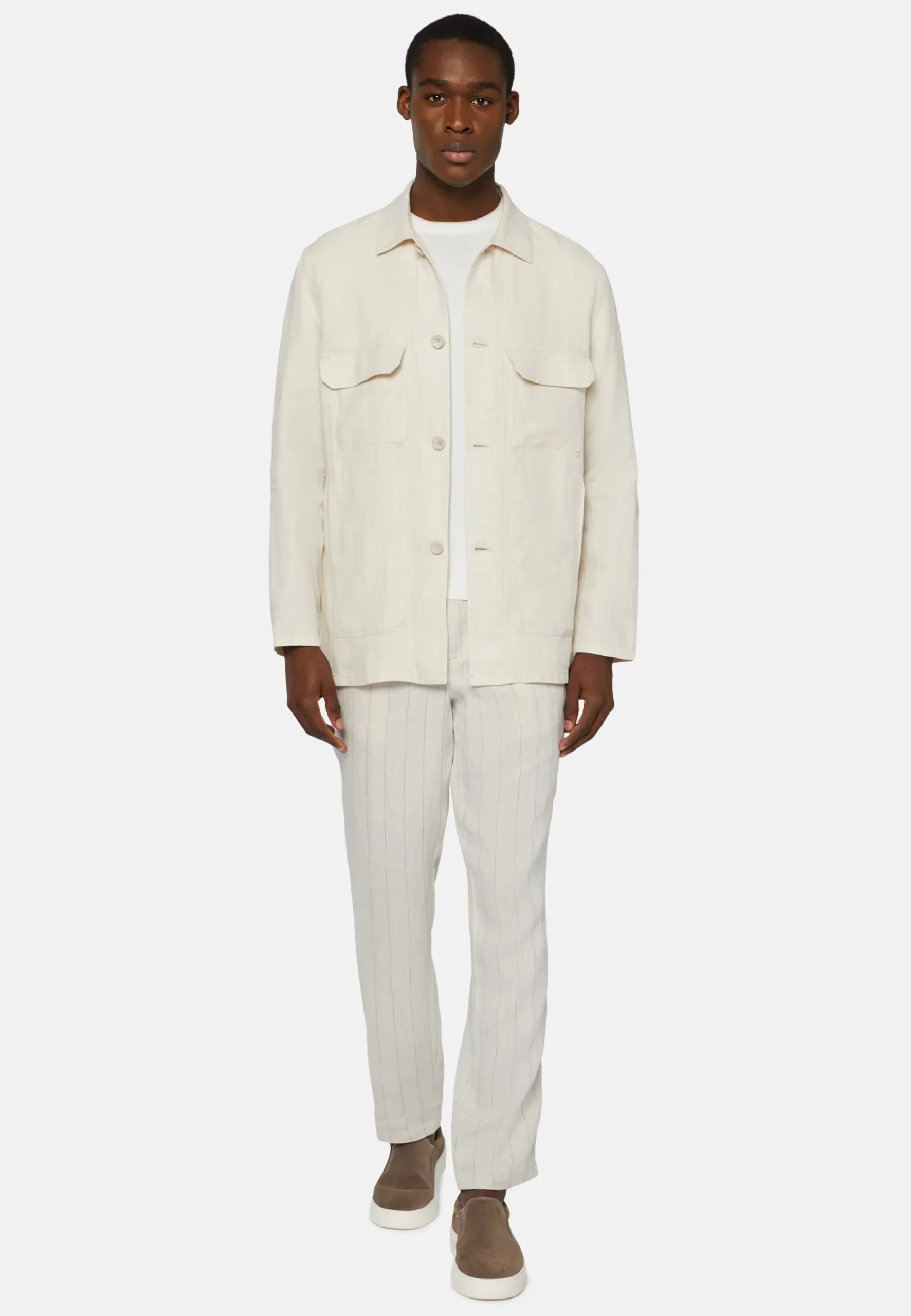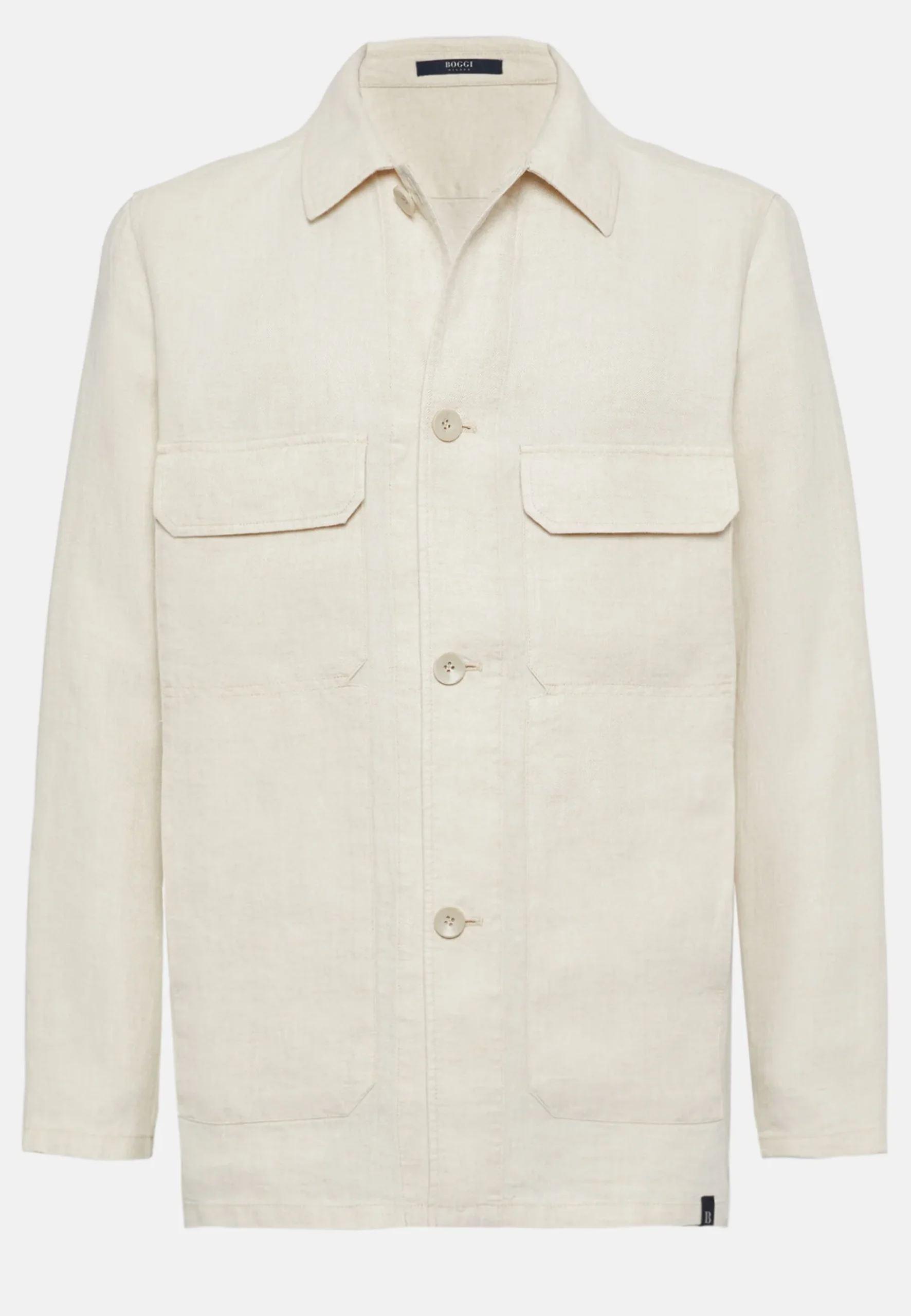 Chaqueta blanco , destaca por su rica textura tejida mezcla de lino, Diseñada con el impecable saber hacer de Boggi, cuenta con detalles utilitarios refinados, como sus bolsillos de parche frontales y un cuello clásico. Es la pieza perfecta para llevar como chaqueta ligera en verano o como camisa exterior en primavera. Su tejido ligero y transpirable te garantiza sofisticación y comodidad en climas cálidos.