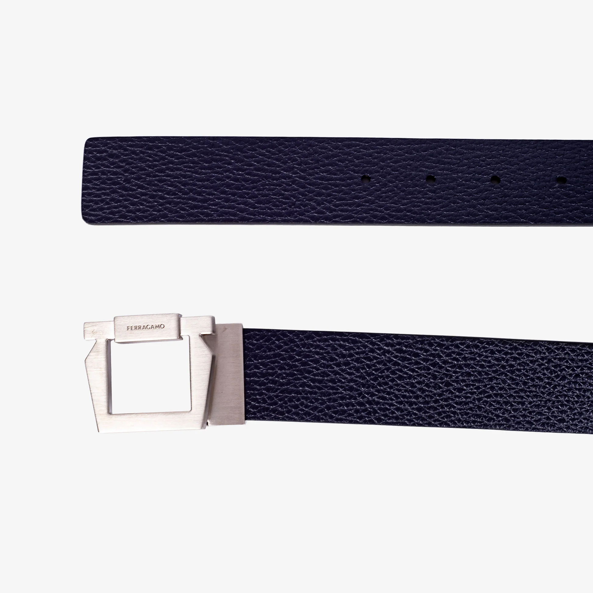 El cinturón Ferragamo Azul / Negro, elaborado en cuero italiano de primera calidad, combina elegancia y funcionalidad. Su diseño reversible facilita la adaptación a diferentes estilos, desde el más formal hasta el casual. La hebilla con el emblemático logo Ferragamo destaca la exclusividad y sofisticación de esta pieza, perfecta para quienes buscan un accesorio versátil y distinguido.
