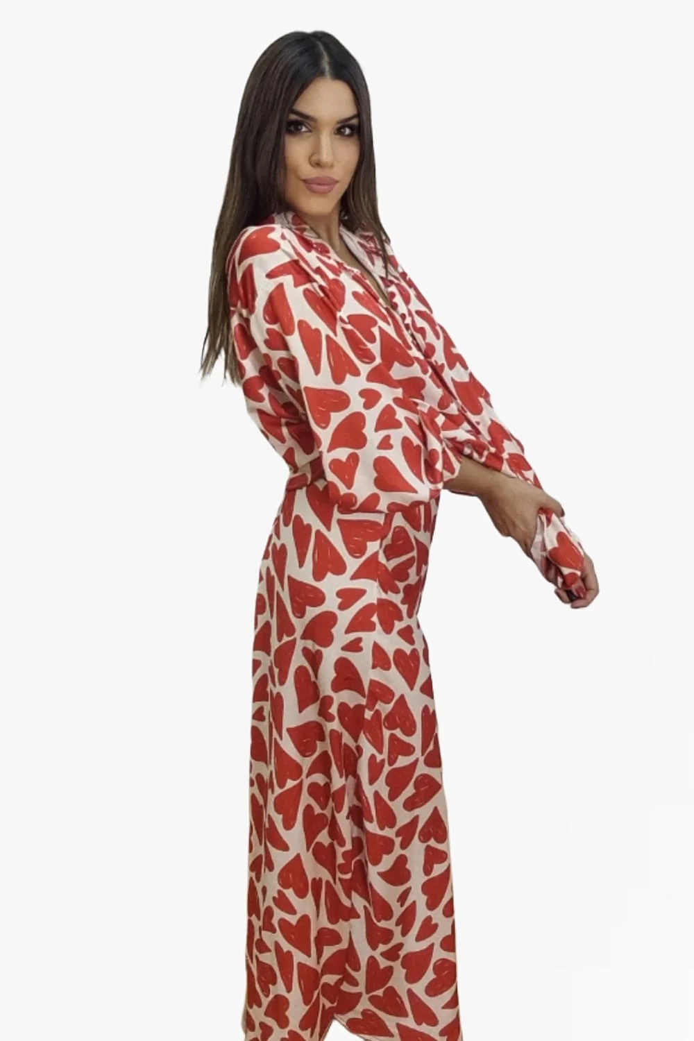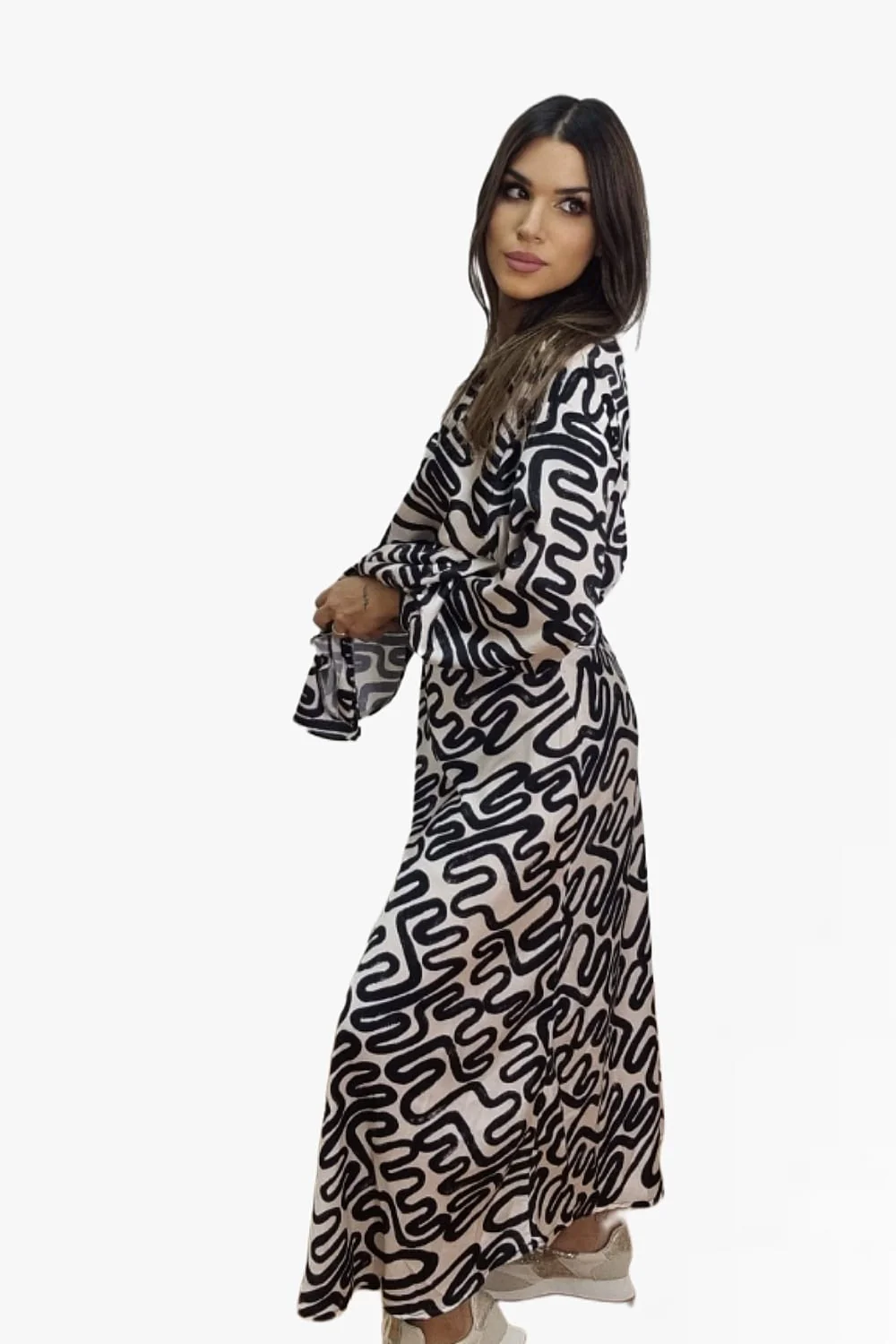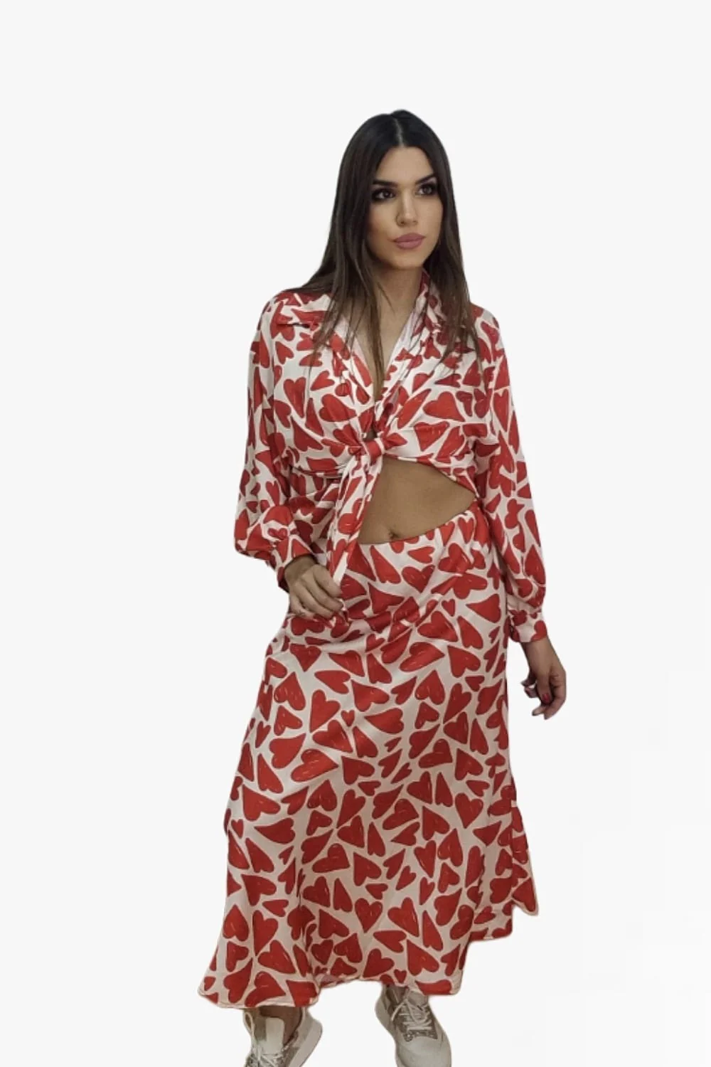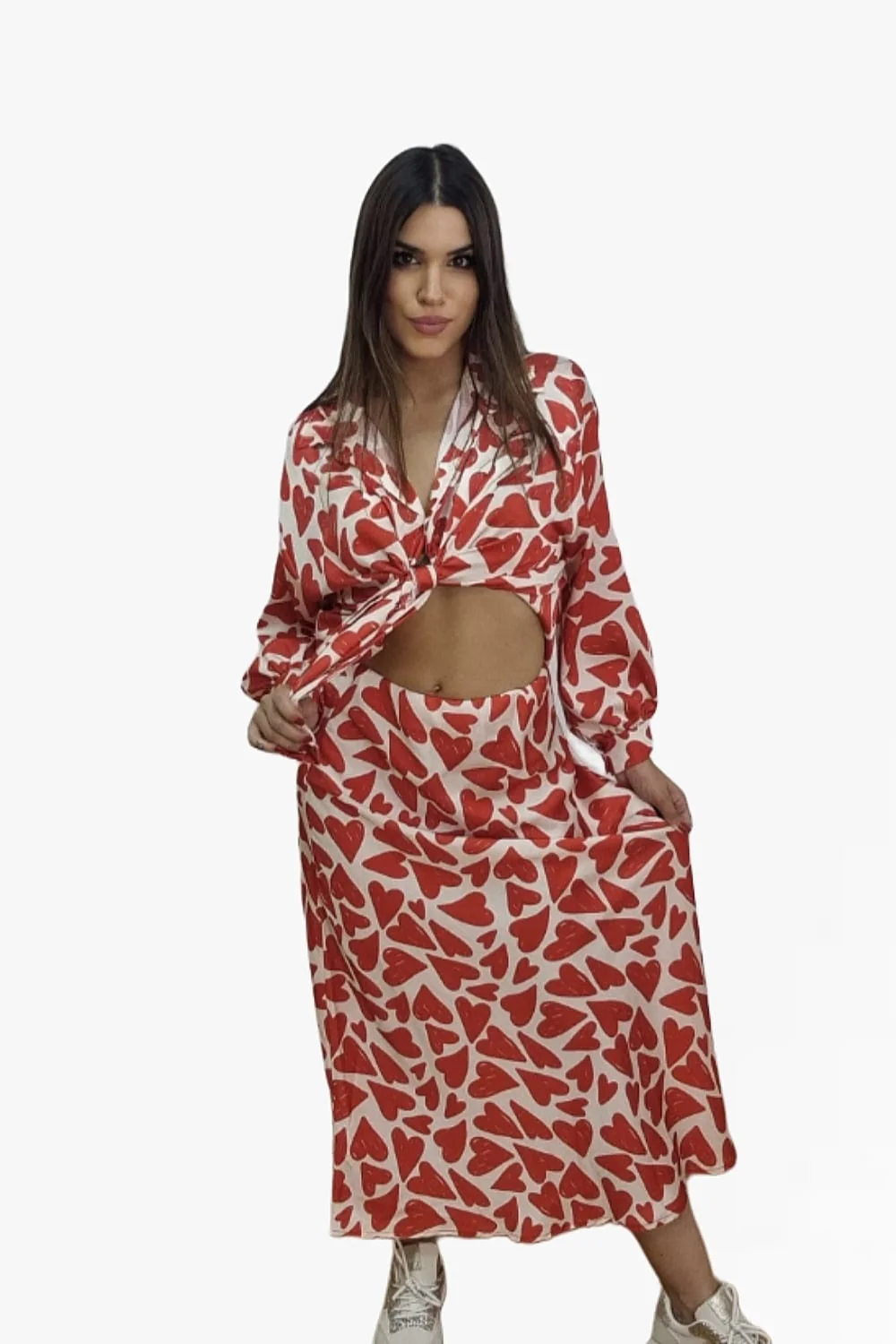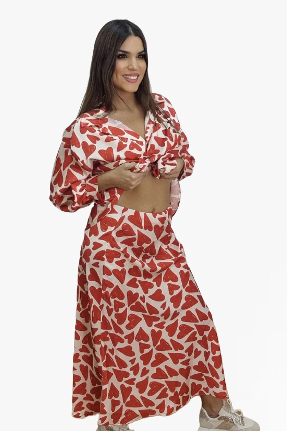 Falta con largo midi, con vuelo leve y sin bolsillos. Cintura elástica.